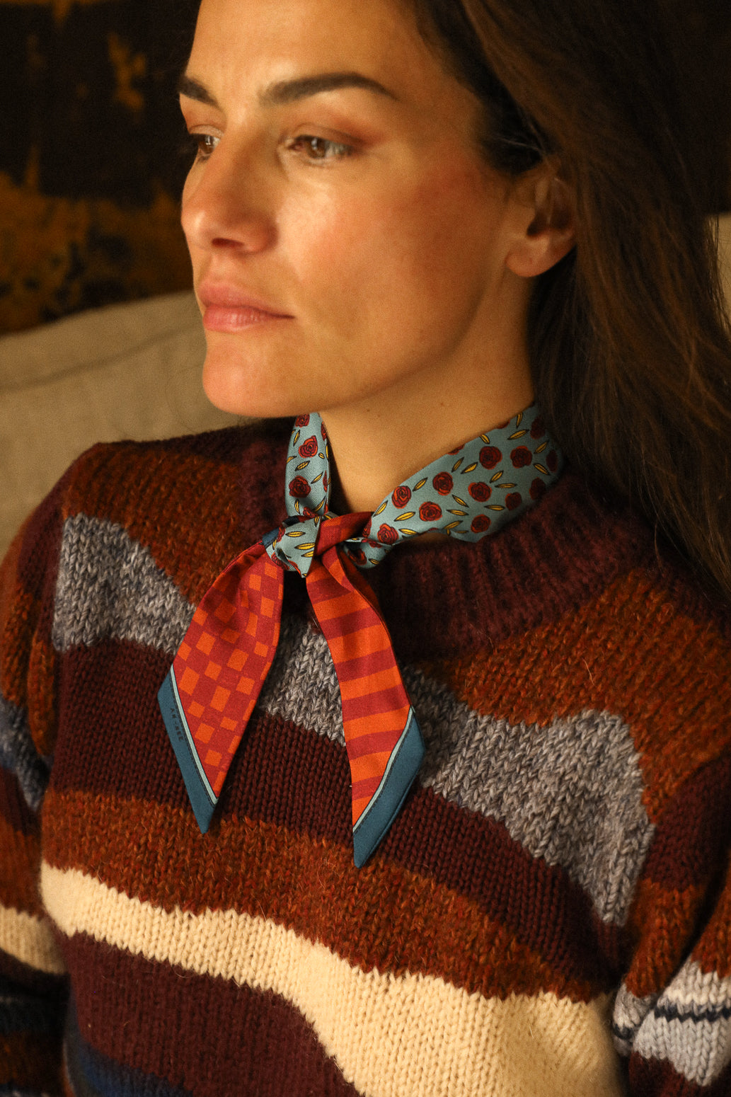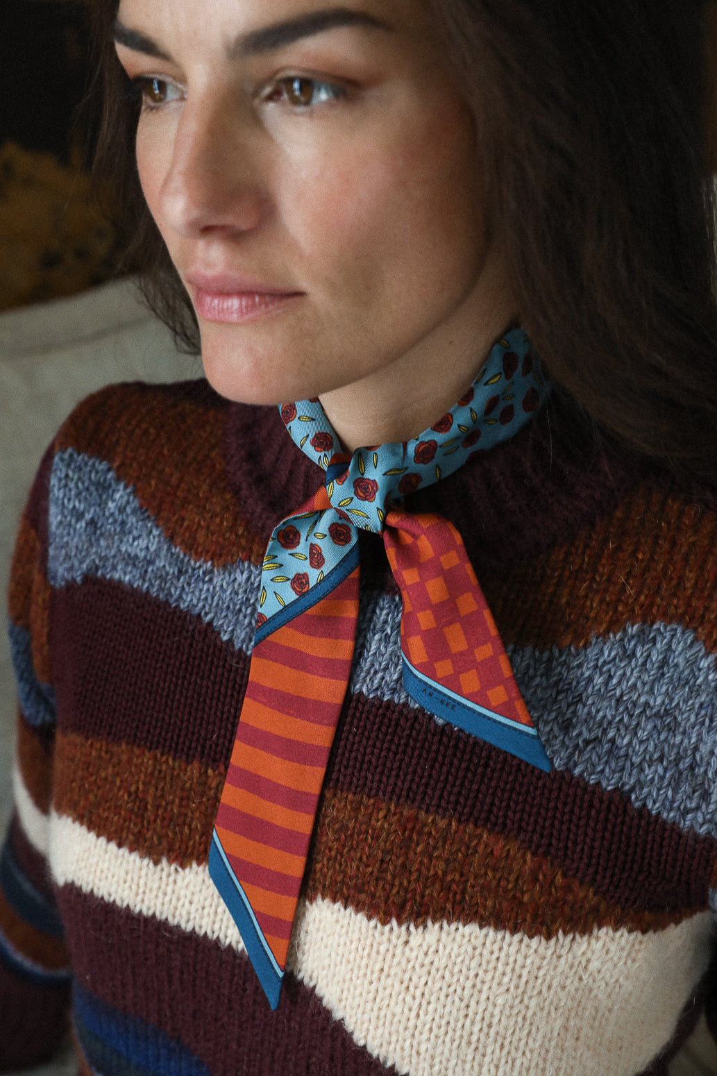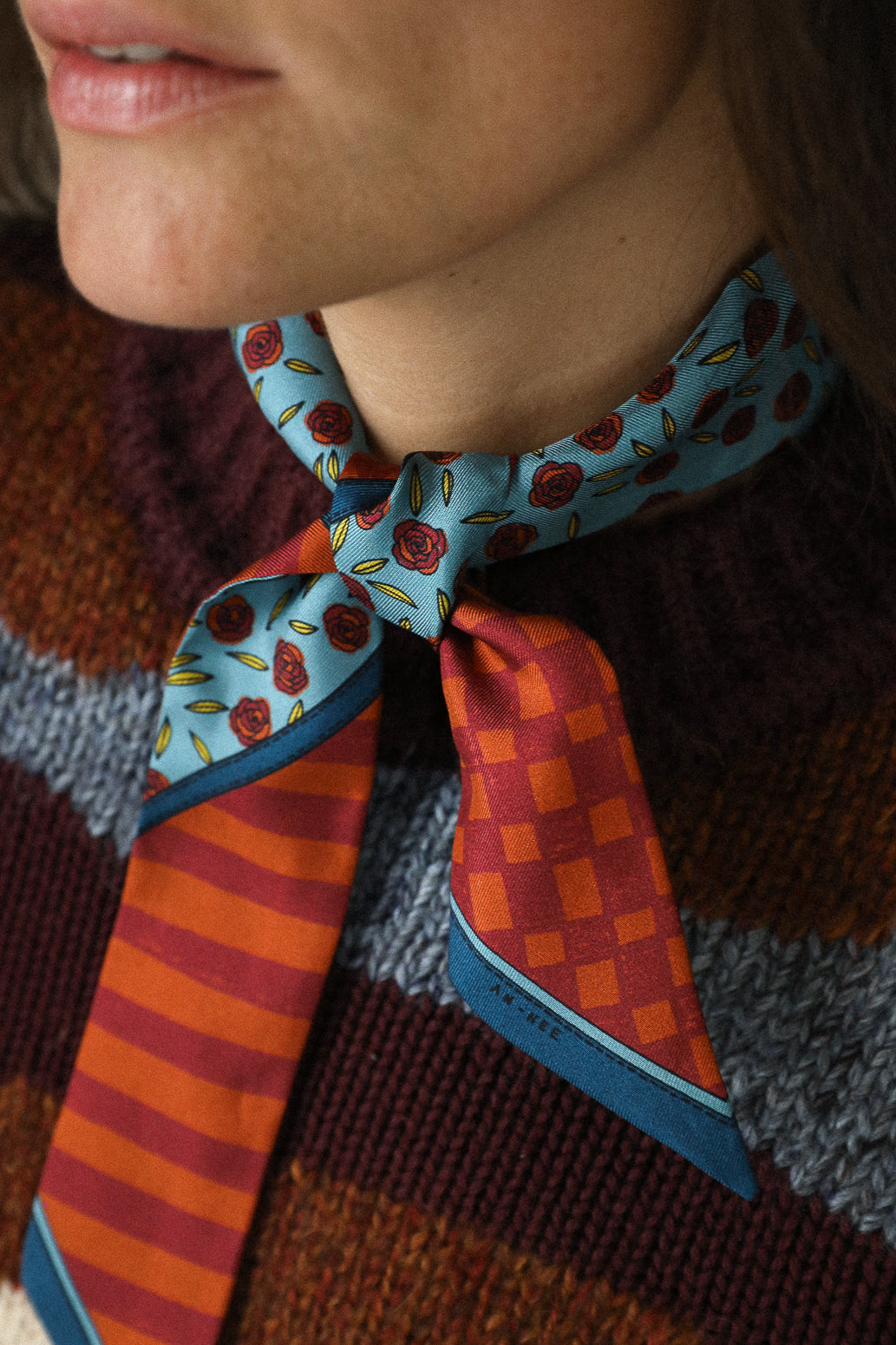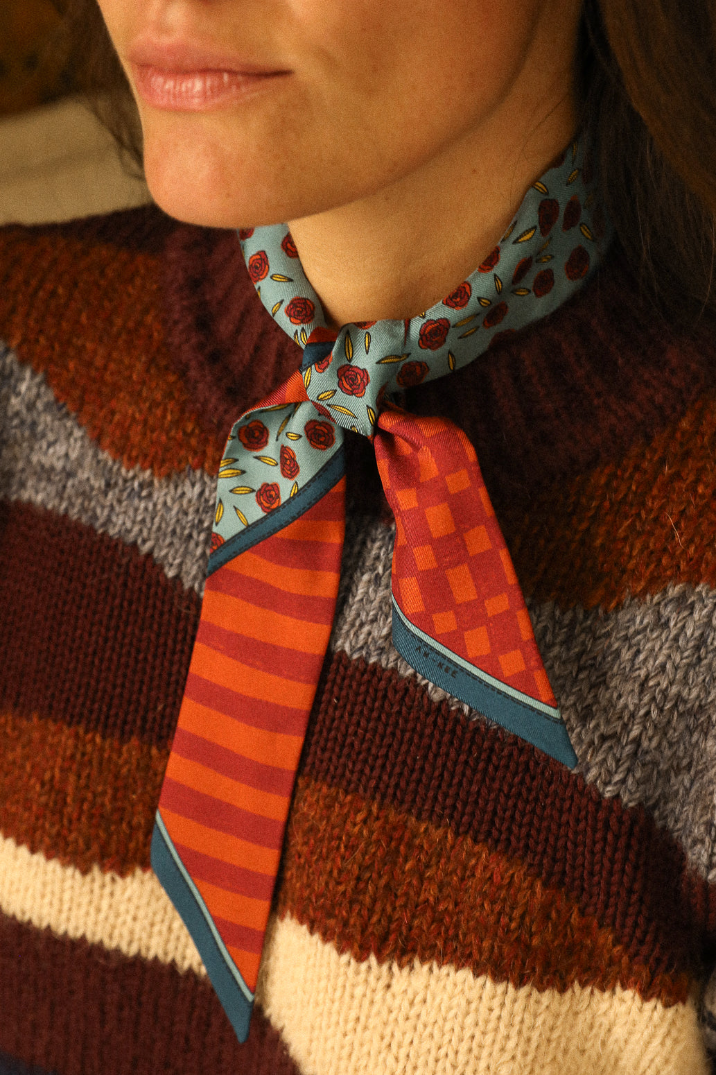 Compatible with certain ornaments Dimensions: 90cm x 5cm 100% Silk Twill / Twill of Silk Designed, printed and manufactured in France / Printed and manufactured in France