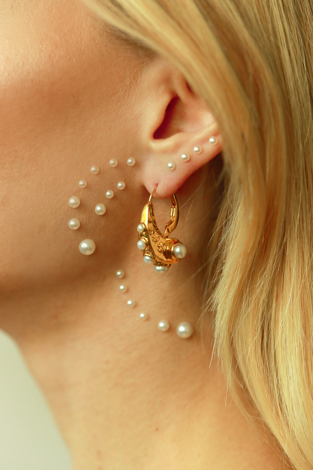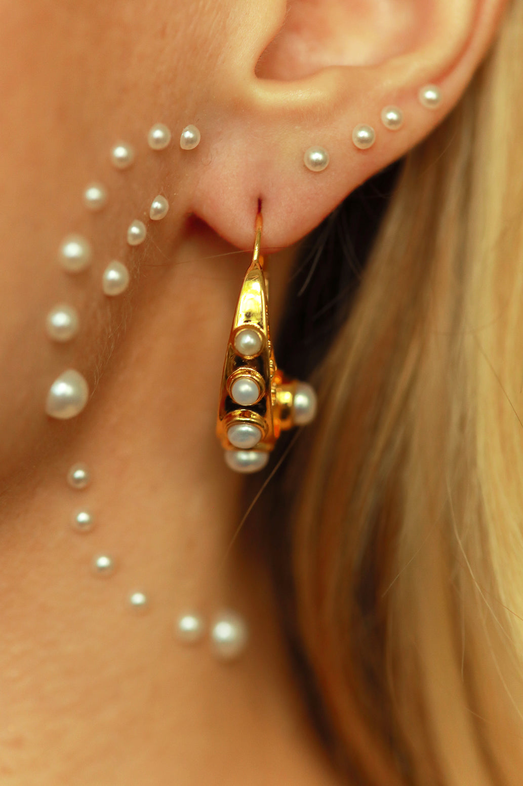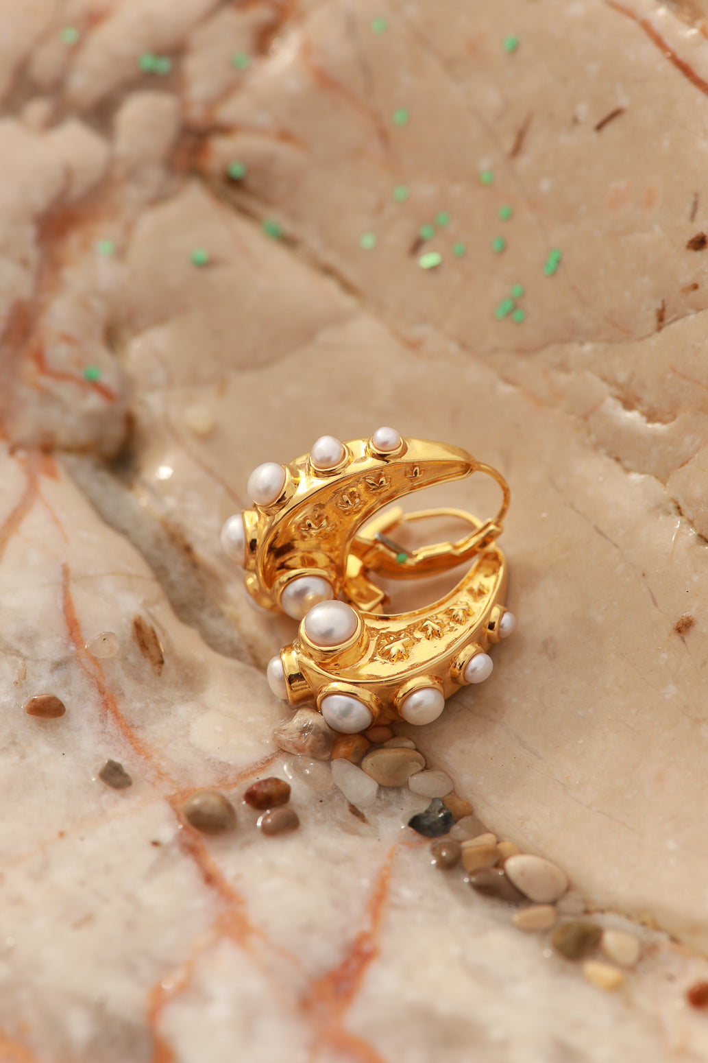 Inlaid with freshwater pearls, clip clasp