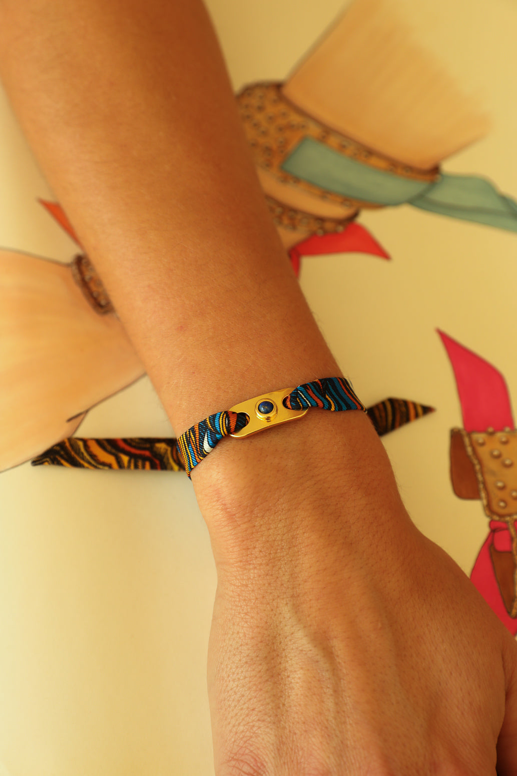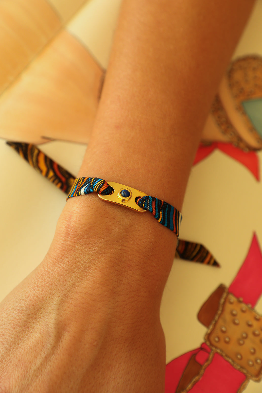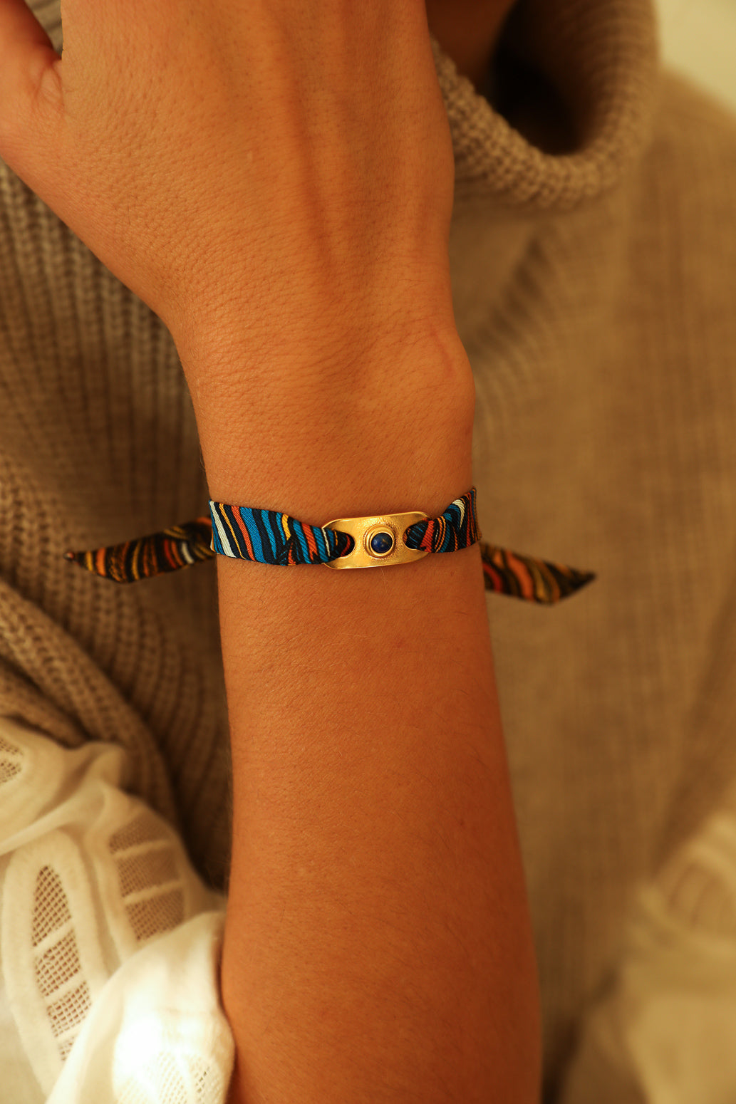 • 20% Laiton doré 10% Lapis Lazuli 70% Soie