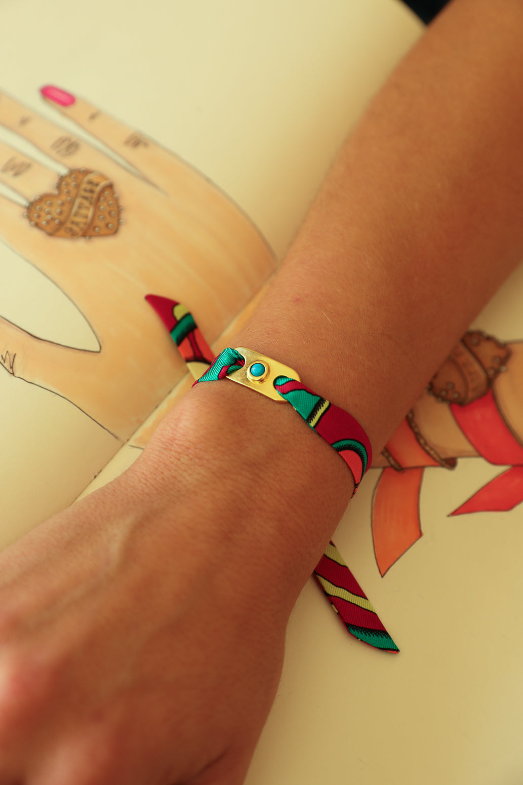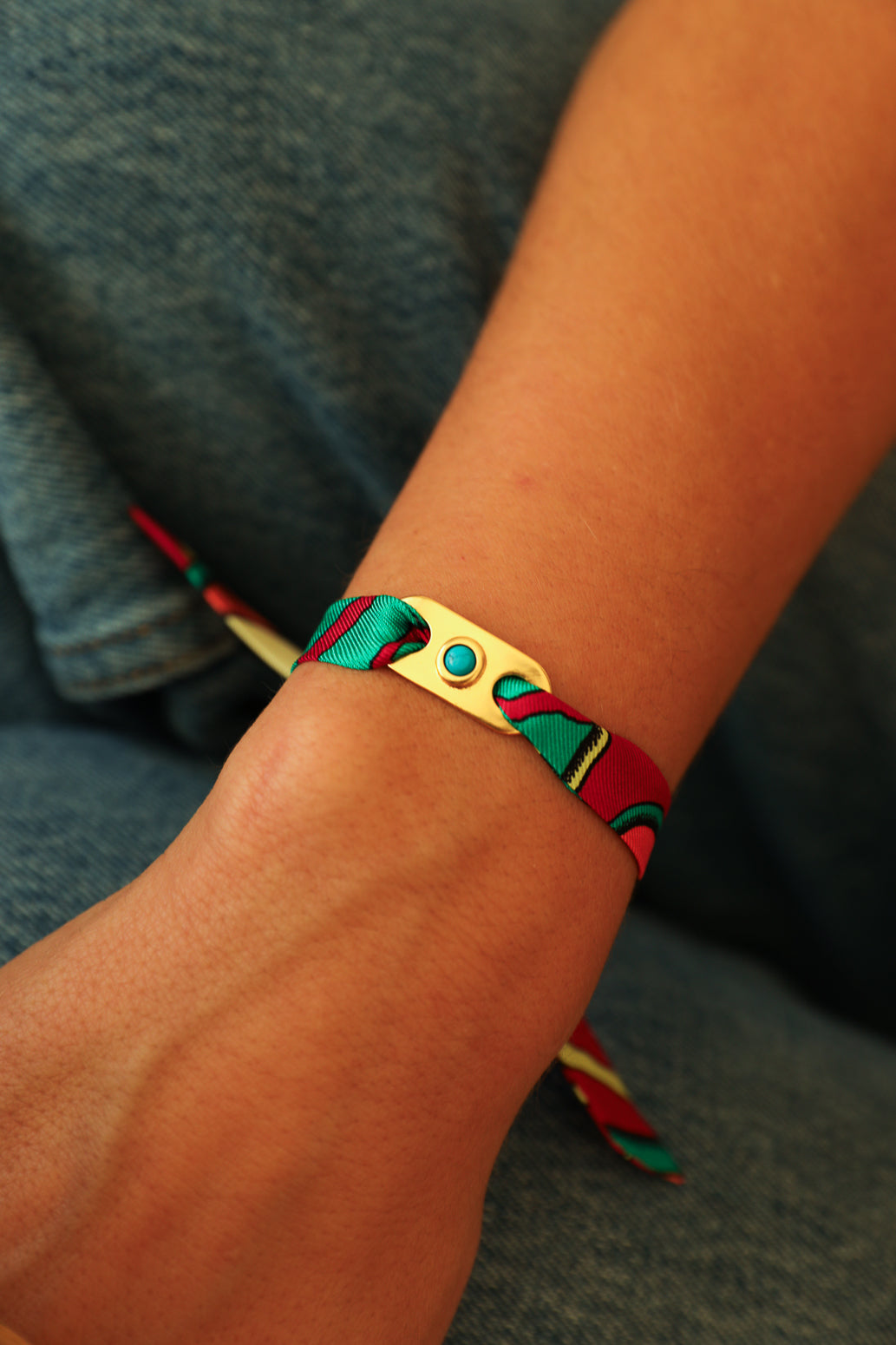 20% Laiton doré 10% Turquoise de synthèse 70% Soie