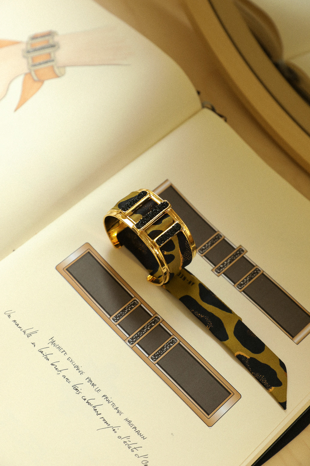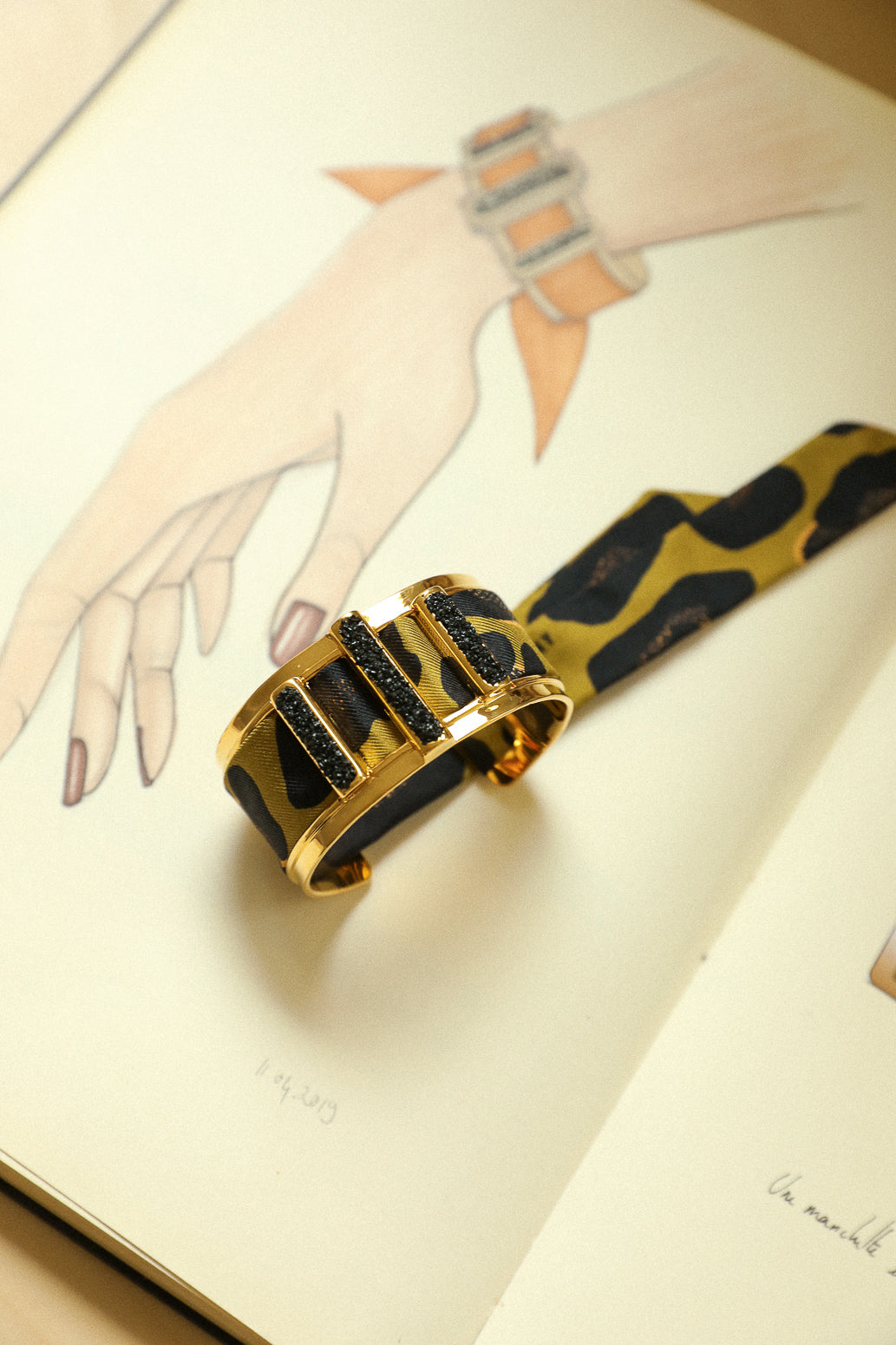 Manchette Quartz et ruban Léopard, vert olive