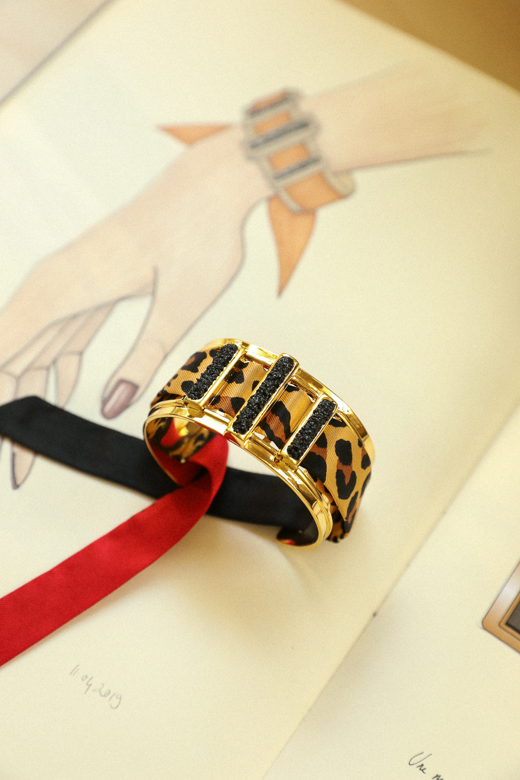 Manchette Quartz et ruban Le Léopard, rouge et noir
