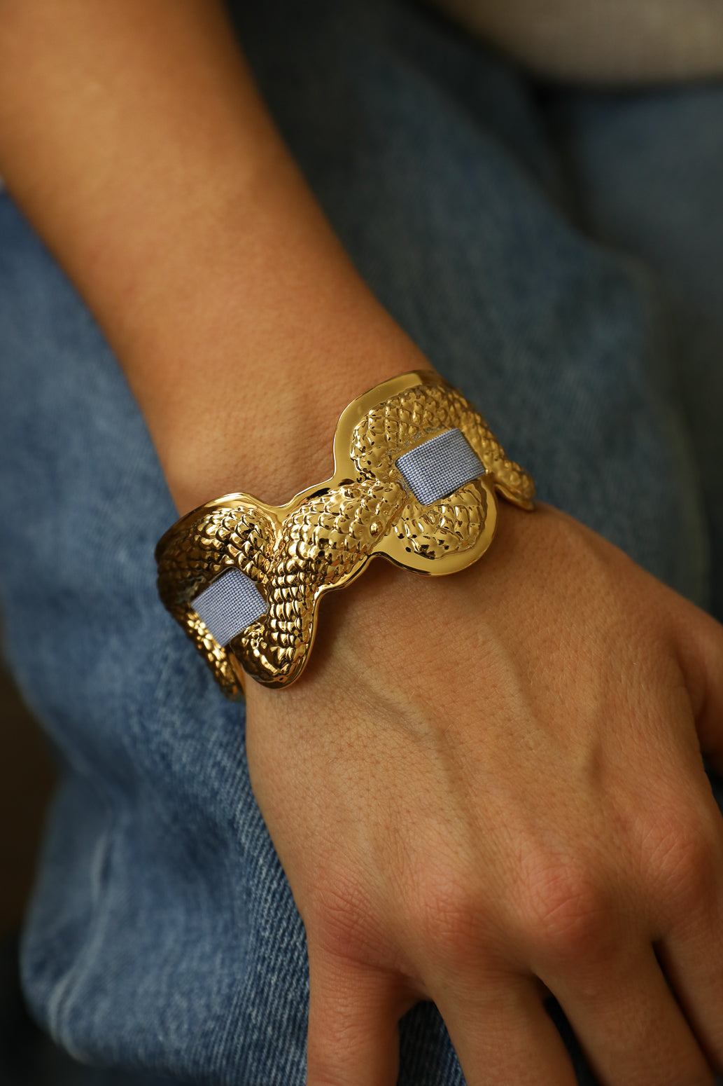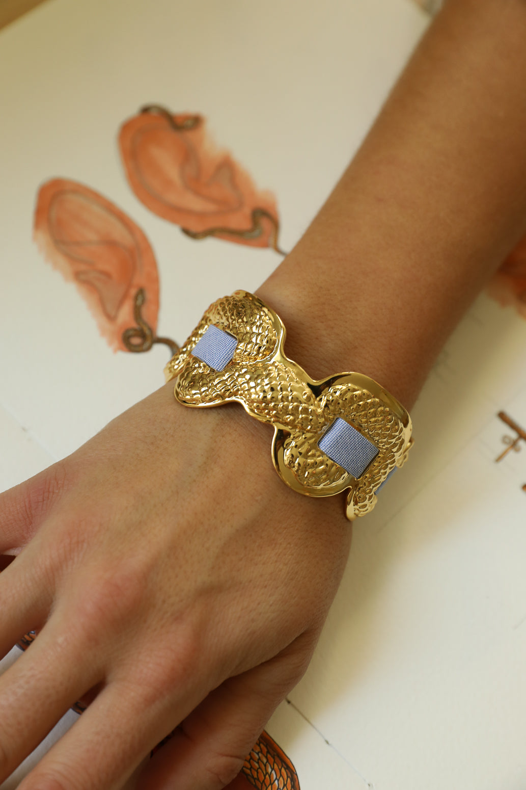 Wrist dimensions: The Serpentaire cuff is 15 cm in diameter + 2.5 cm of spacing, for a total of 17.5 cm in diameter.