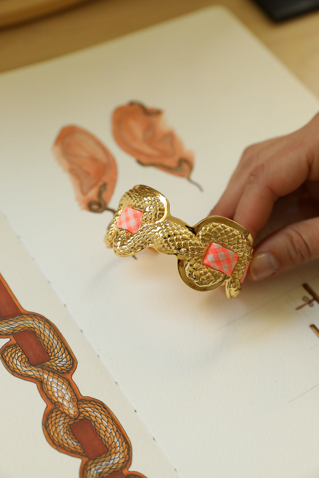 Wrist dimensions: The Serpentaire cuff is 15 cm in diameter + 2.5 cm of spacing, for a total of 17.5 cm in diameter.