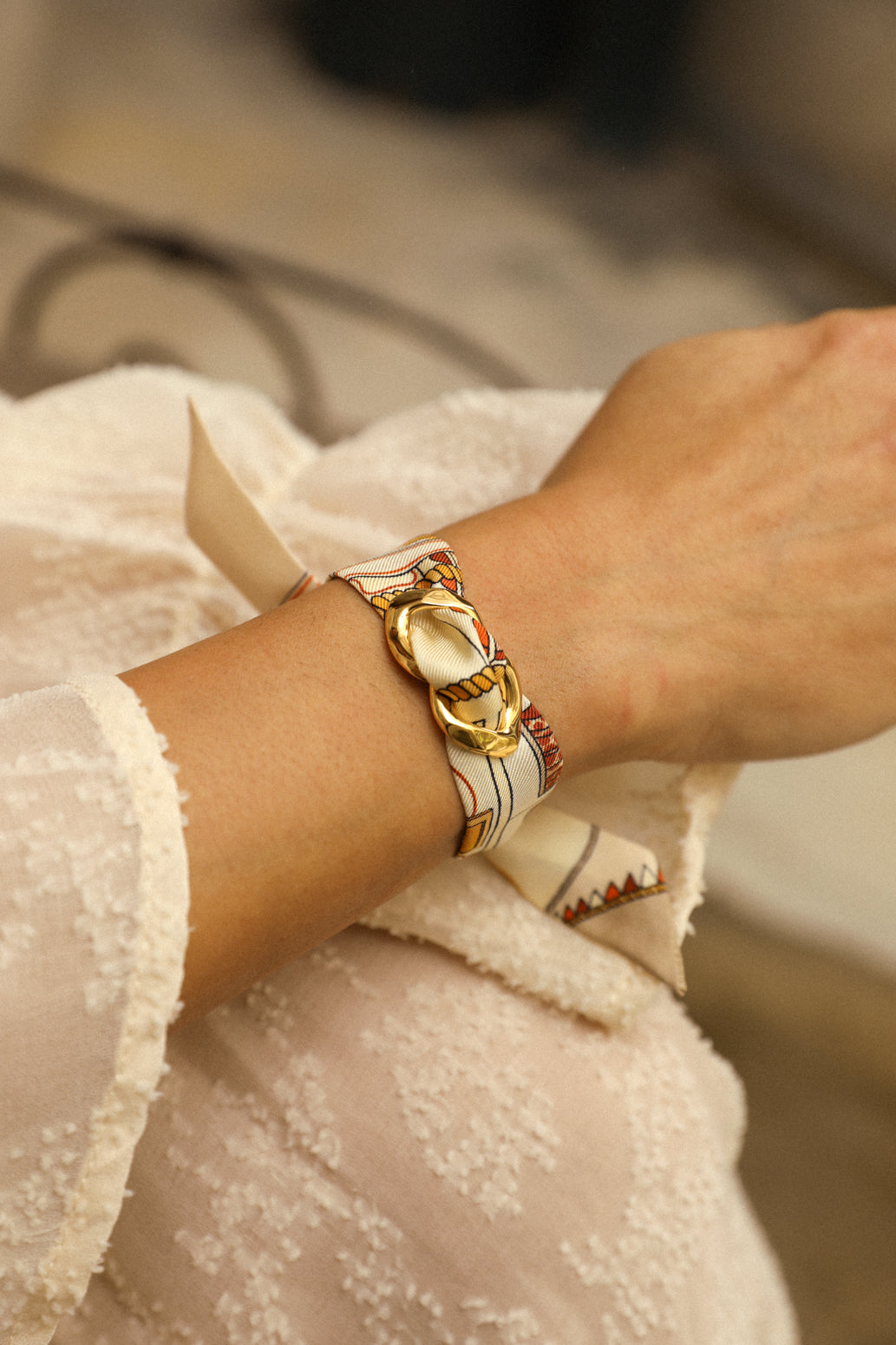 Association of the 2cm silk ribbon Unknown Address snow, woven with the December ornament. The silk ribbon is tied with a double knot at the wrist, the December ornament is removable which allows the silk ribbon to be worn alone if you wish. The set comes in a jewelry box and already associated. Our silk ribbon is Labeled "Made in Paris 2025", a label awarded by the Paris City Hall for our manufacturing excellence in Paris itself. If you would like to order additional silk ribbons to go with your December ornament: it is compatible with our 4cm and 2cm silk ribbons. The difference between the two ribbon sizes: volume and woven gathers on the 4cm silk ribbon, a completely flat effect on a 2cm ribbon.