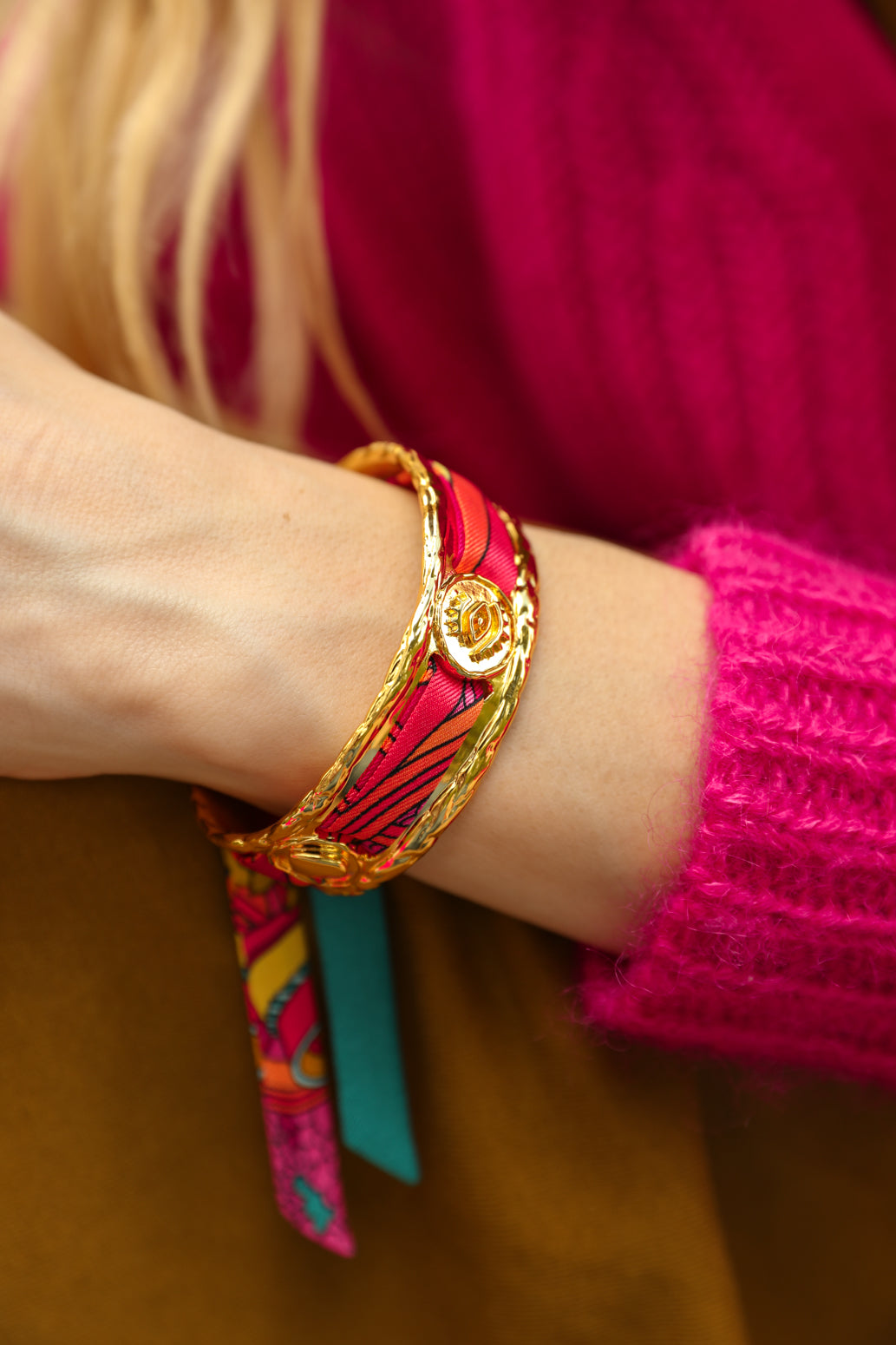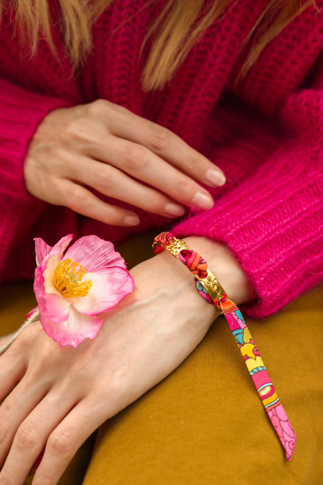 1cm high silk ribbon, to wear alone on the wrist, in the hair, or to weave into our cuffs. Compatible with the following bracelets: Féérie, Queen, Décembre, Caïman (the bracelet), Octobre and the new small Irma cuff