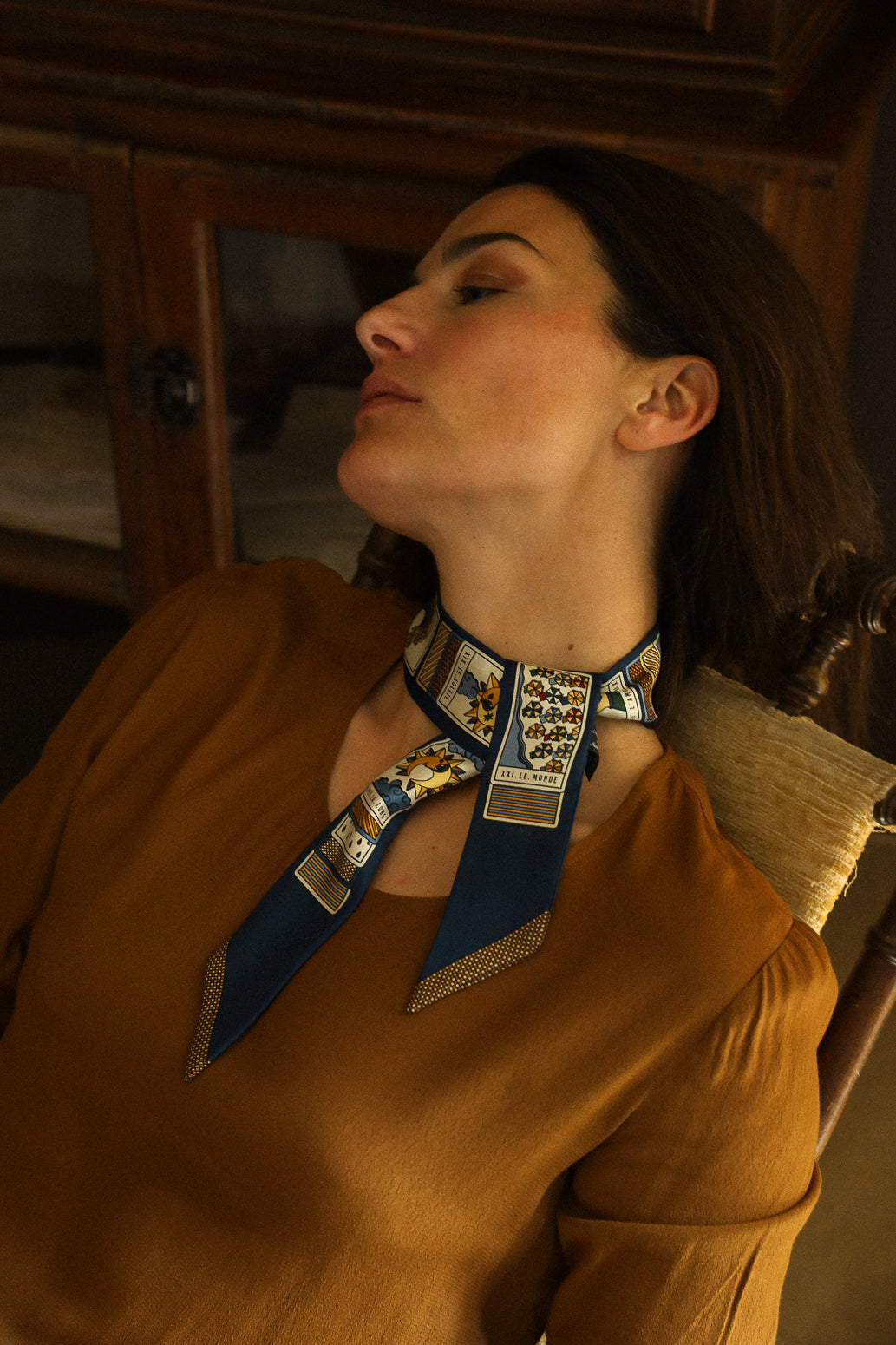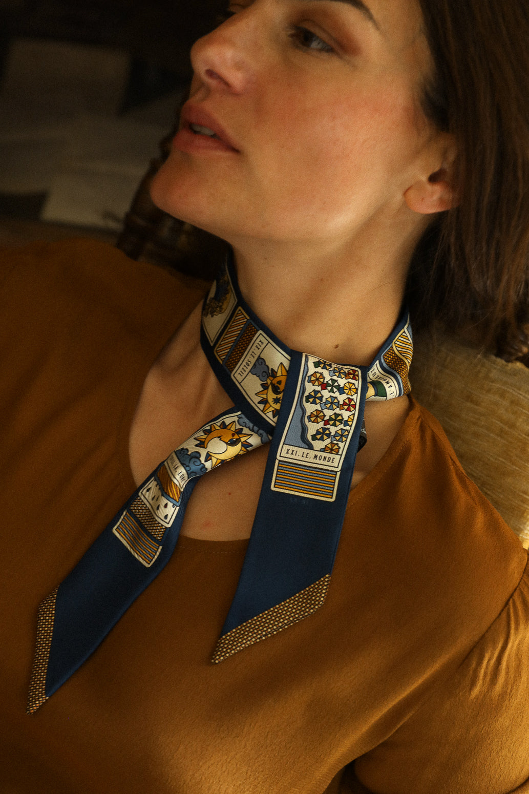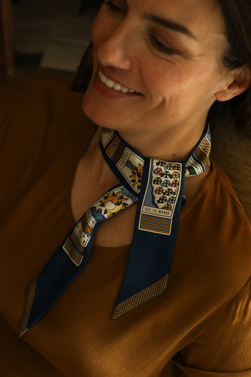 Compatible avec certains ornements Dimensions : 90cm x 5cm 100% Twill de Soie / Twill of Silk Dessiné, imprimé et fabriqué en France / Printed and manufactured in France