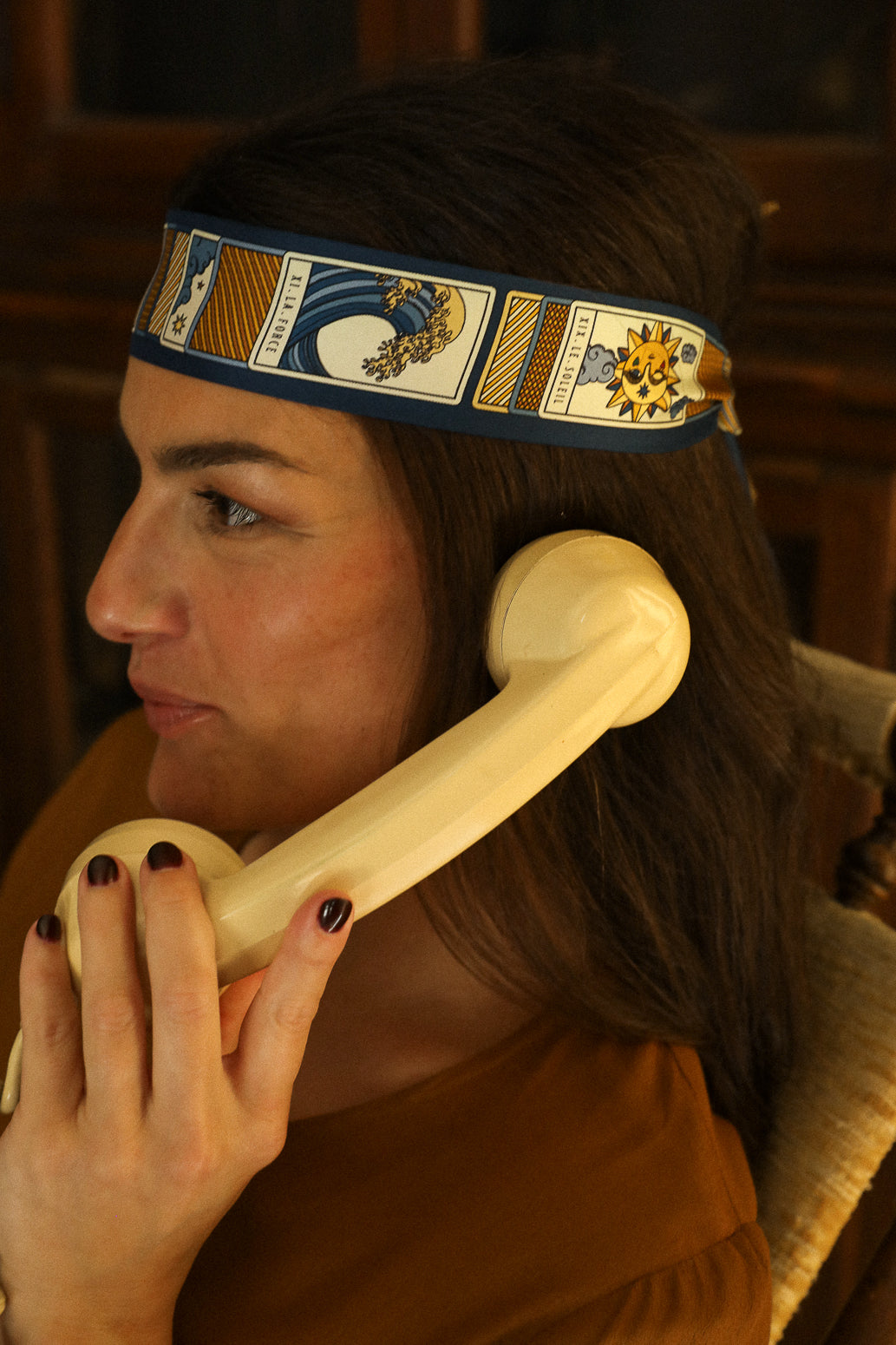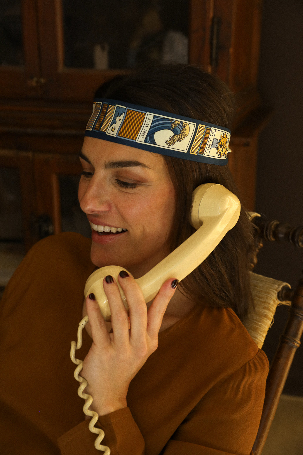 Bandy en soie de 5cm de hauteur, à porter dans les cheveux, autour du cou ou d’un sac.