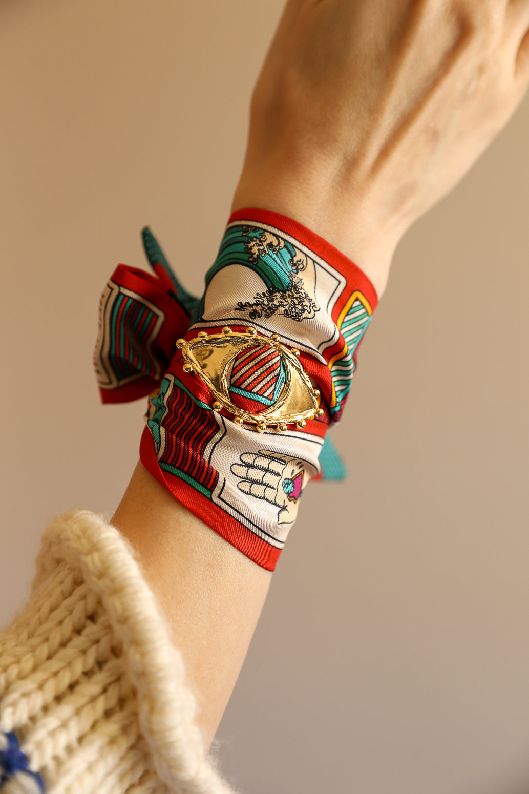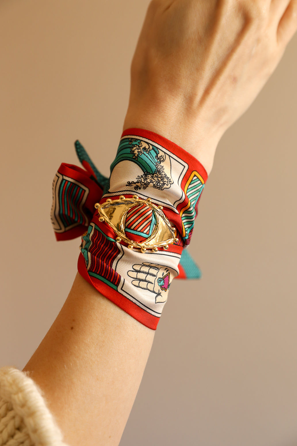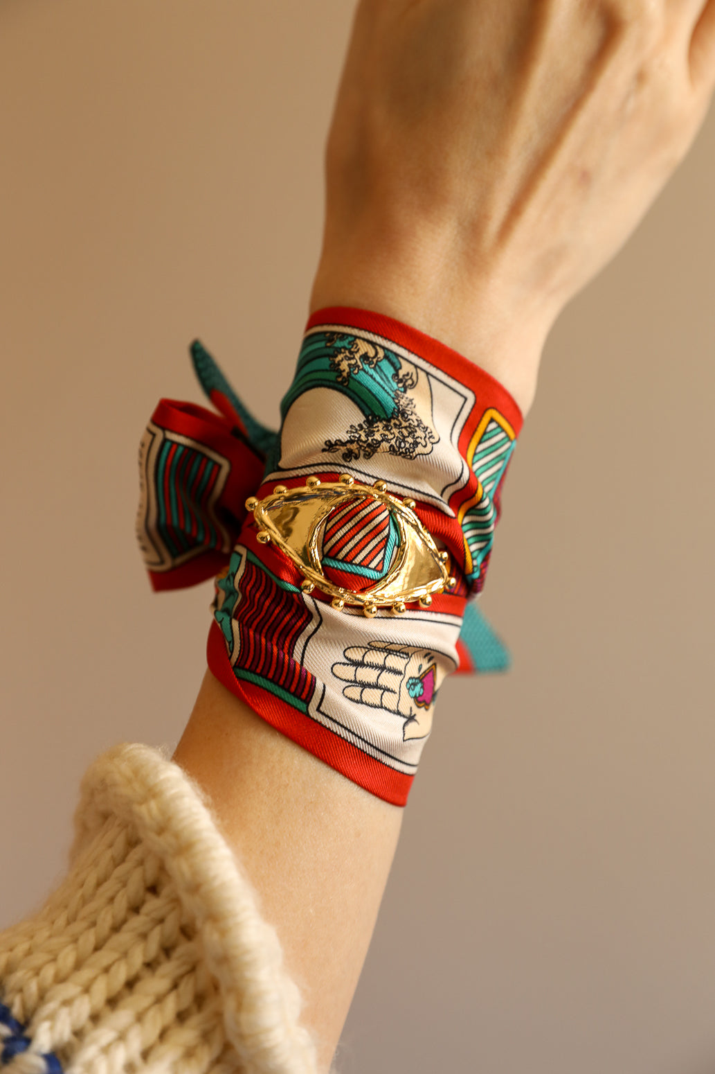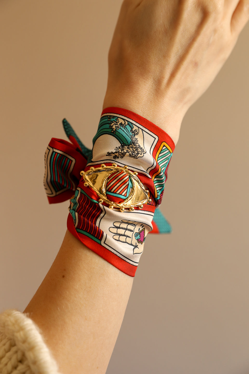 Bandy en soie de 5cm de hauteur, à porter dans les cheveux, autour du cou ou d’un sac.