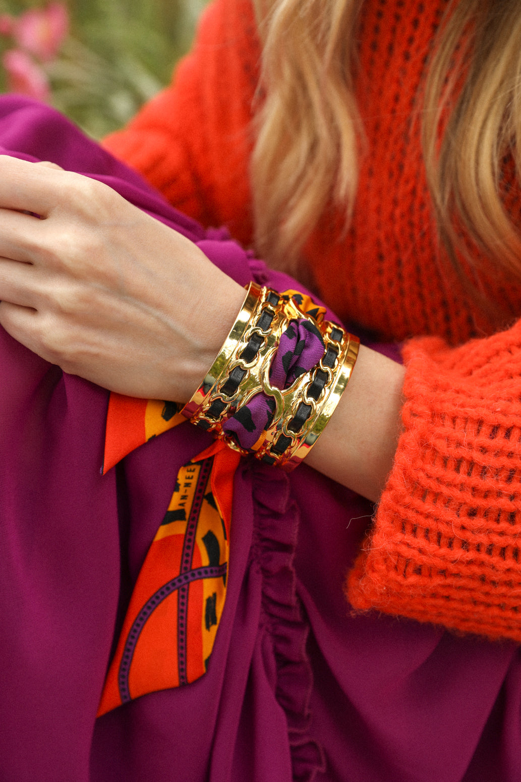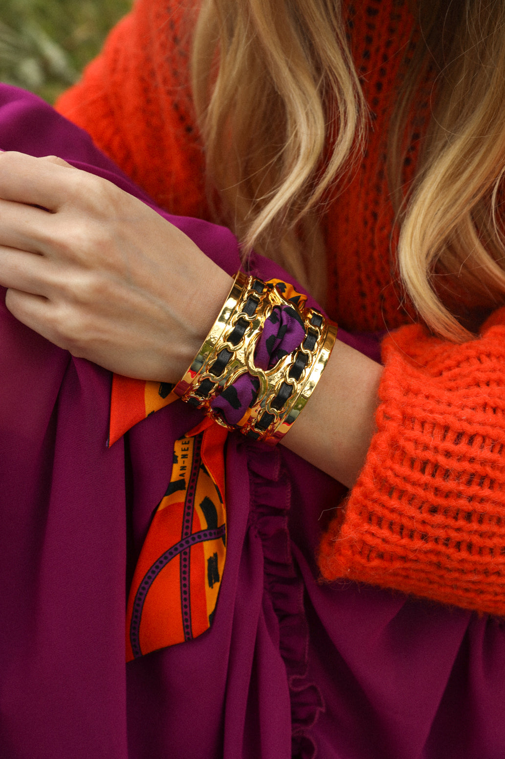 La grande manchette Décembre est notre nouveauté d’élégance de la saison Automne-Hiver 2025/26, faite de chaînes et tissée de simili-cuir et soie. Du haut de ses 5cm, elle ne passera pas inaperçue quelques soient les occasions.