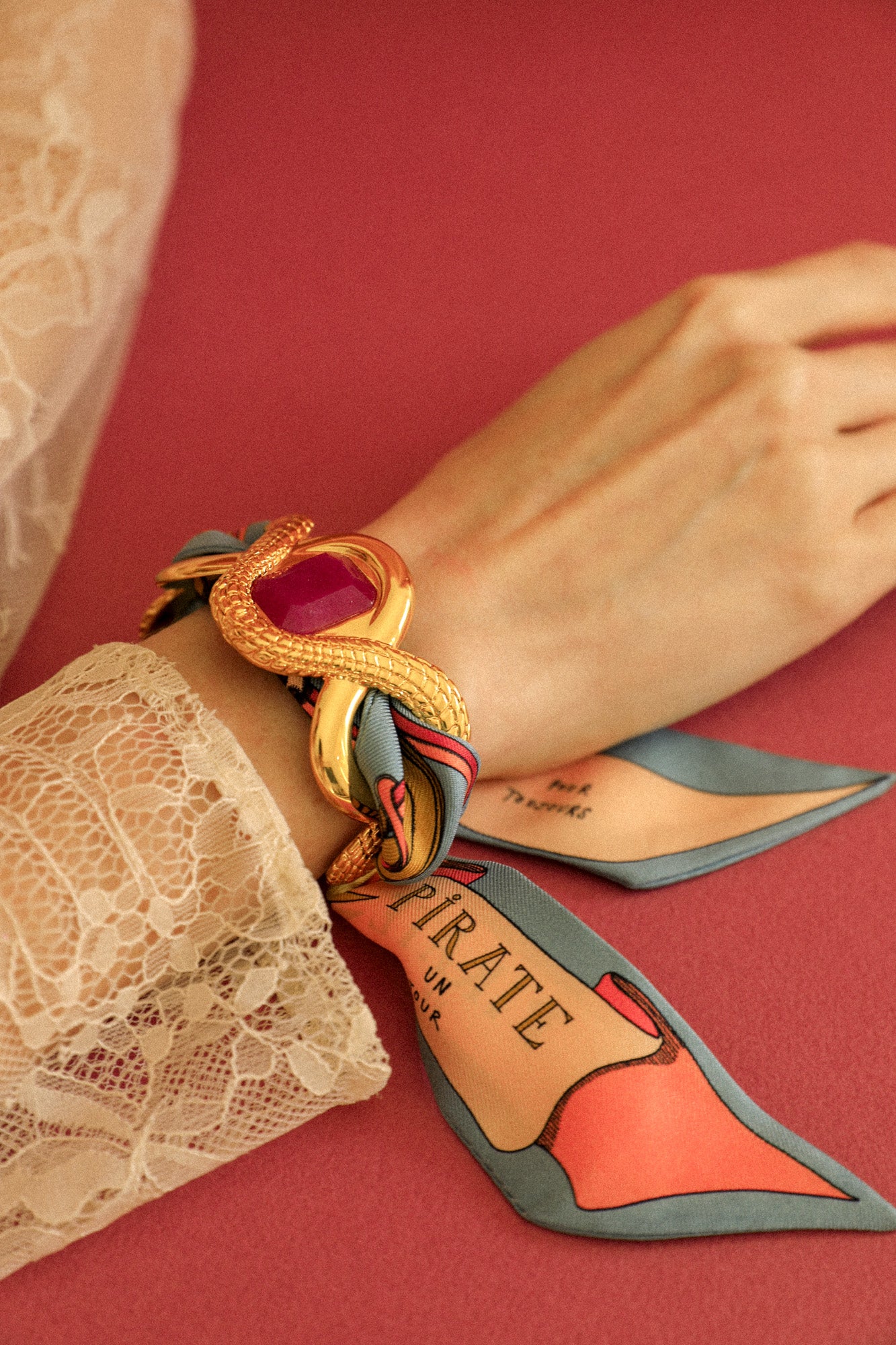 Manchette Caïman Agate fuchsia et ruban Pirate coloré