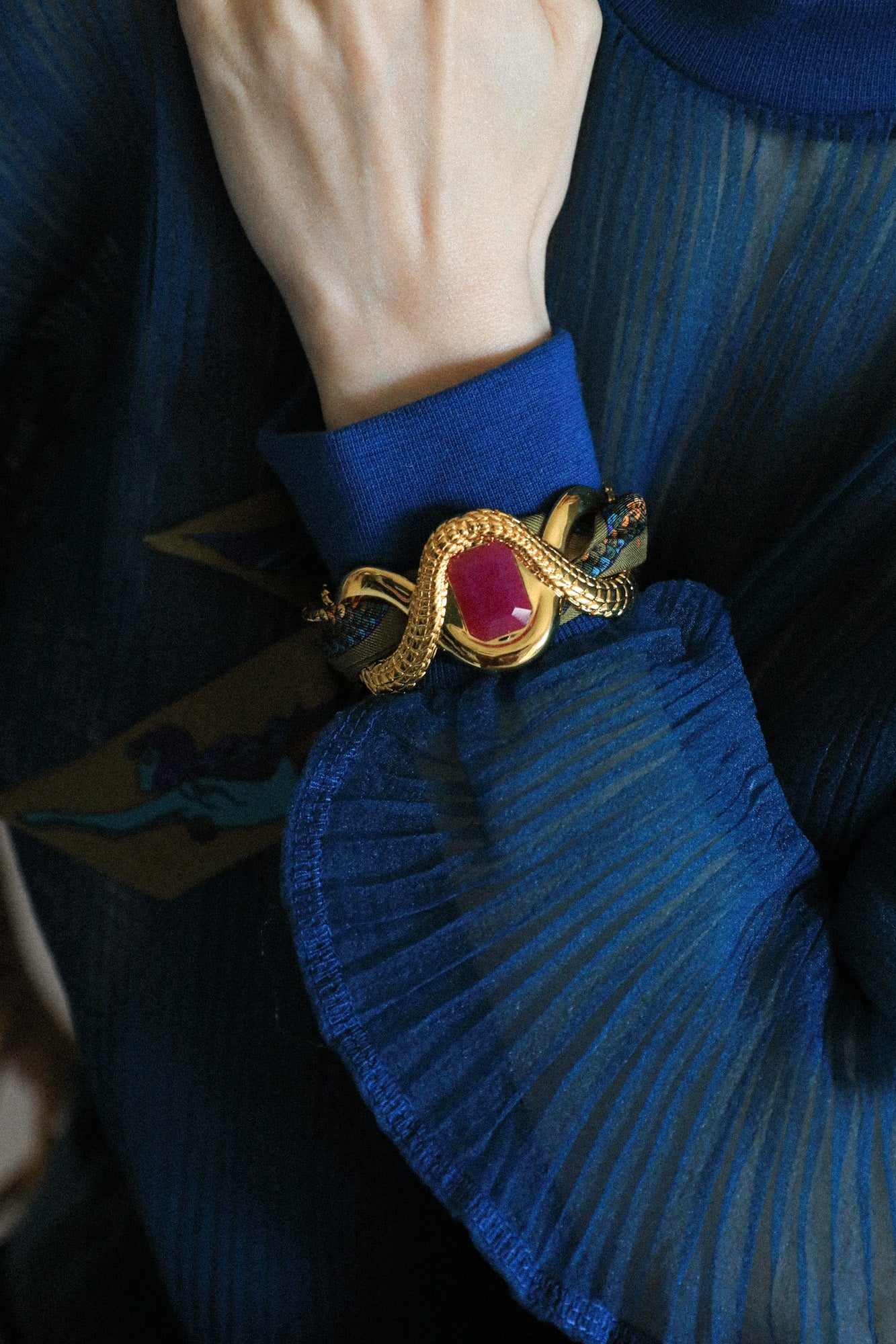 Manchette Caïman Agate fuchsia et ruban Sirène coloré