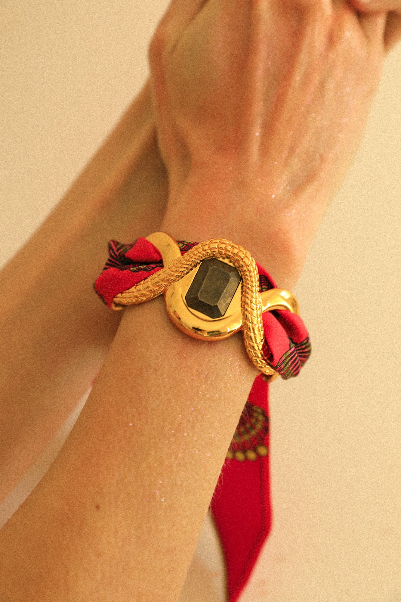 Manchette Caïman Pyrite et ruban Coquillage coloré