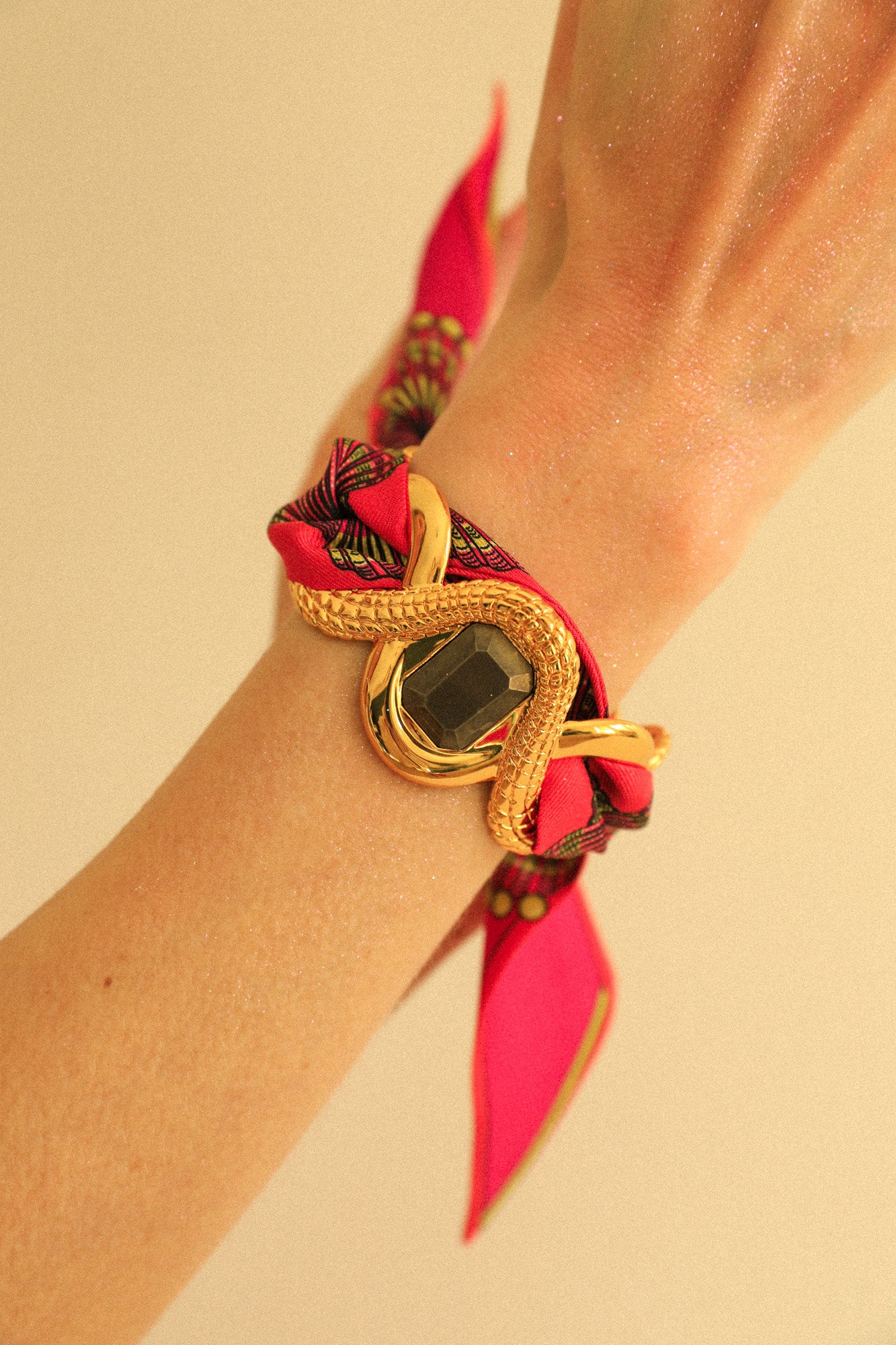 Cette manchette se porte avec ou sans soie, pour encore plus de liberté au poignet.