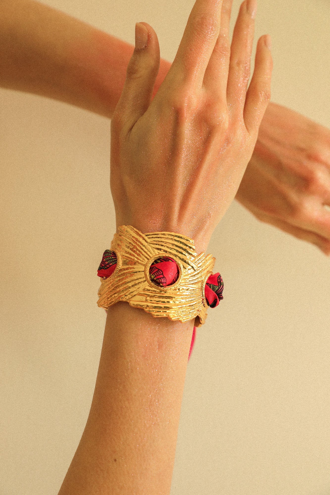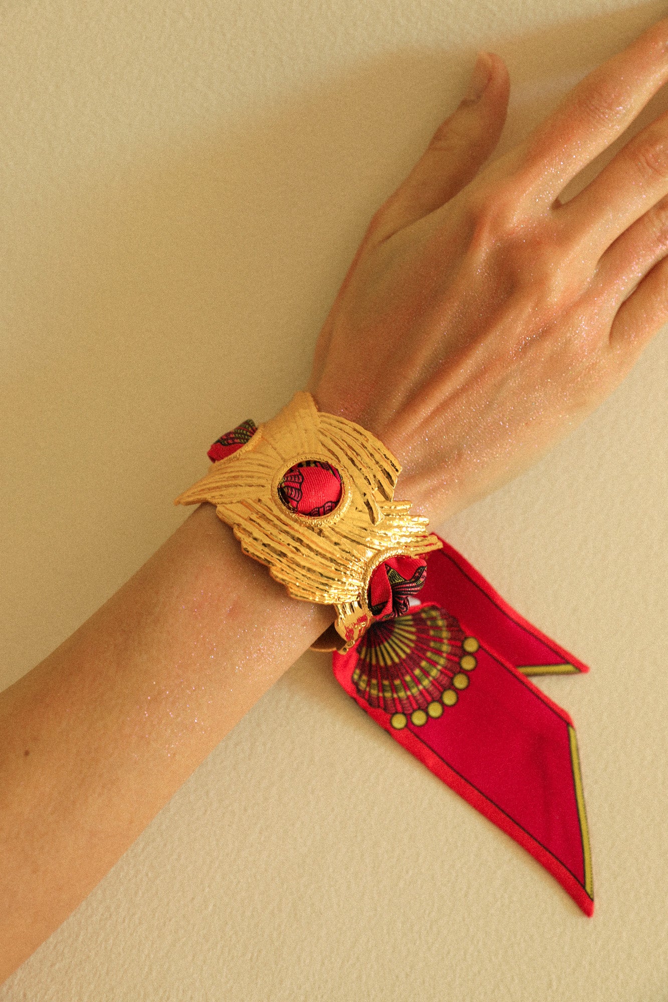 La manchette Céleste signe le retour des grandes manchettes chez AN-NEE. Véritable pièce de style, tout en mouvement, je me suis inspirée du mouvement des astres. C'est une pièce qui ne passe pas inaperçue.