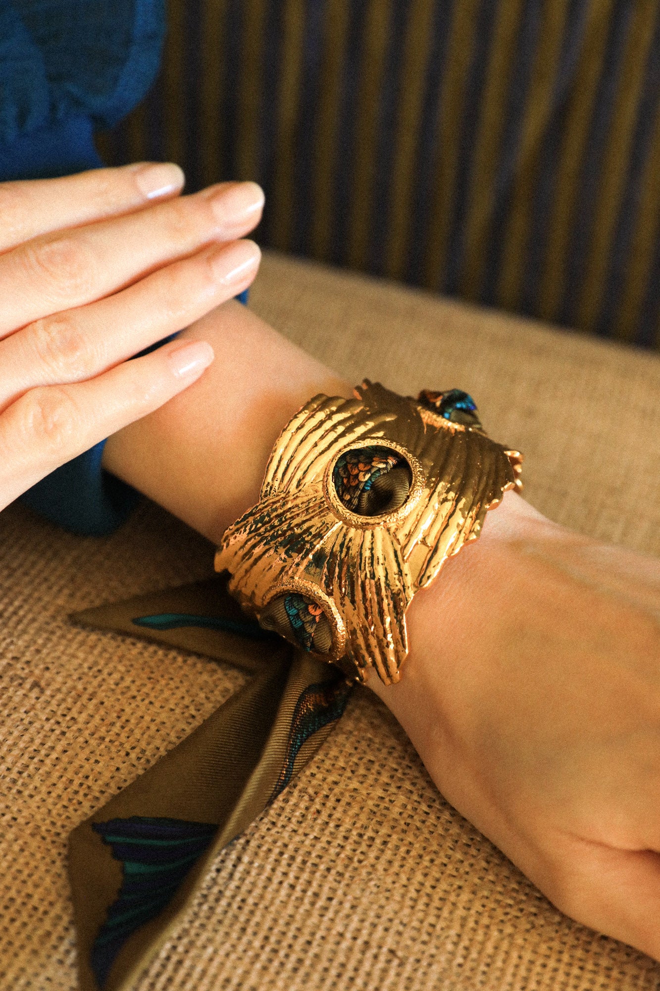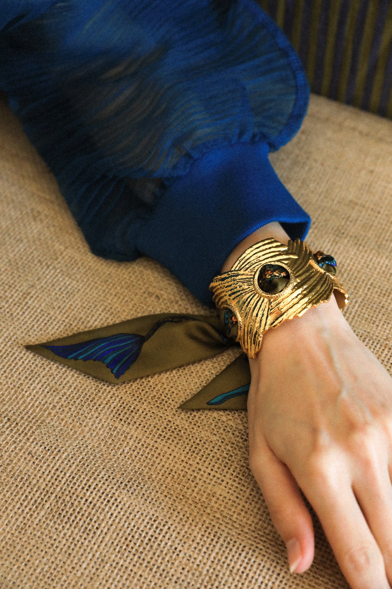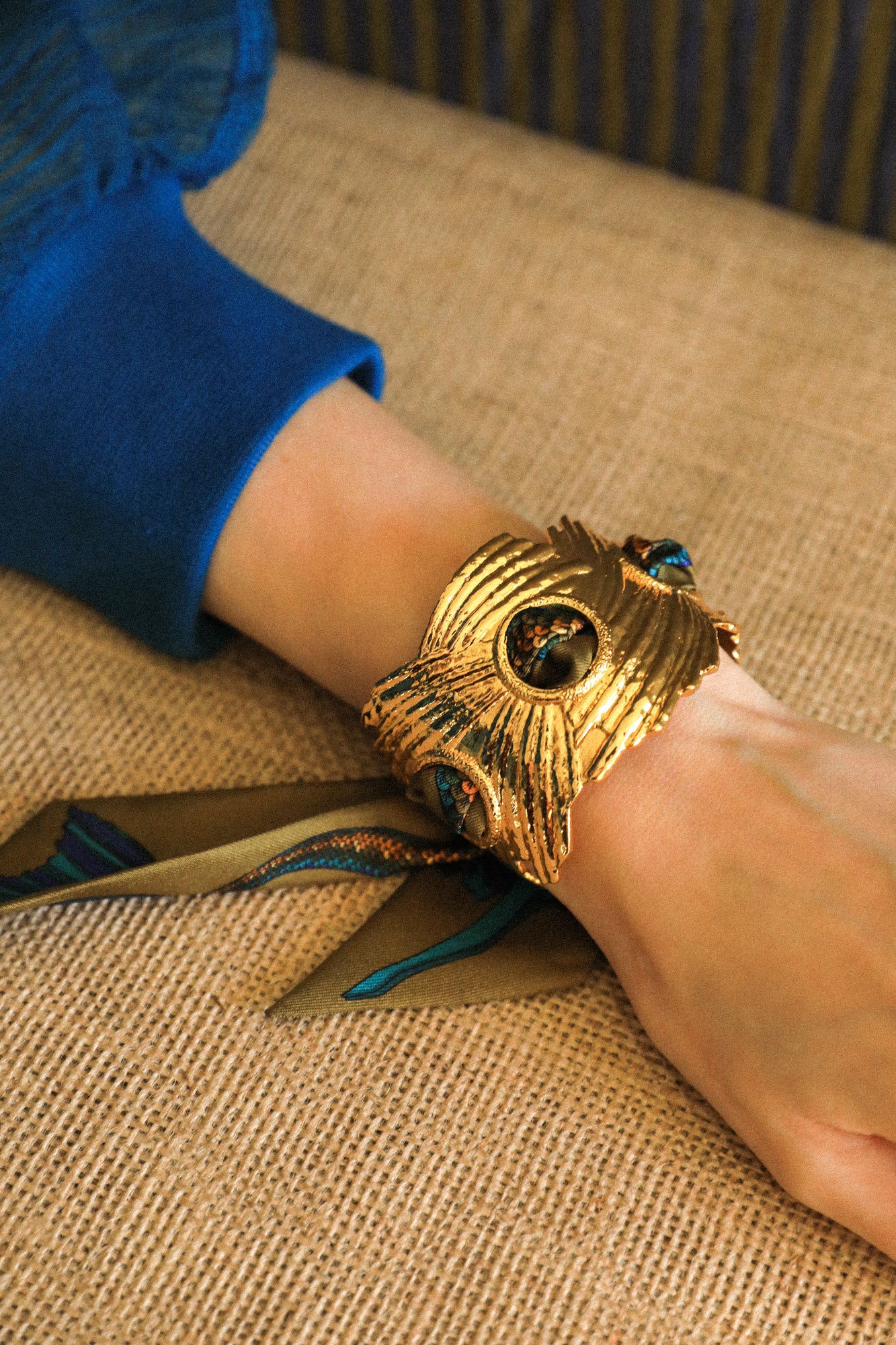 La manchette Céleste signe le retour des grandes manchettes chez AN-NEE. Véritable pièce de style, tout en mouvement, je me suis inspirée du mouvement des astres. C'est une pièce qui ne passe pas inaperçue.