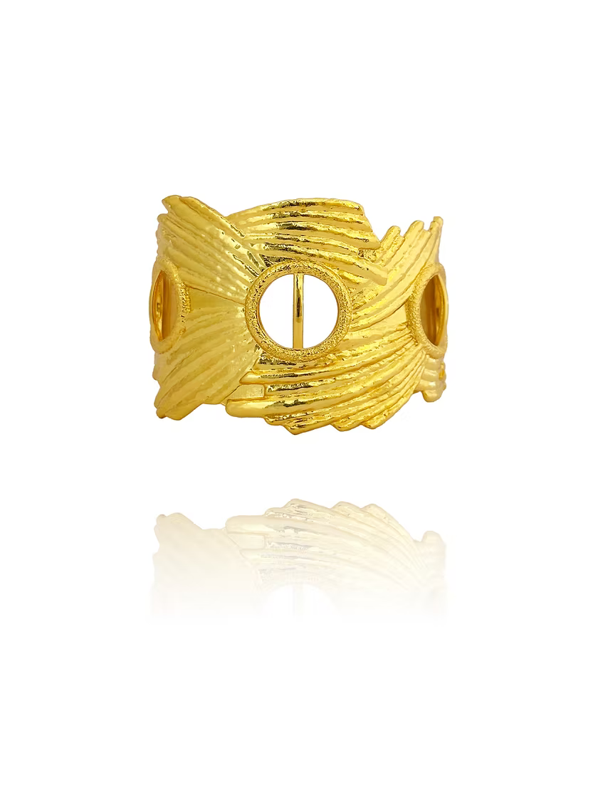 La manchette Céleste signe le retour des grandes manchettes chez AN-NEE. Véritable pièce de style, tout en mouvement, je me suis inspirée du mouvement des astres. C'est une pièce qui ne passe pas inaperçue.