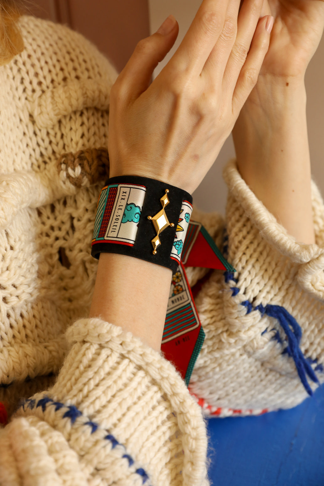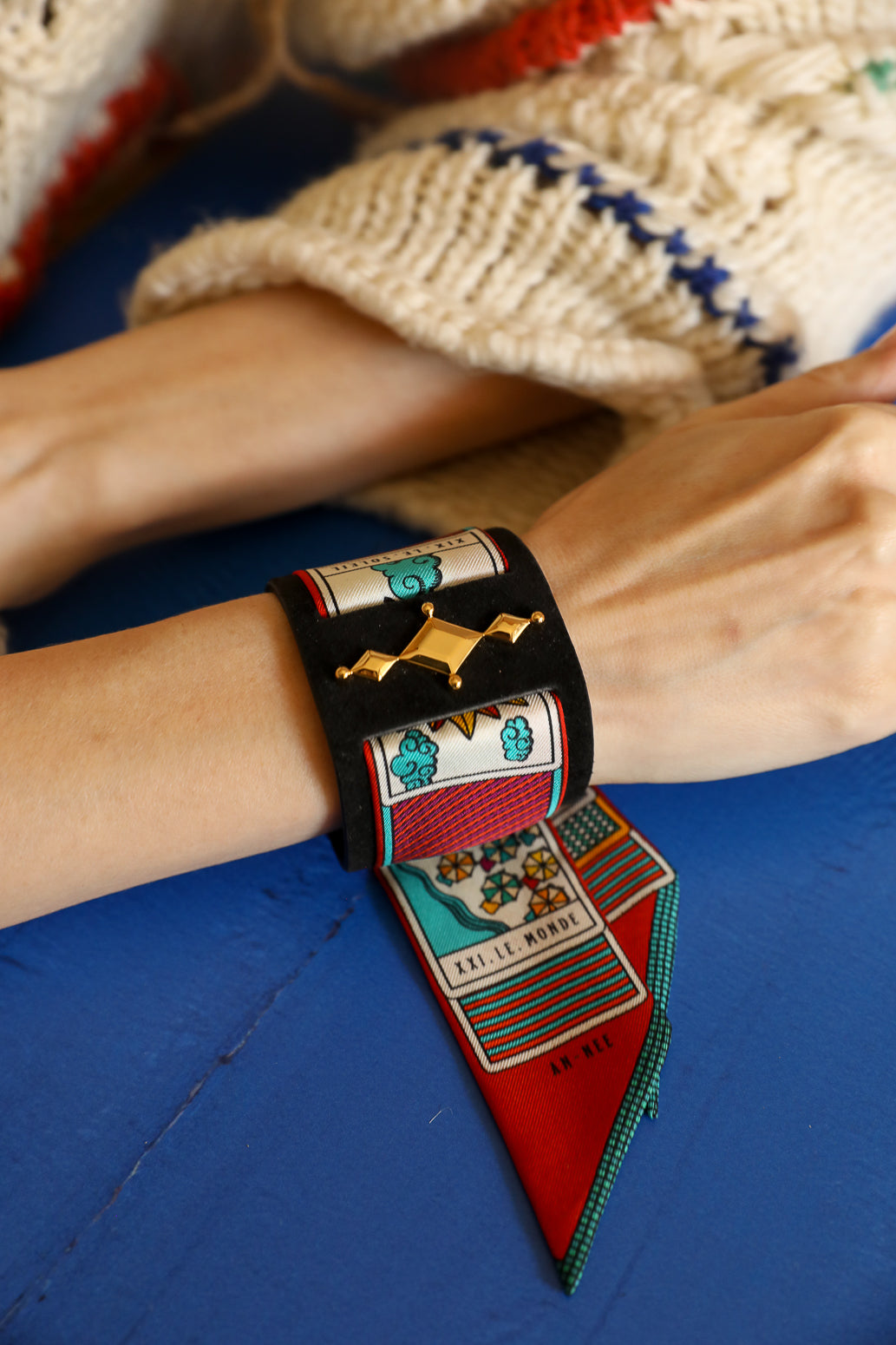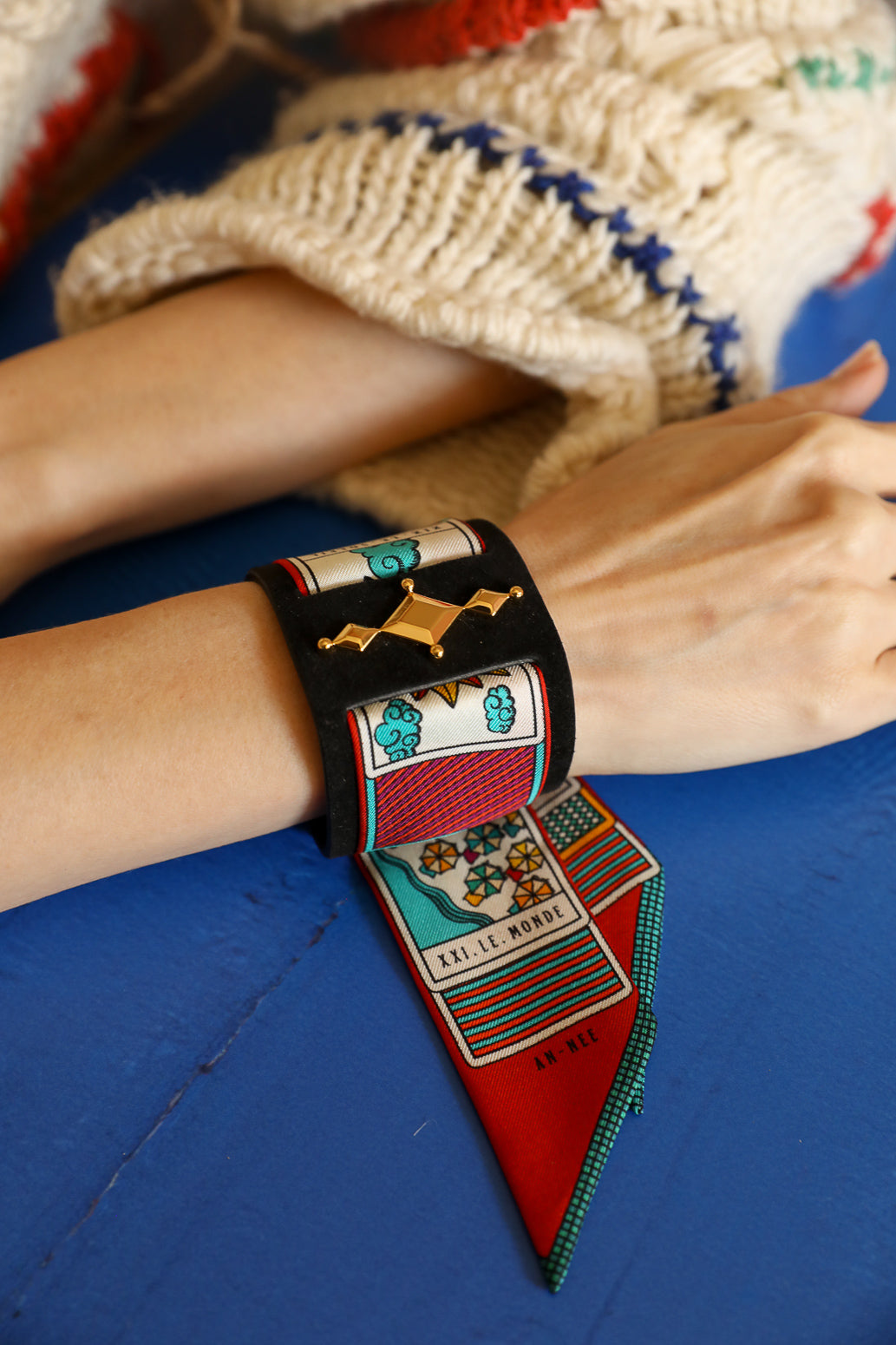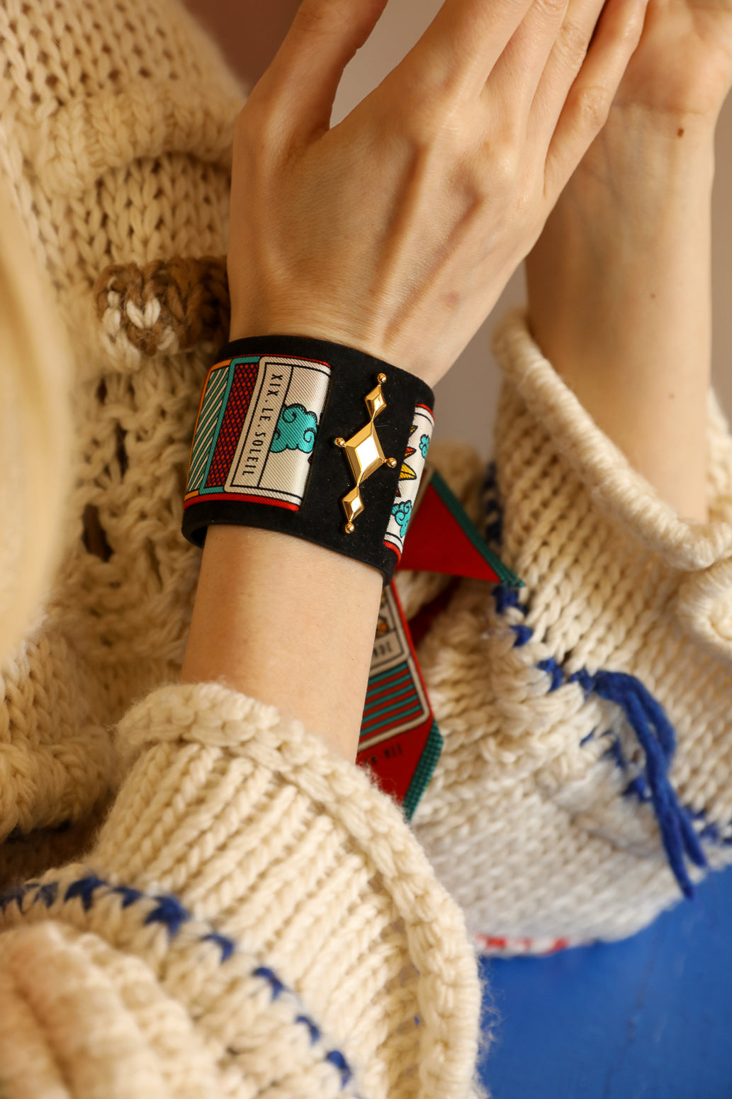 Manchette Circus noire et ruban Tarot, Multicolore