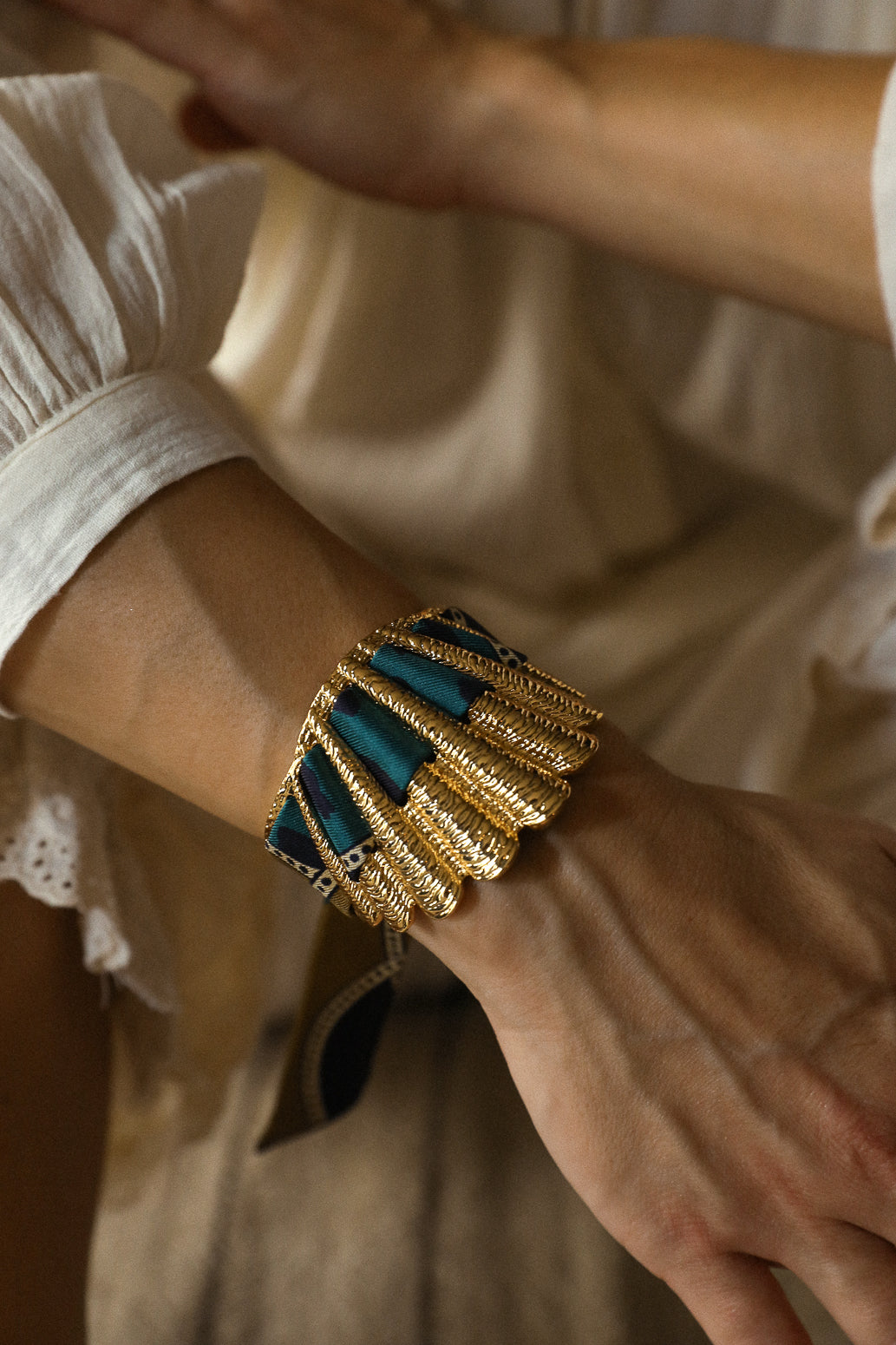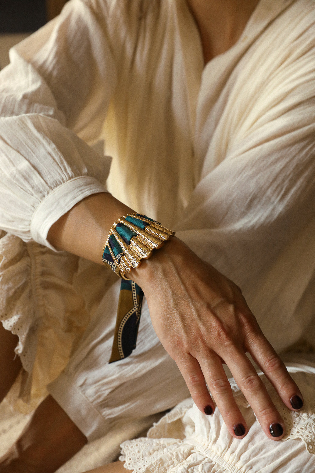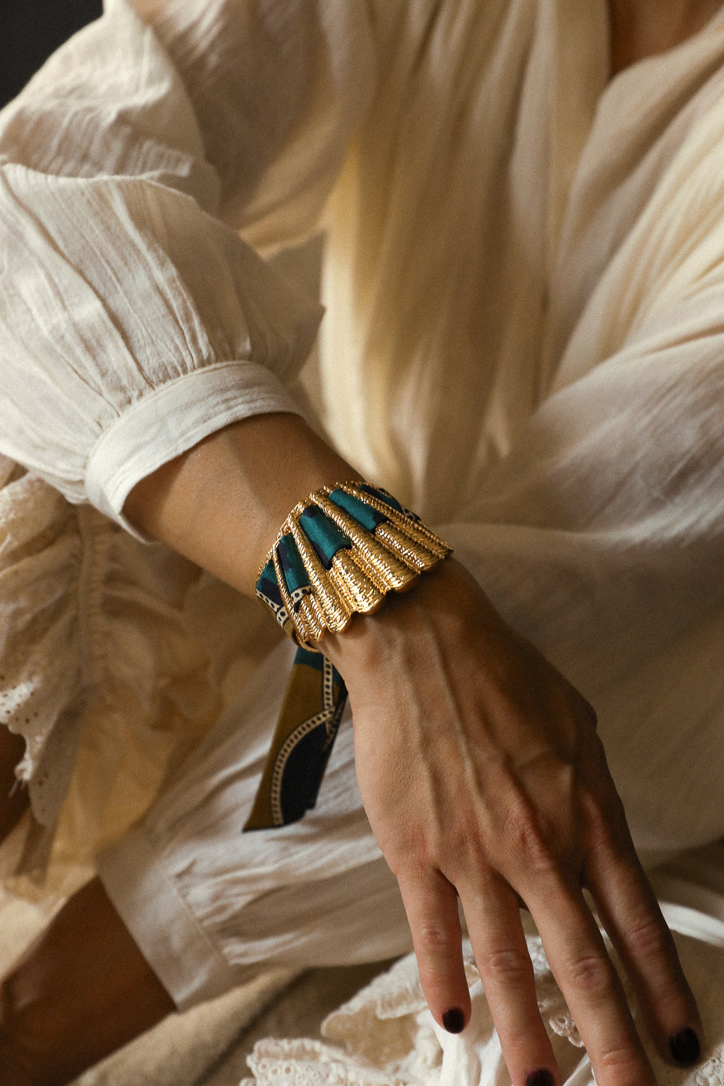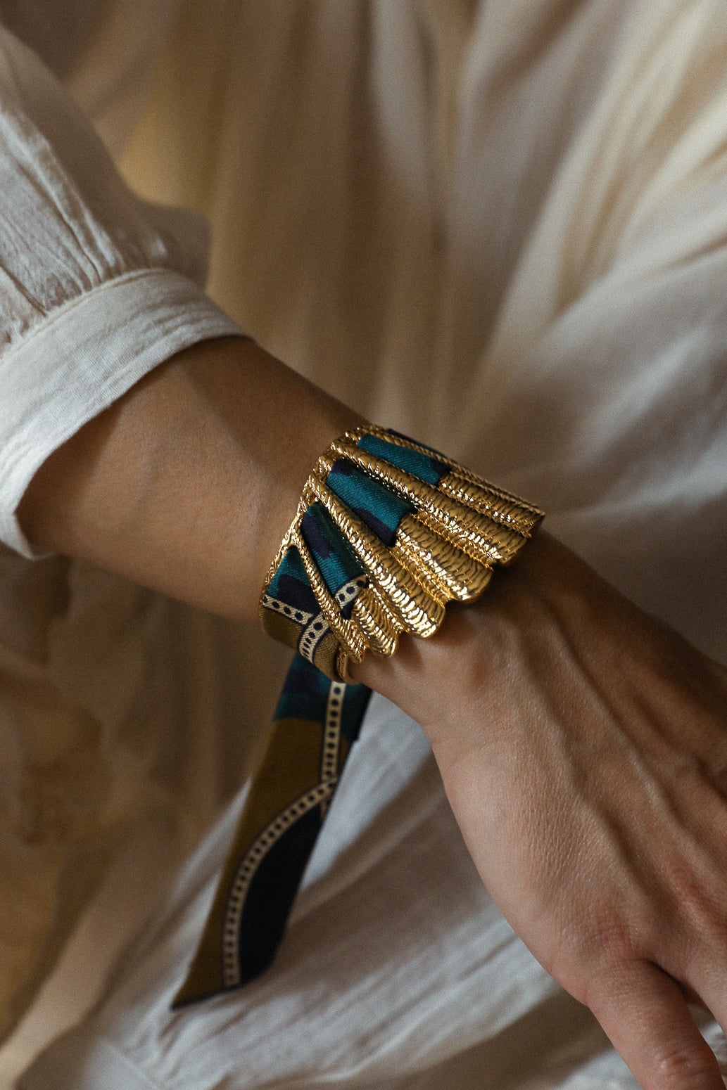 La manchette Coquille est la nouvelle beauté de nos collections. Matiérée et sculptée en forme de coquillage, elle épouse avec beaucoup de féminité tous les poignets. Malgré son apparence de grande pièce, elle reste légère et très facilement ajustable, ce qui fait d'elle l'une des pièces les plus adaptées à toutes les tailles de poignets. Si vous souhaitez commander d'autres rubans en soie pour aller avec votre manchette Coquille : elle est compatible avec nos rubans en soie de 2 cm