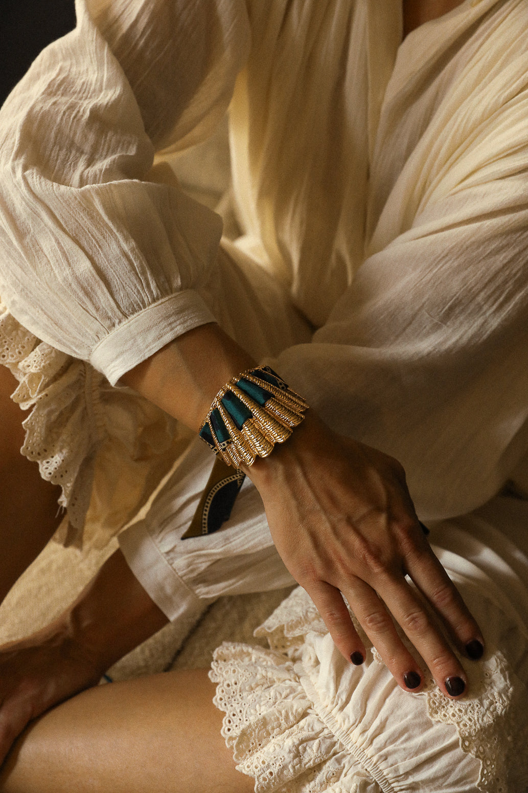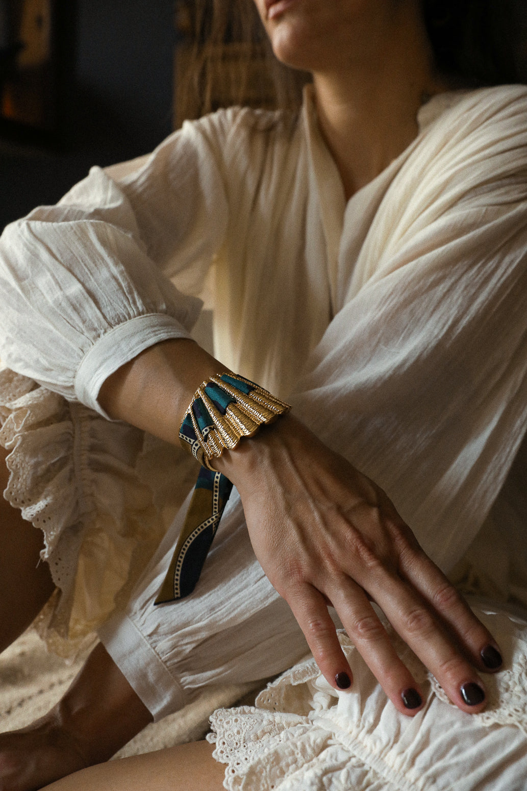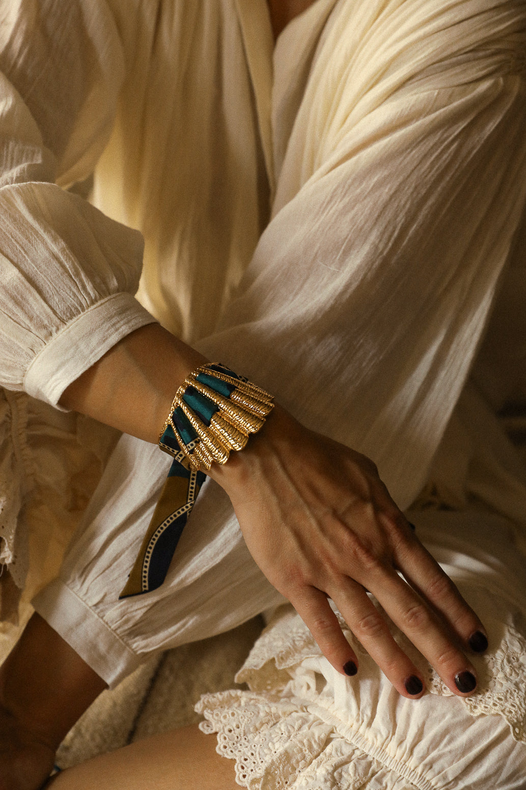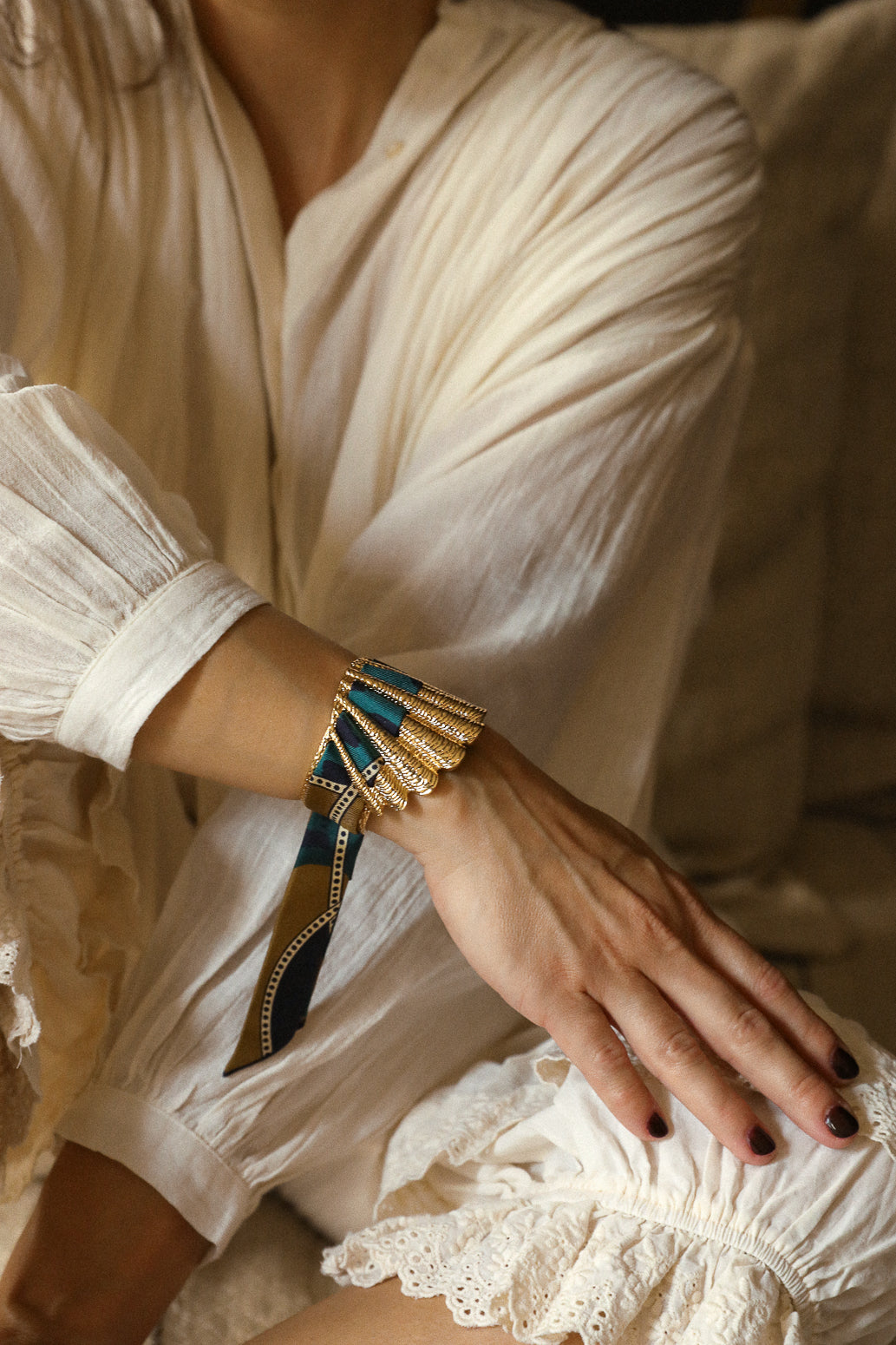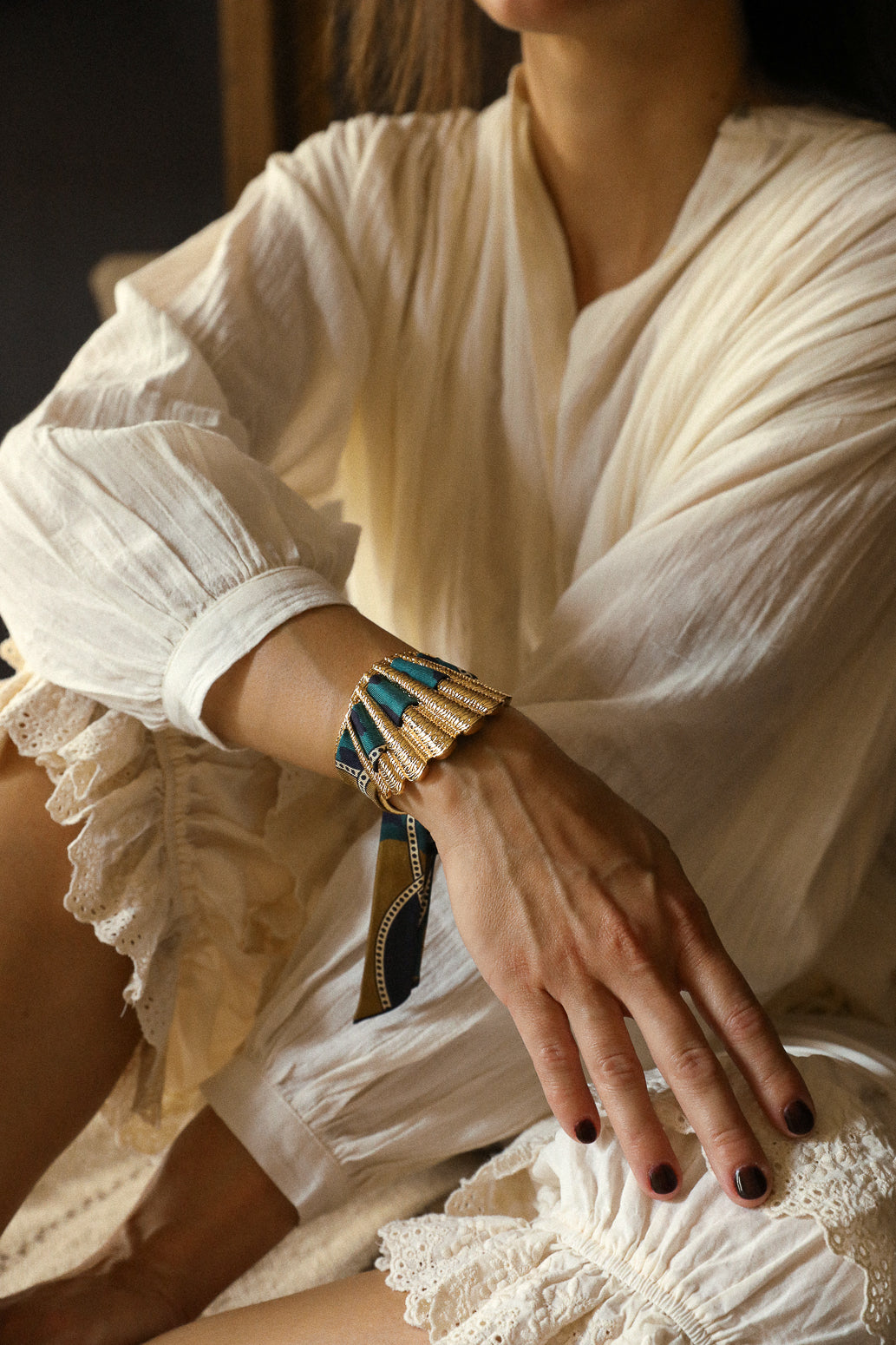 La manchette Coquille est la nouvelle beauté de nos collections. Matiérée et sculptée en forme de coquillage, elle épouse avec beaucoup de féminité tous les poignets. Malgré son apparence de grande pièce, elle reste légère et très facilement ajustable, ce qui fait d'elle l'une des pièces les plus adaptées à toutes les tailles de poignets. Si vous souhaitez commander d'autres rubans en soie pour aller avec votre manchette Coquille : elle est compatible avec nos rubans en soie de 2 cm