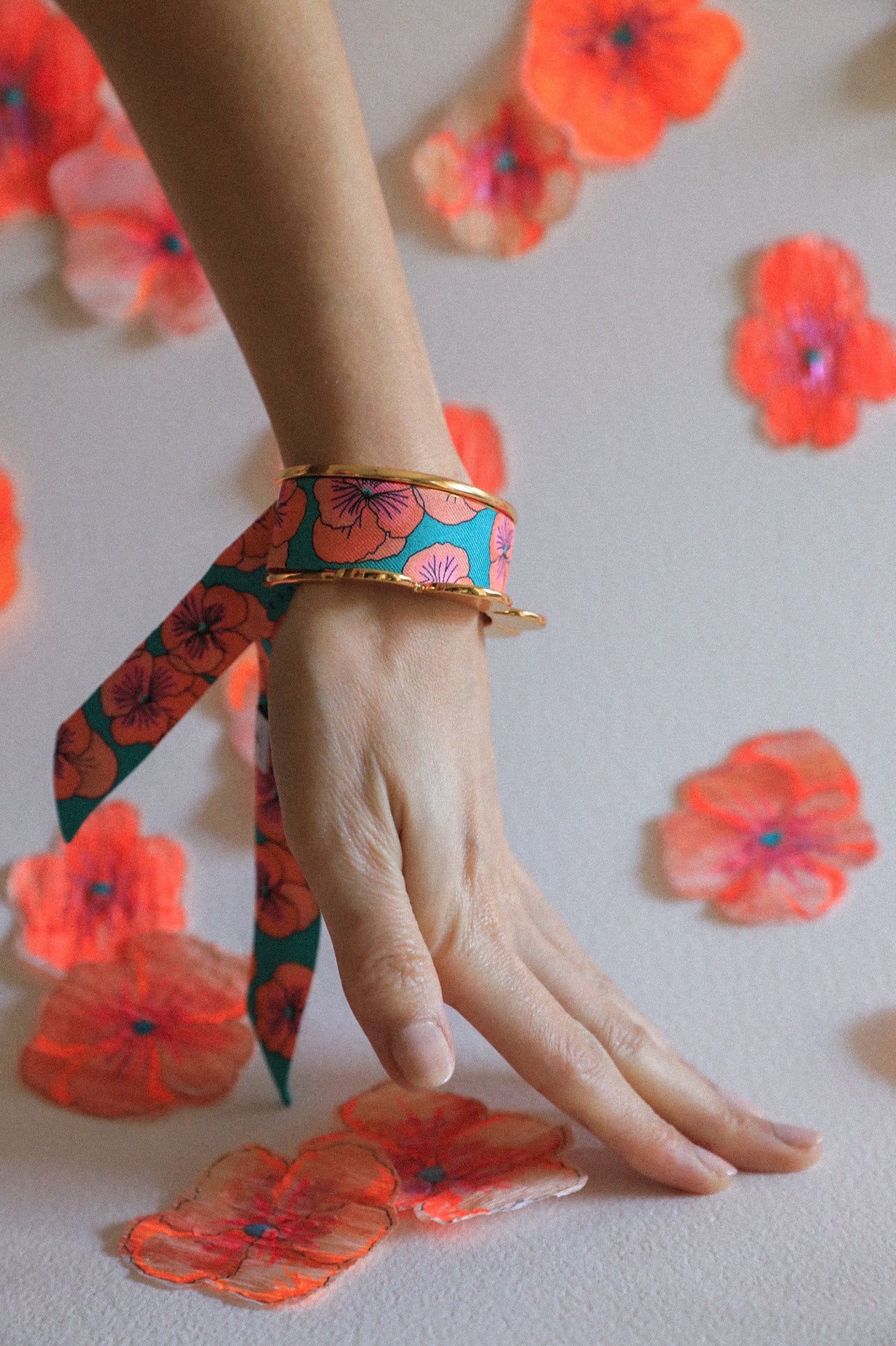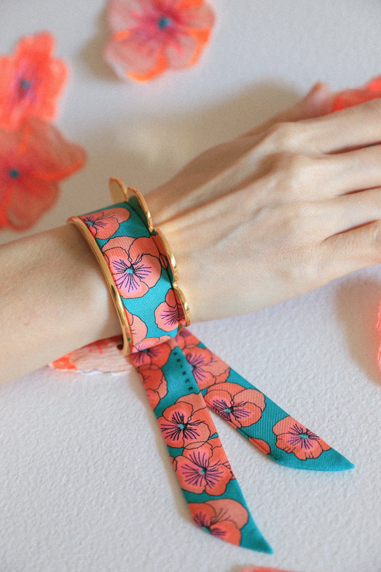 Si vous souhaitez commander d'autres bracelets en soie pour aller avec votre manchette : elle est compatible avec nos rubans en soie de 2 cm
