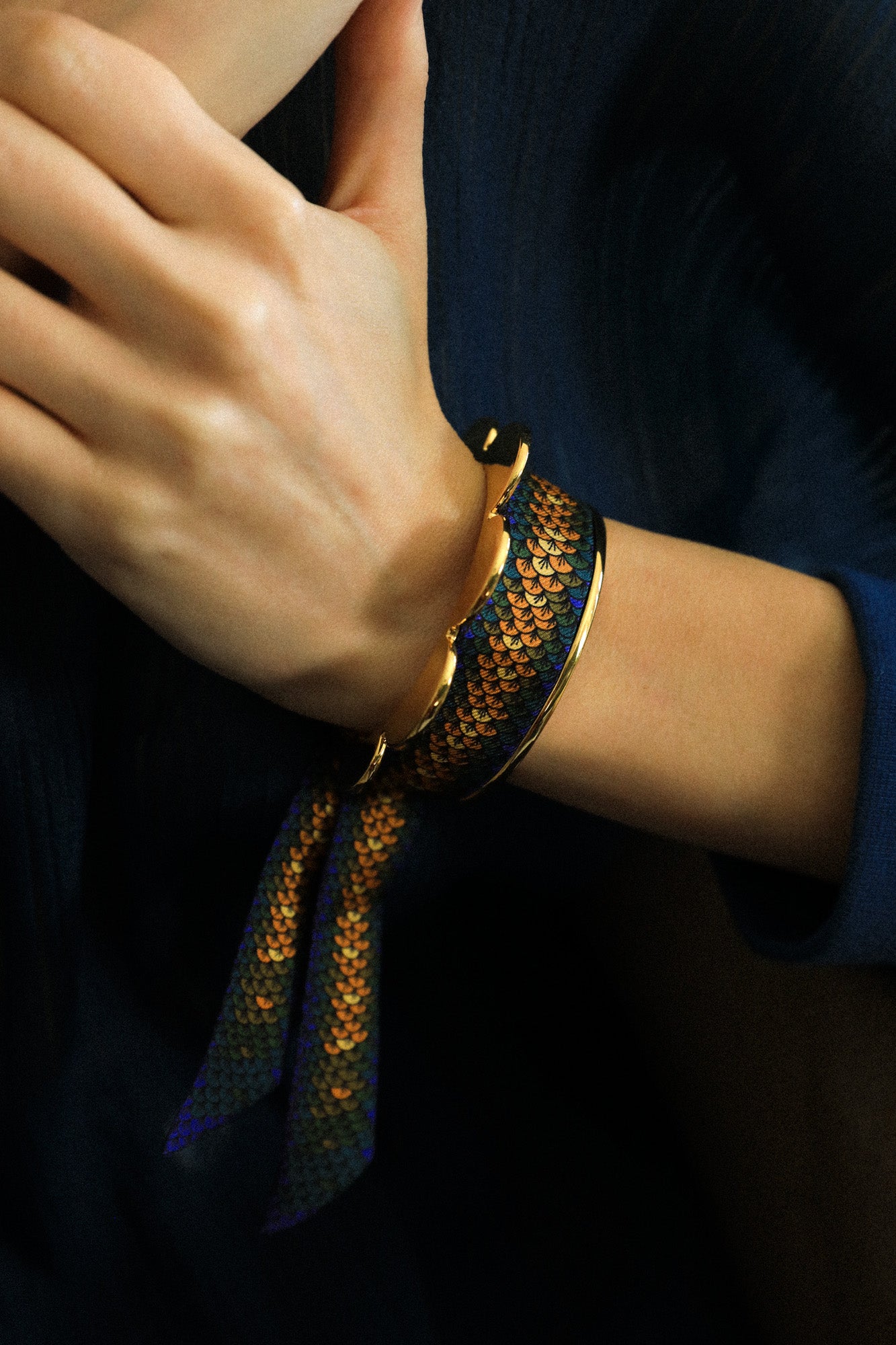 Si vous souhaitez commander d'autres bracelets en soie pour aller avec votre manchette : elle est compatible avec nos rubans en soie de 2 cm