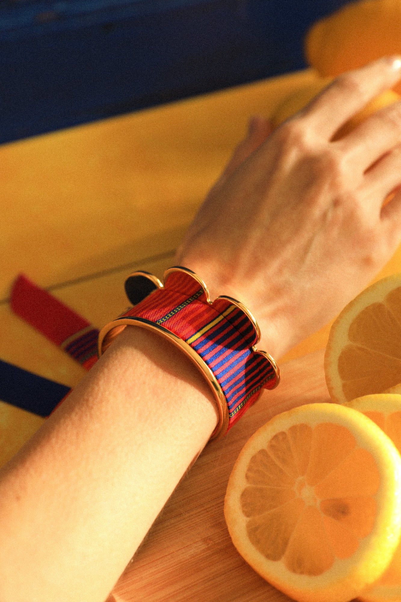 Nous sommes fiers de vous présenter probablement l'une de nos manchettes les plus créatives, la manchette Fanion, inspirée par l'univers du Cirque et les fanions des chapiteaux.