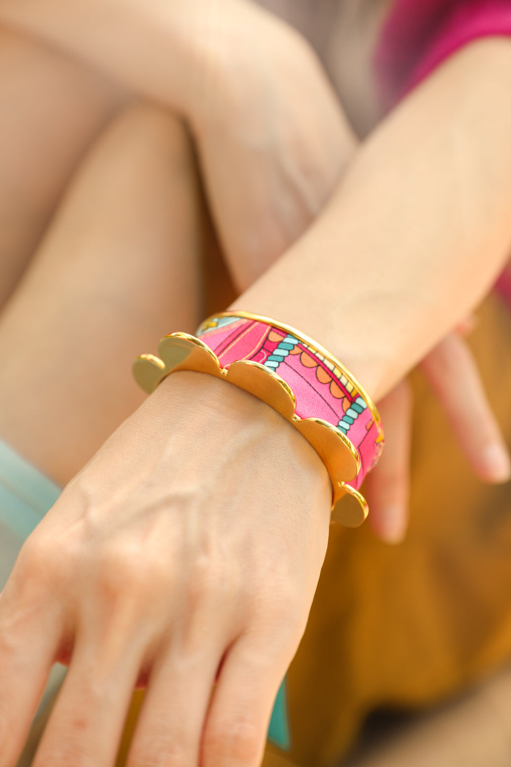 Probablement l'une de nos manchettes les plus créatives, la manchette Fanion, inspirée par l'univers du Cirque et les fanions des chapiteaux.