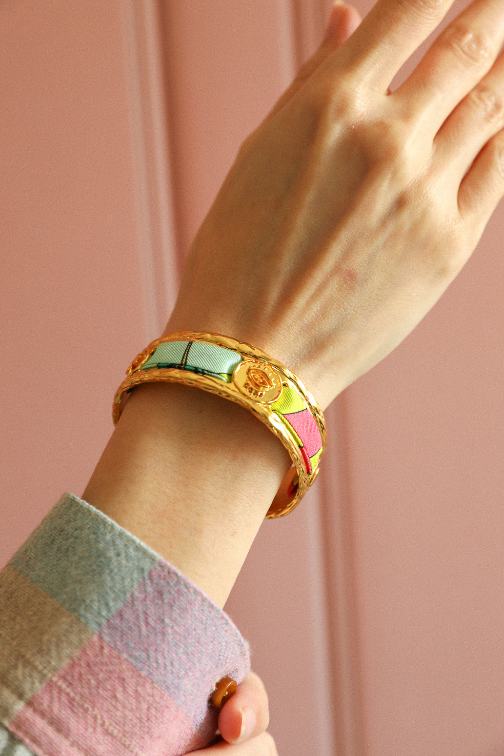 70% Laiton flashé Or / 30% Twill de soie.
