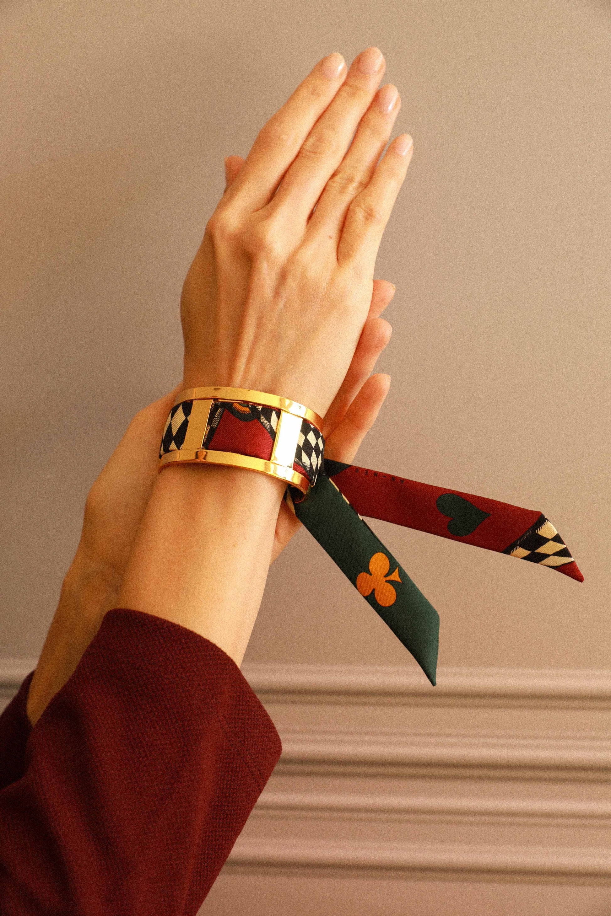 Si vous souhaitez commander d'autres bracelets en soie pour aller avec votre manchette : elle est compatible avec nos bracelets en soie de 2 cm
