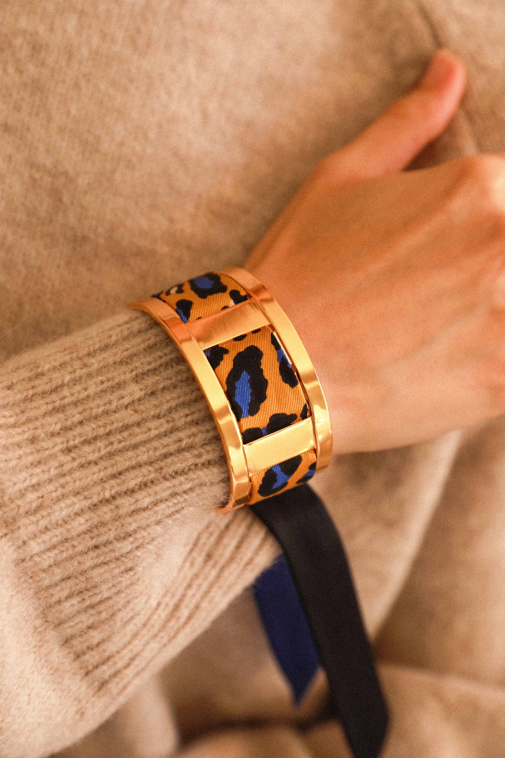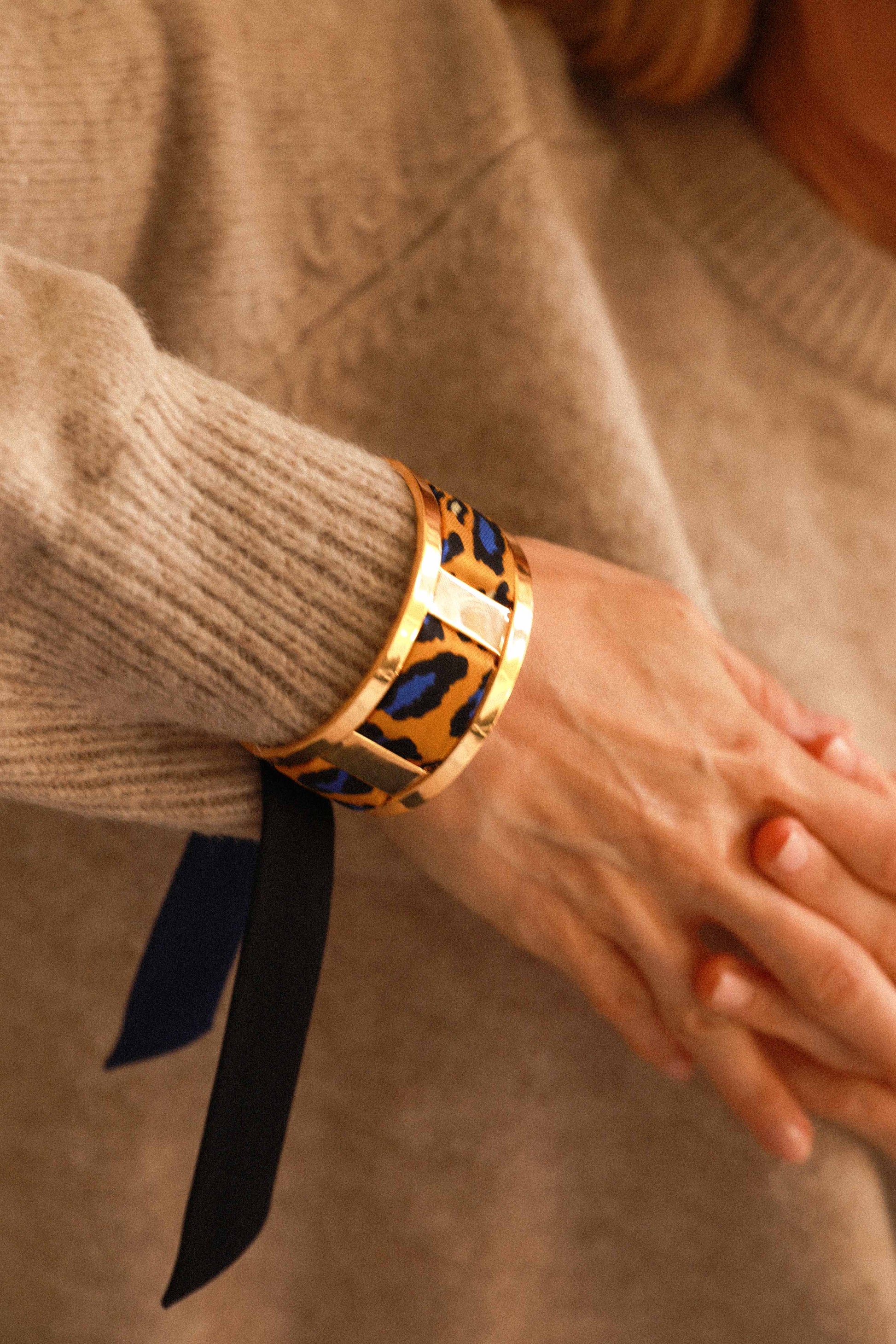 Manchette JMA et son ruban Le Léopard, bleu/jaune