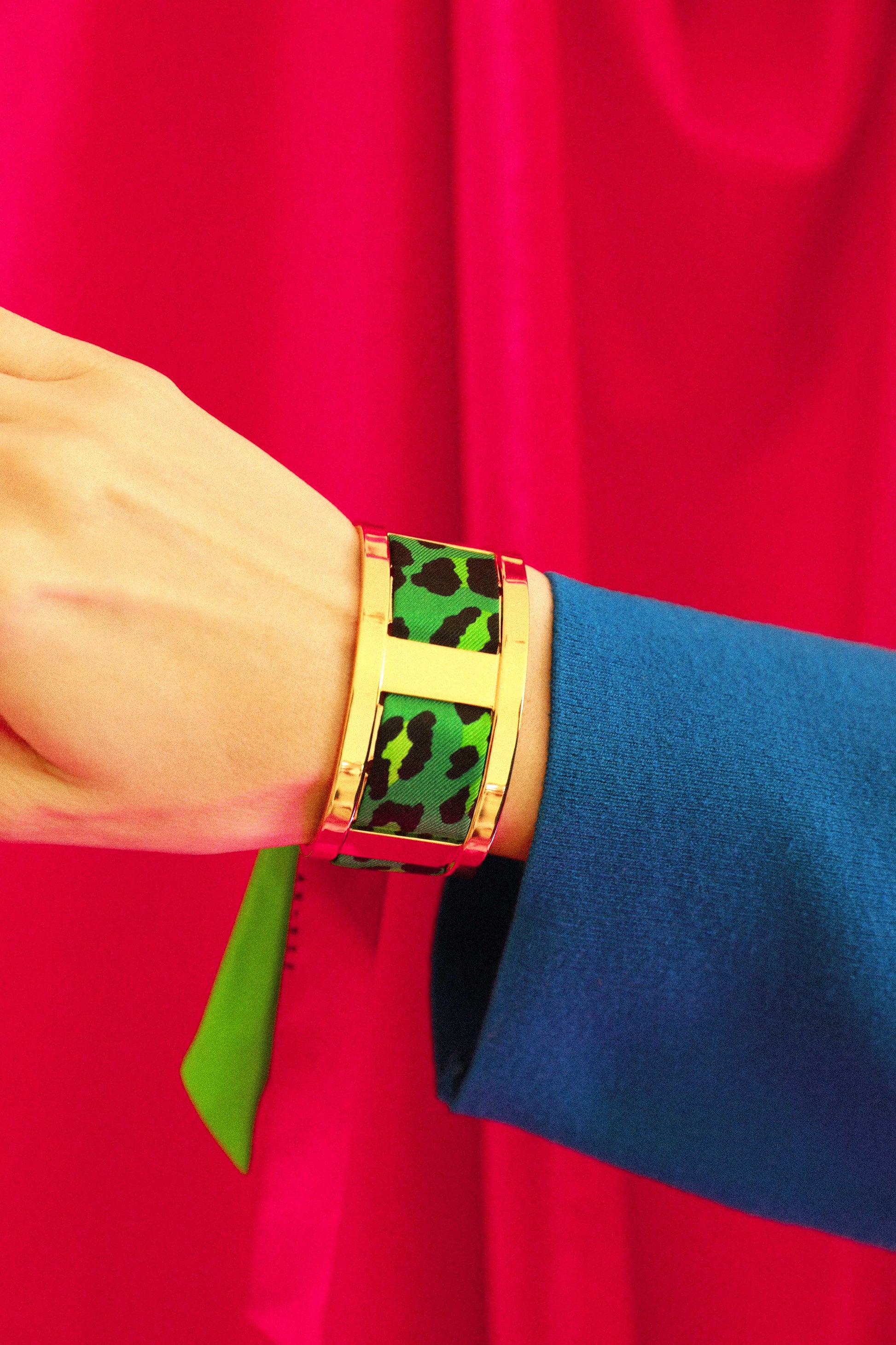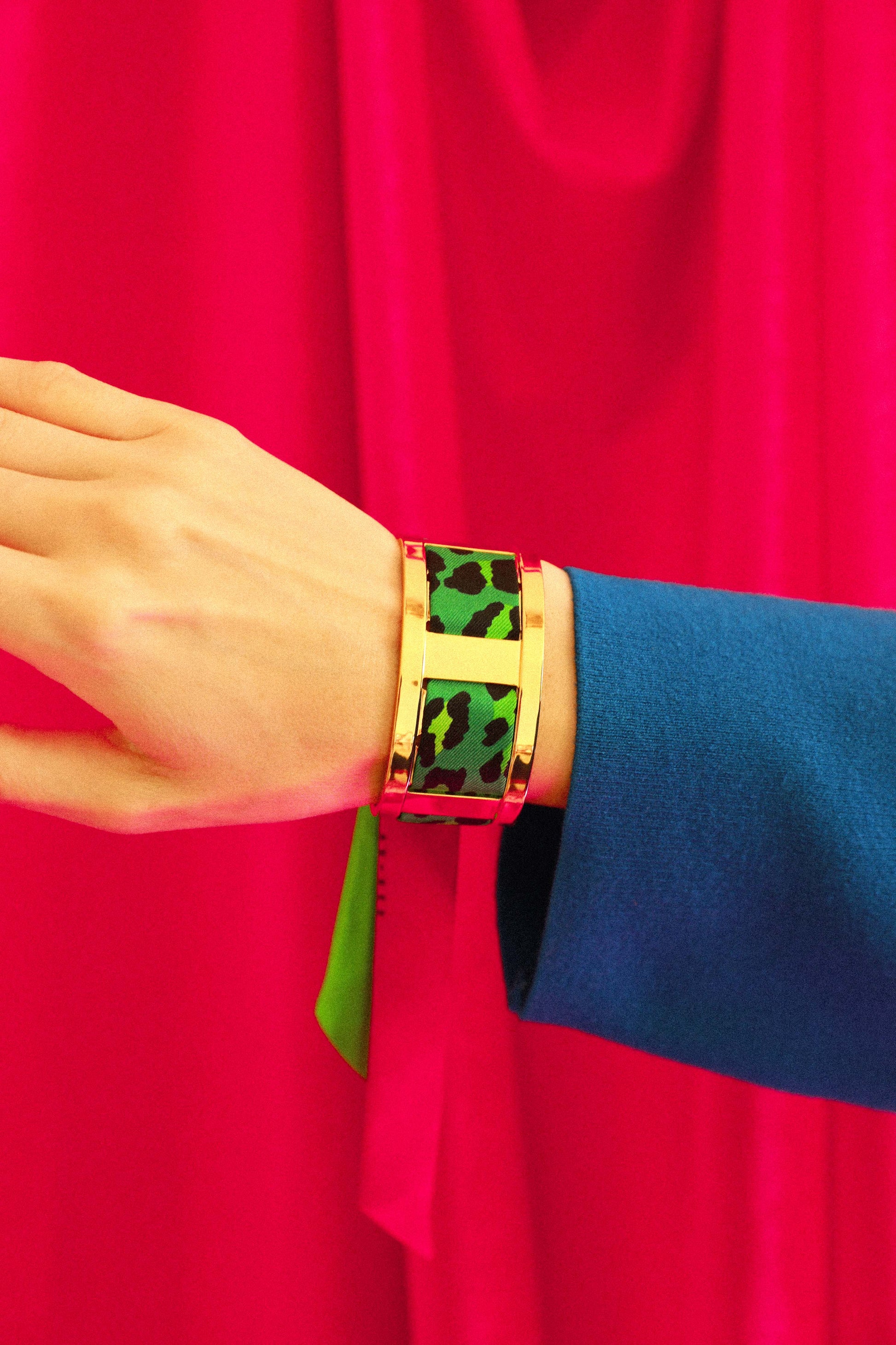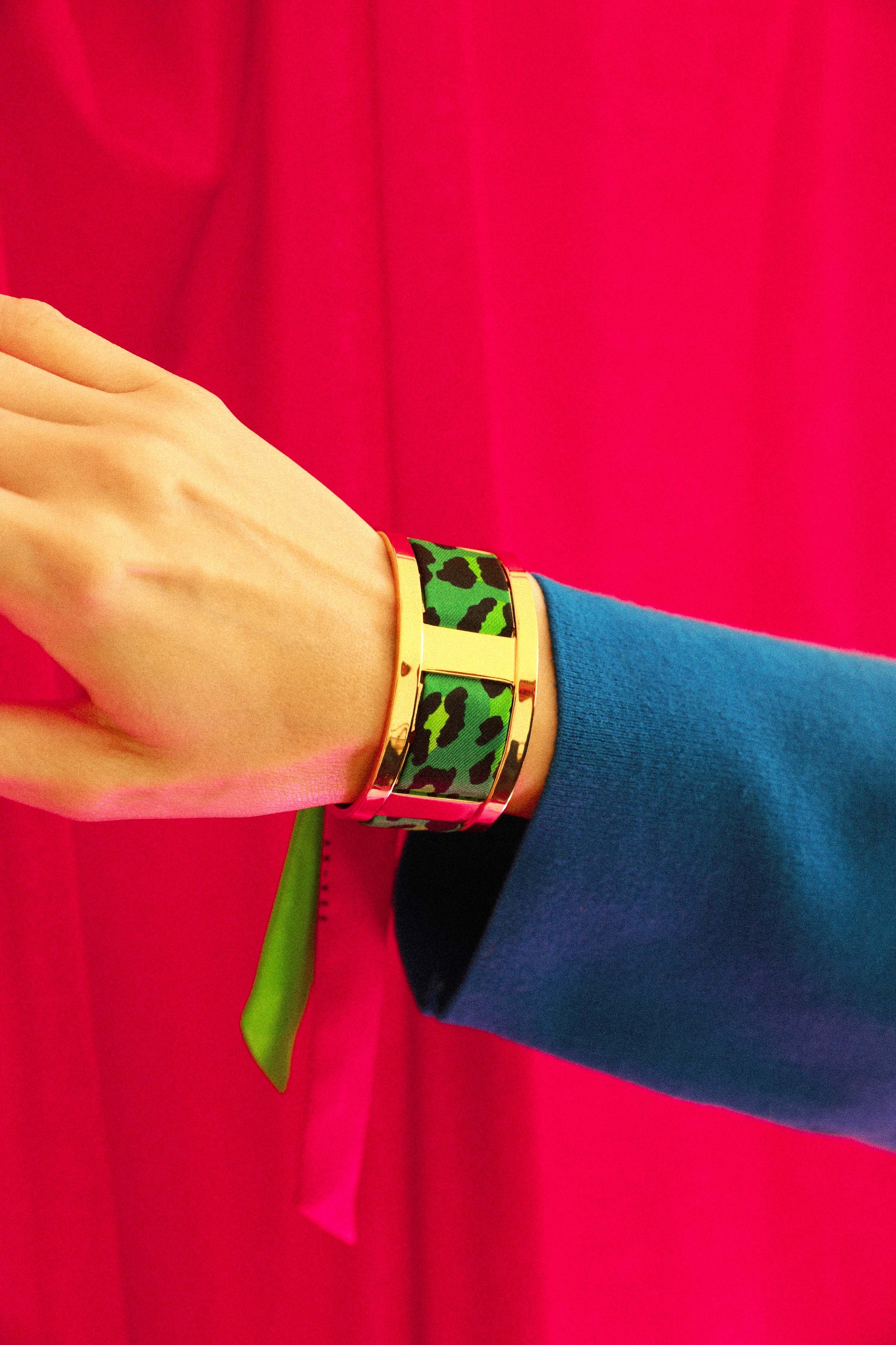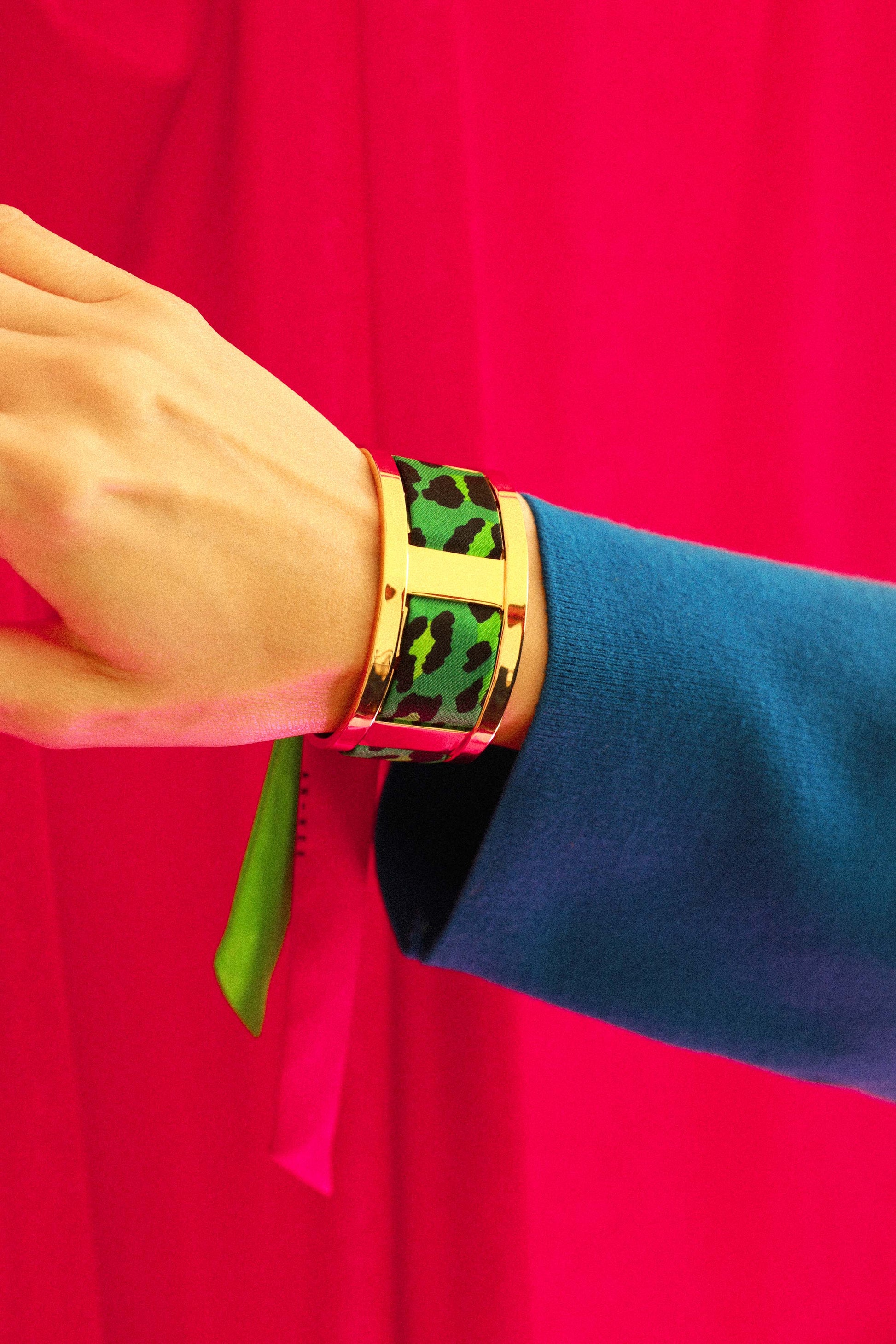 Manchette JMA et son ruban Le Léopard, vert/rose