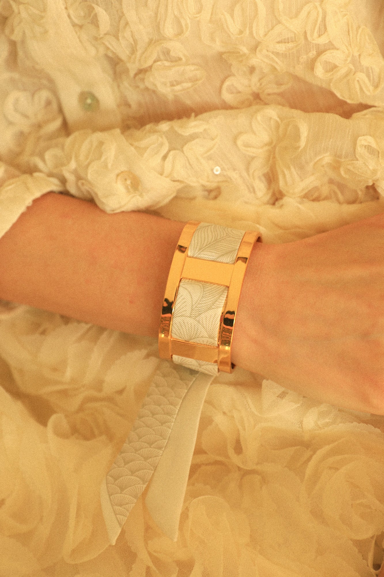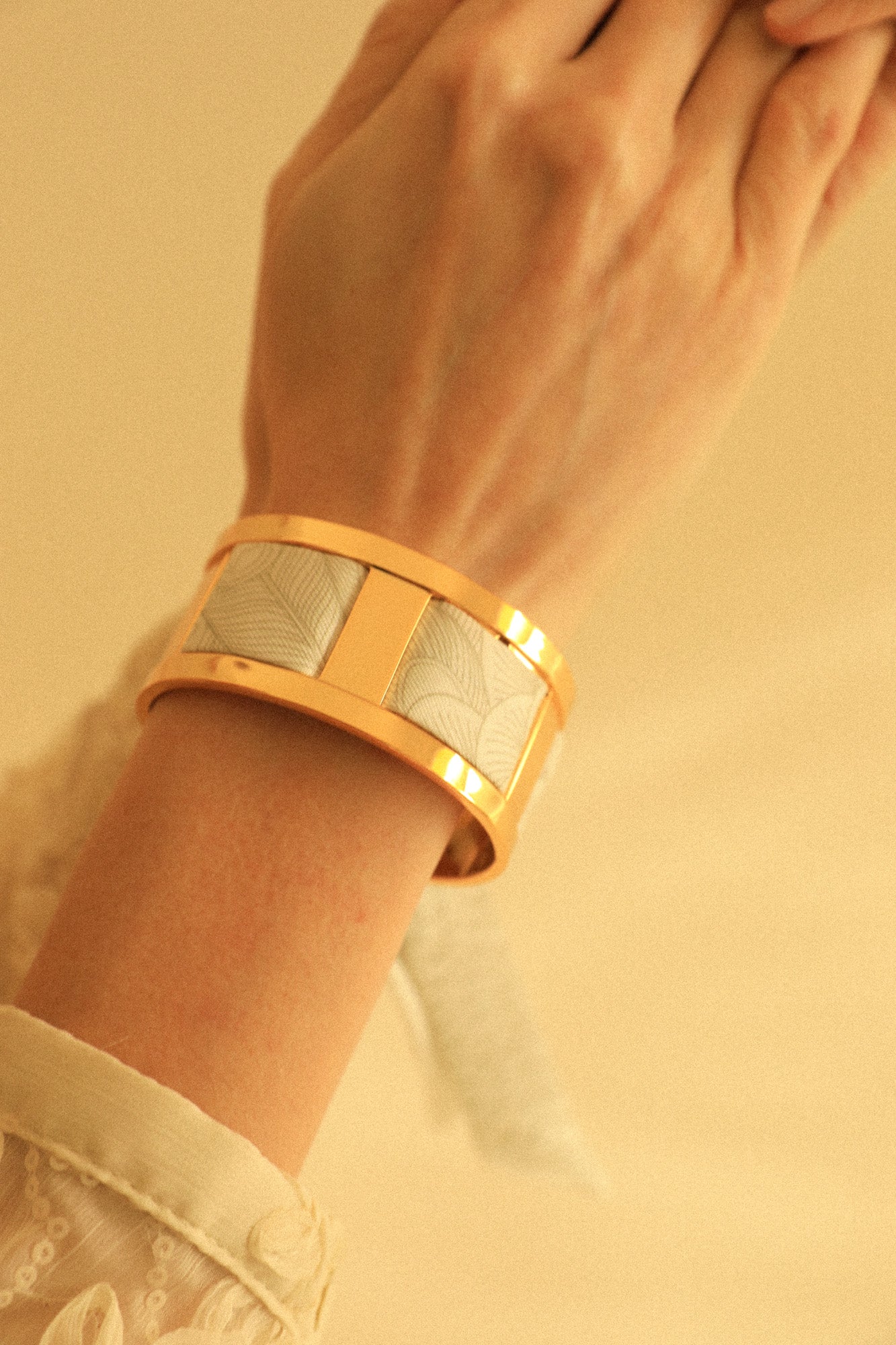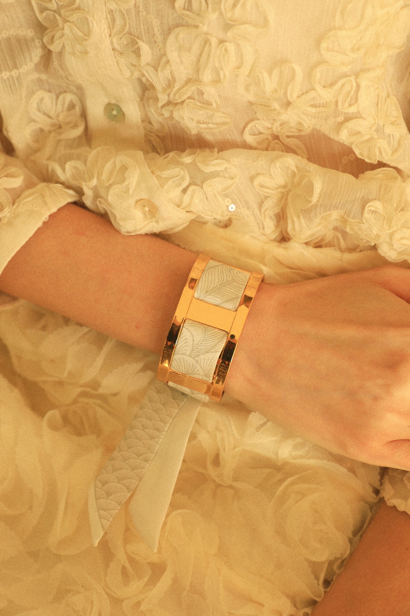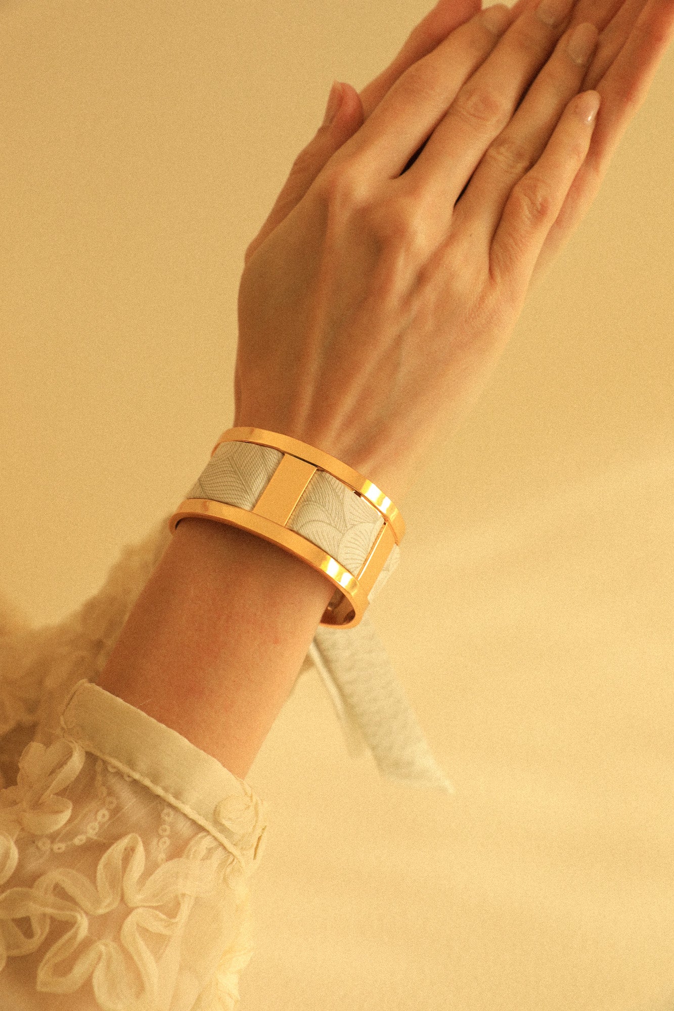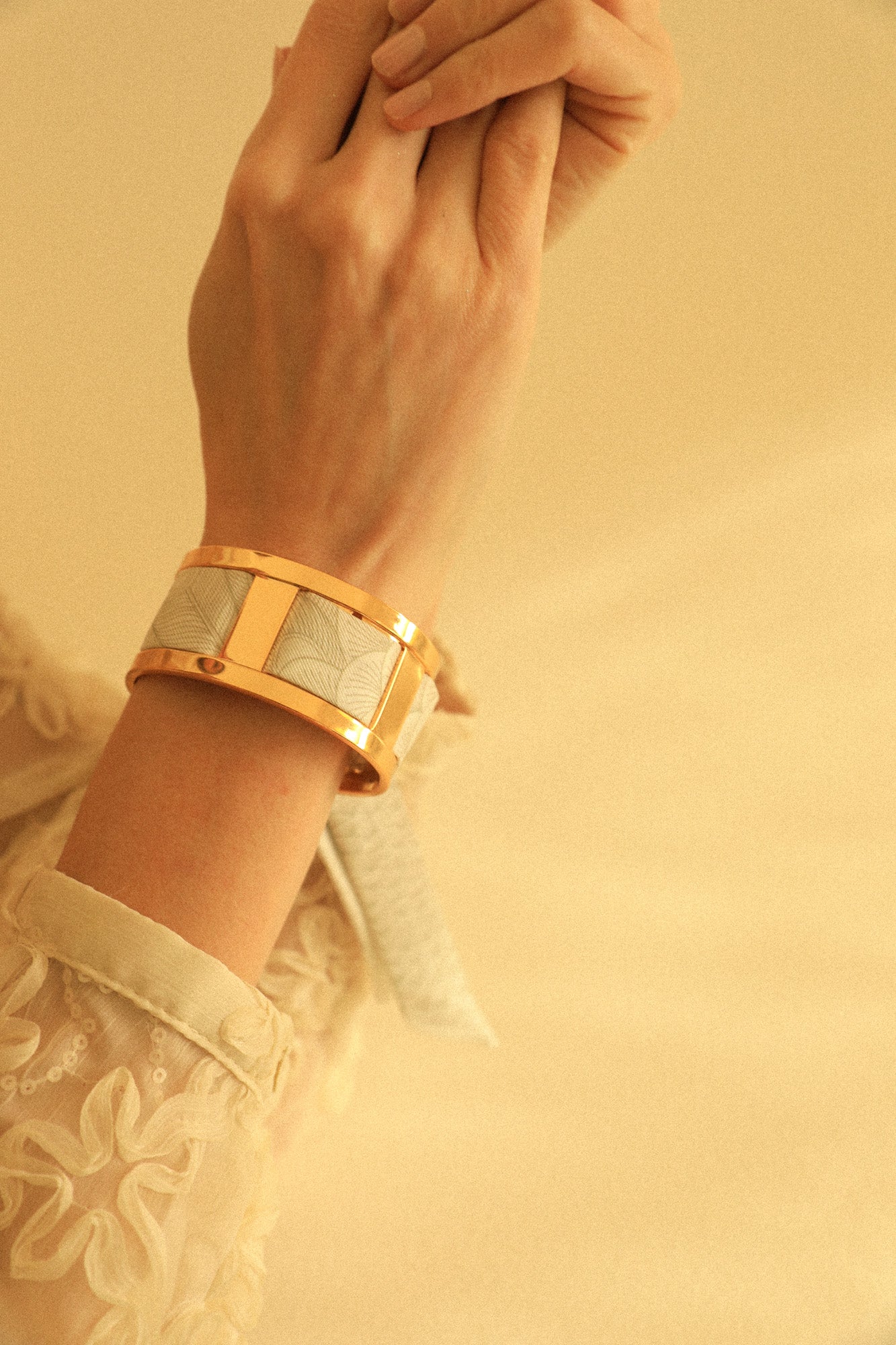 70% Laiton flashé Or / 30% Twill de soie.