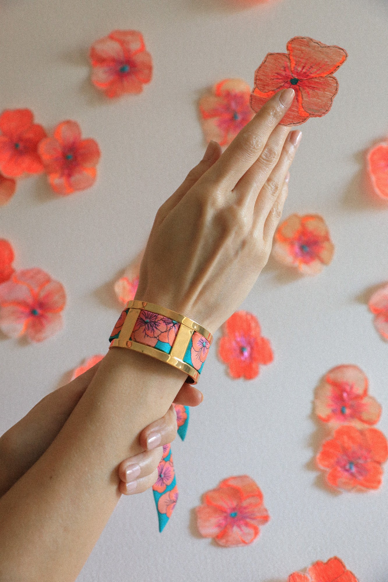 Si vous souhaitez commander d'autres bracelets en soie pour aller avec votre manchette : elle est compatible avec nos bracelets en soie de 2 cm