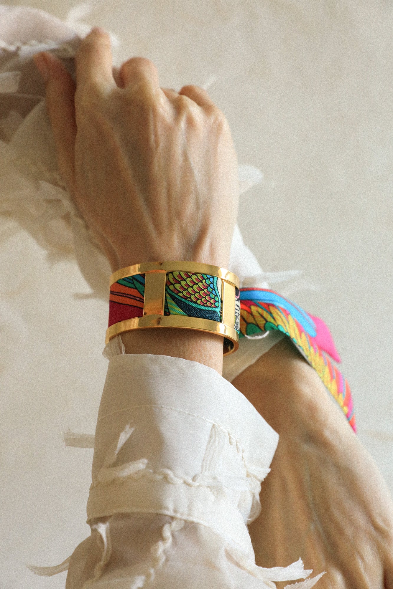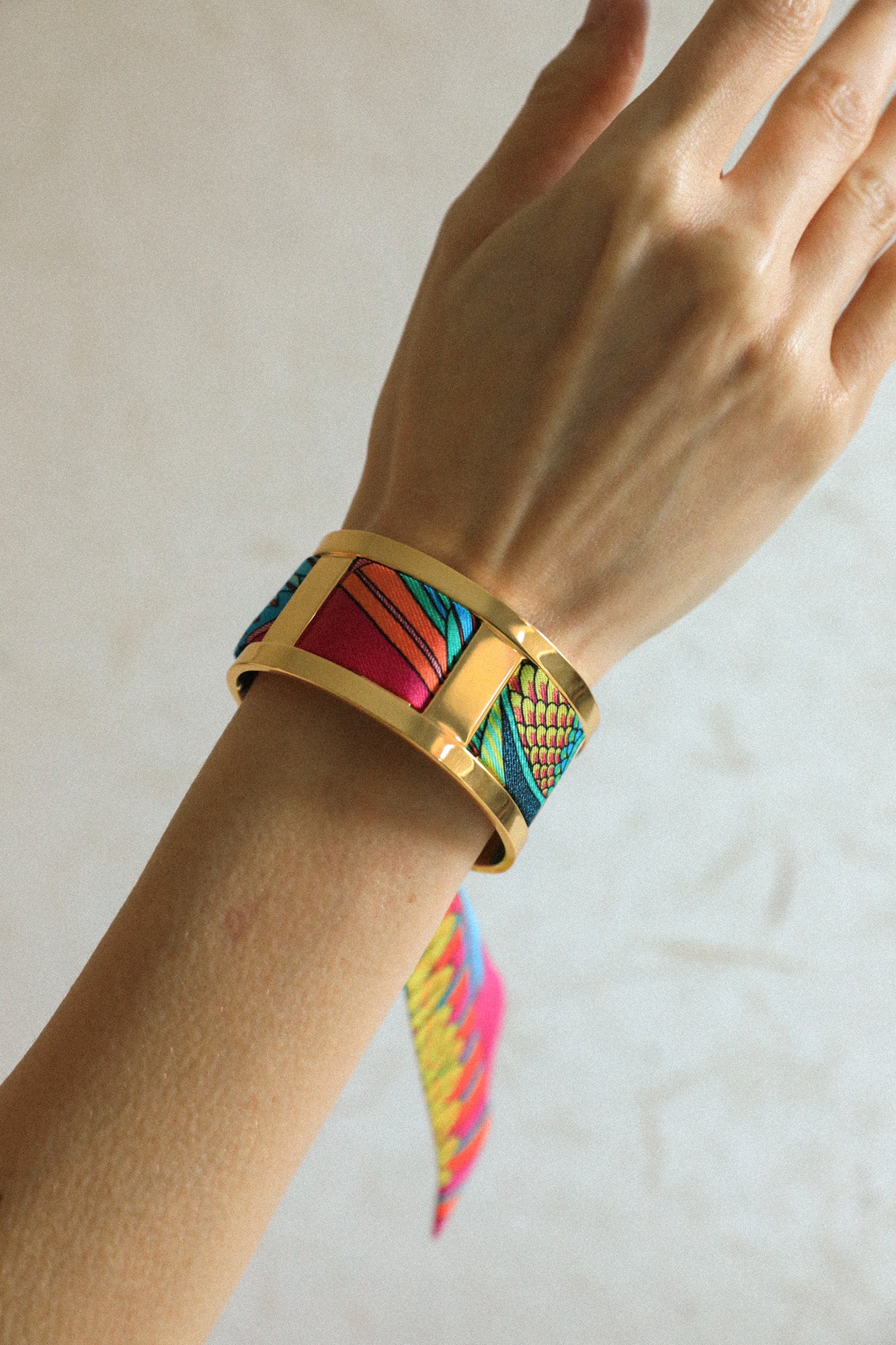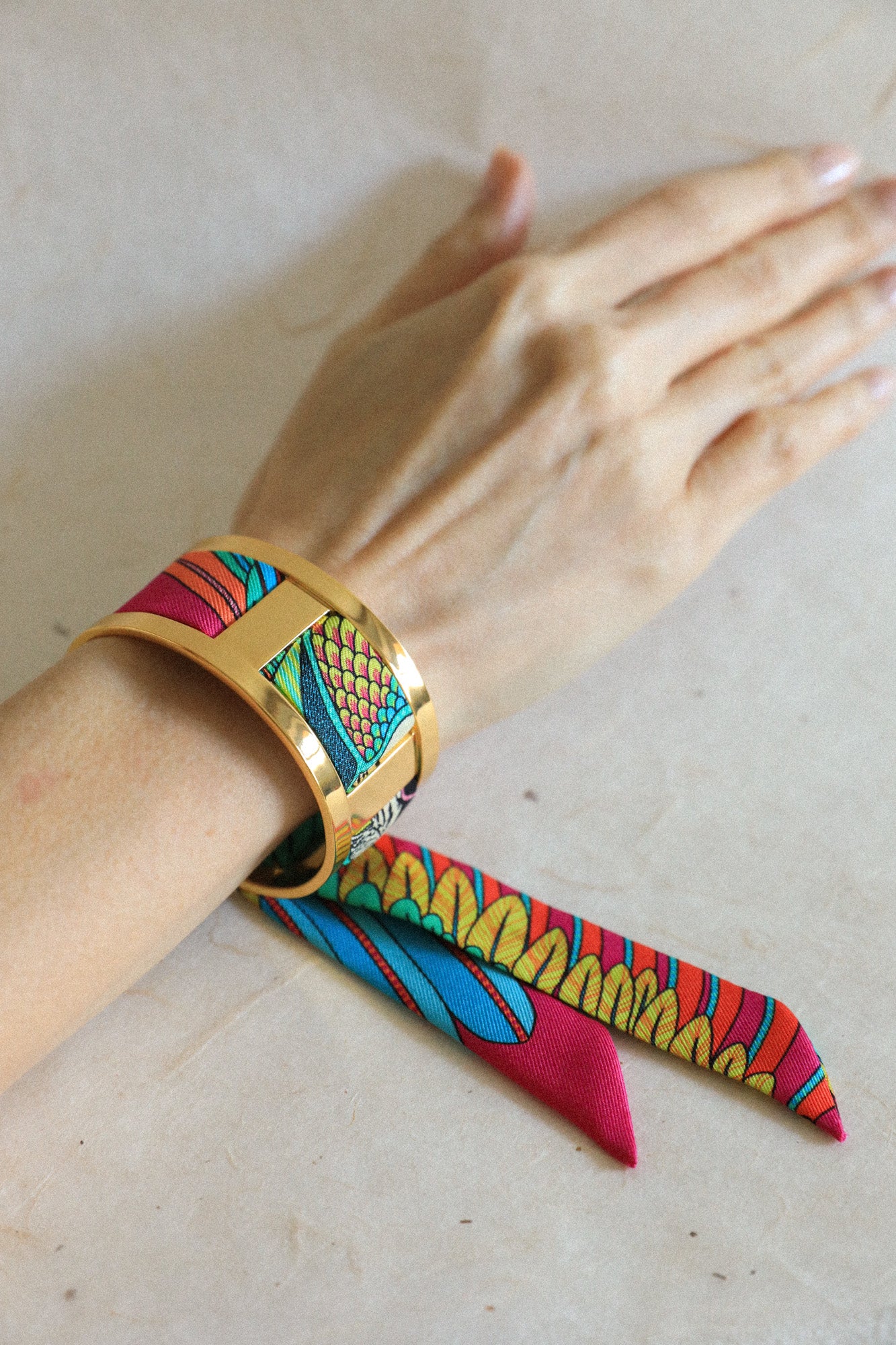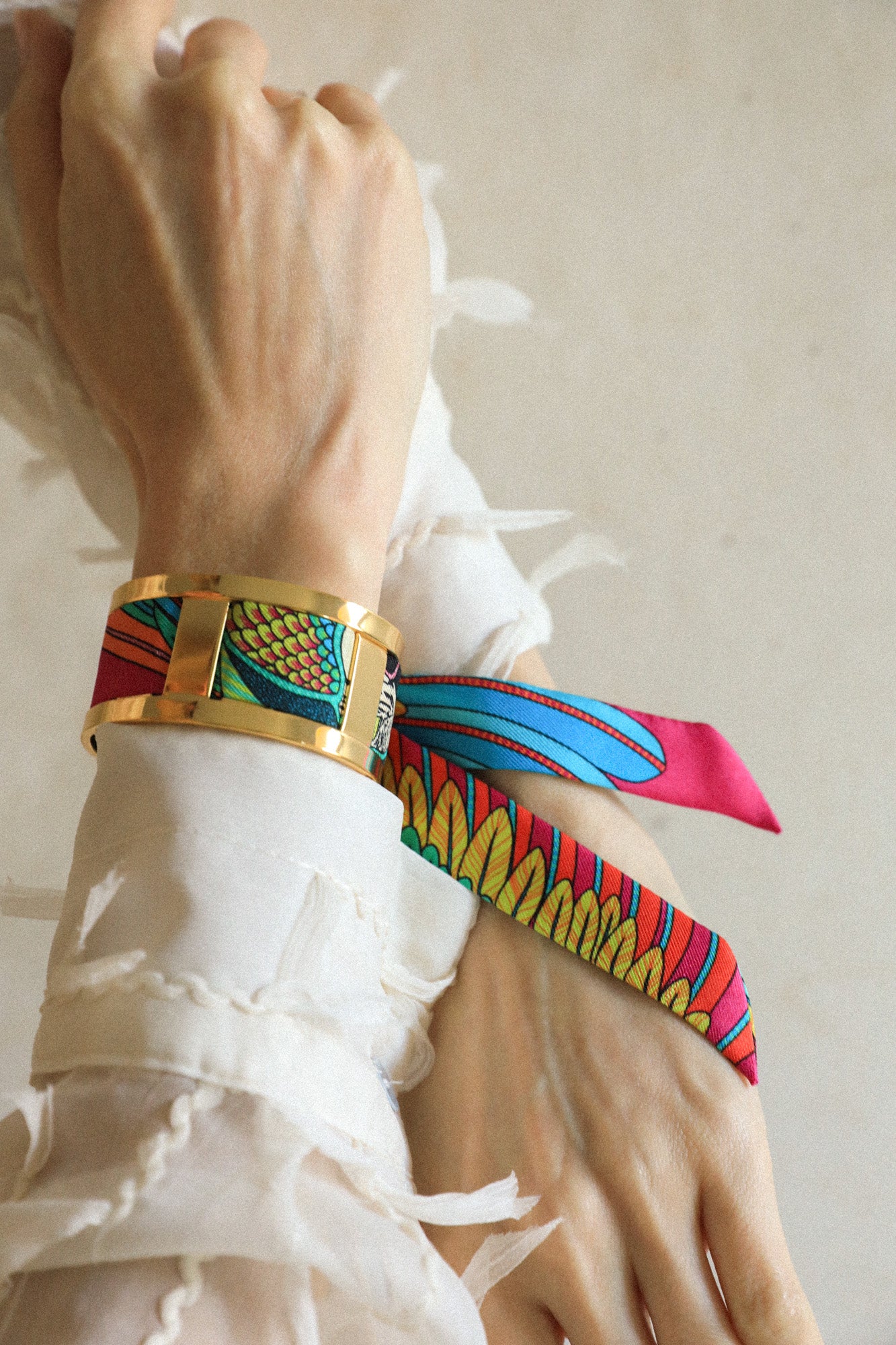 Si vous souhaitez commander d'autres bracelets en soie pour aller avec votre manchette : elle est compatible avec nos bracelets en soie de 2 cm