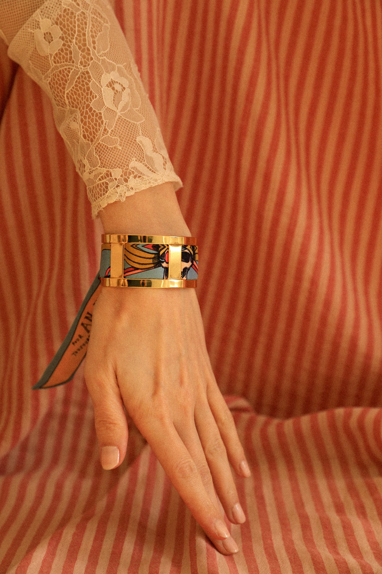 Si vous souhaitez commander d'autres bracelets en soie pour aller avec votre manchette : elle est compatible avec nos bracelets en soie de 2 cm