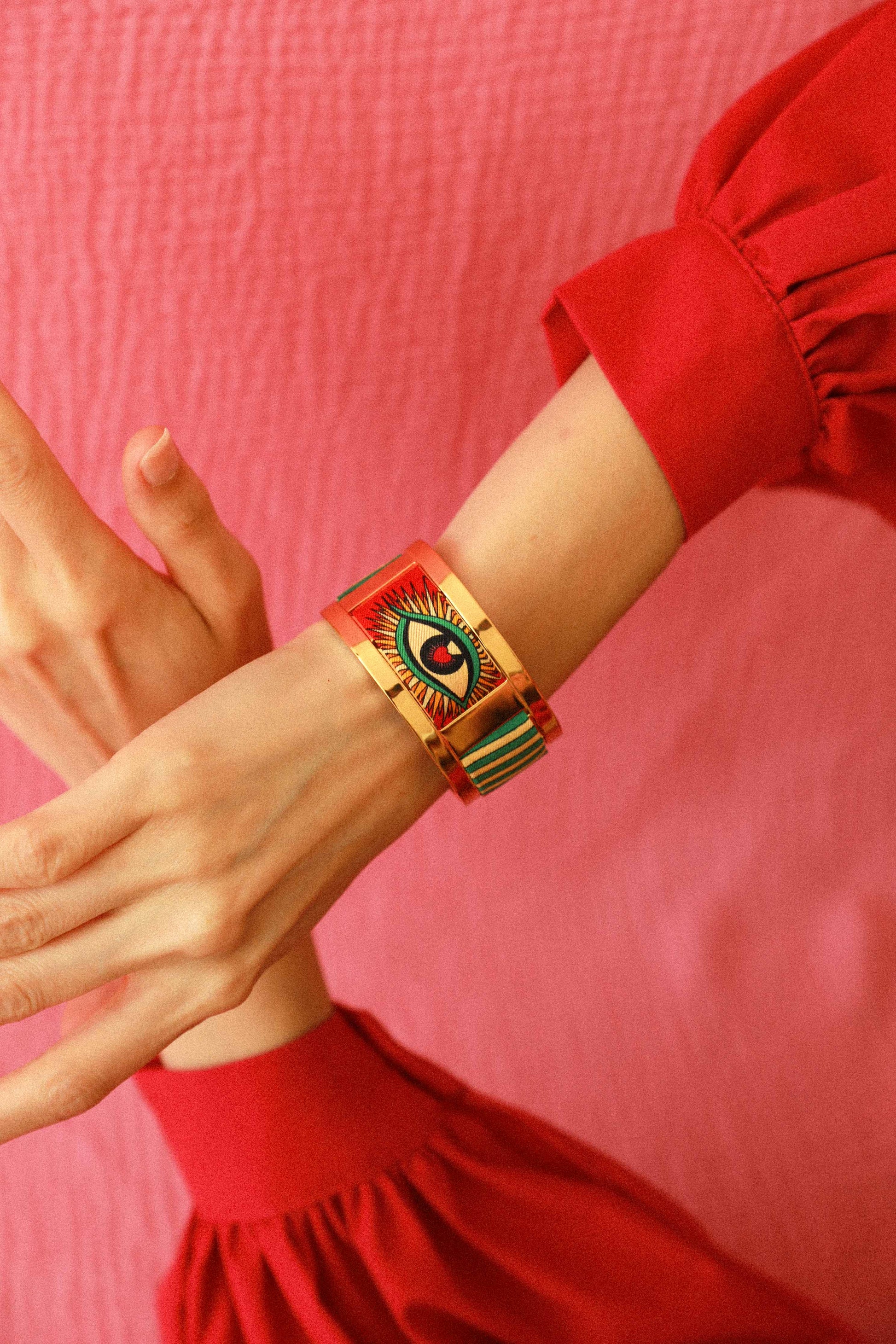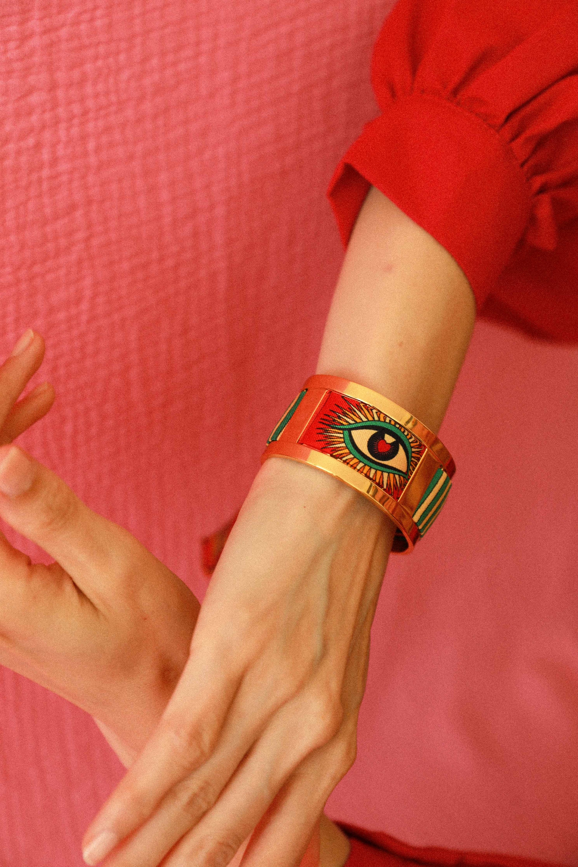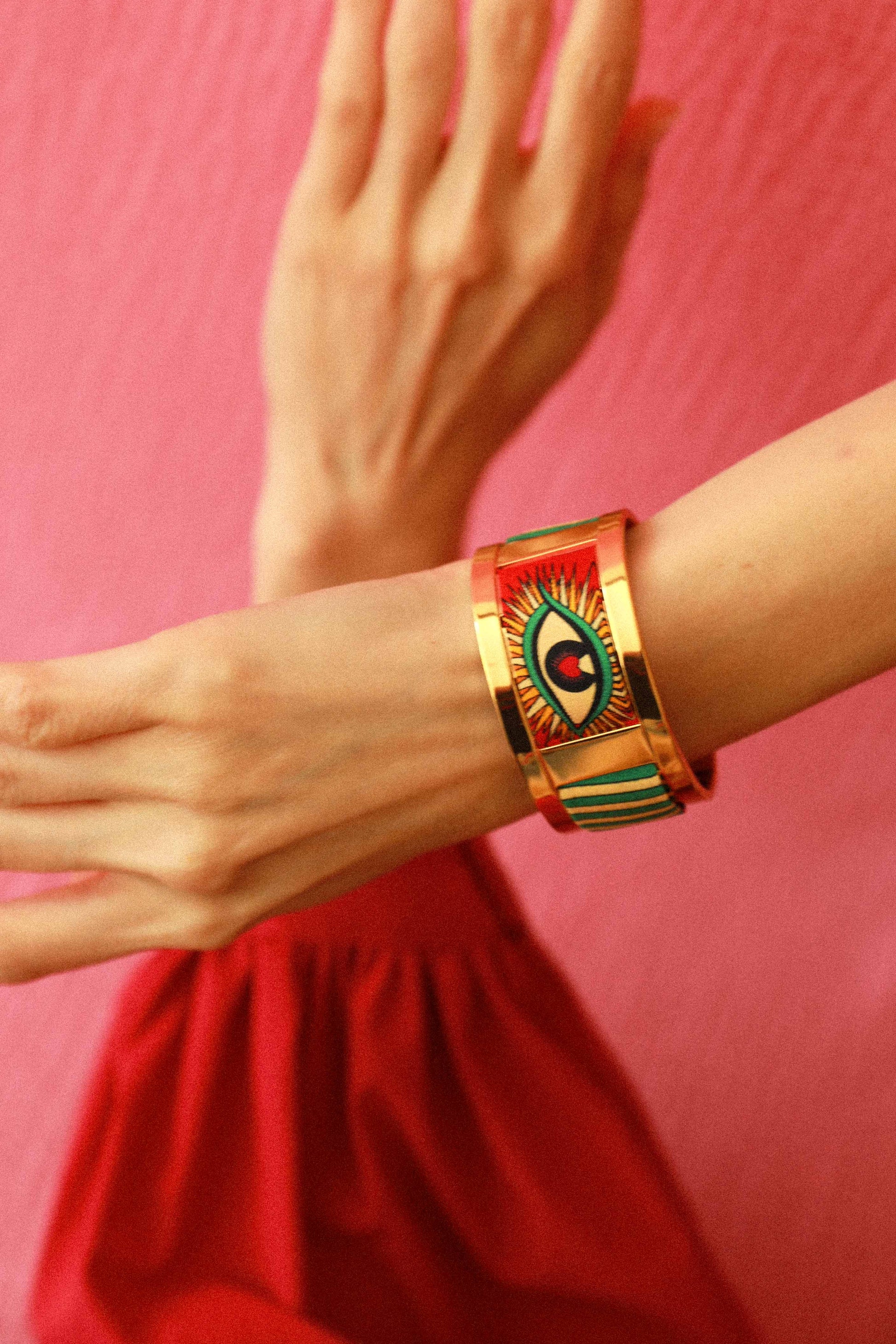 La manchette JMA est la manchette signature d'AN-NEE. La toute première à avoir été créée par la créatrice, et le départ de tout l'univers de la collection SÛRE-MESURE, une collection de bijoux hybrides revisitant la soie. Le Concept Nous avons appellé cette manchette la manchette JMA, car c'est une manchette que vous aurez envie de porter jour après jour (J), mois après mois (M), année après année (A). Pourquoi ? Parce que d'une part vous pouvez changer de bracelet en soie au sein d'une même collection mais aussi de toutes les suivantes, et donc d'imprimé, de couleurs, d'humeur... Mais aussi parce que vous pouvez la tisser différemment. Comment ? On vous le montre dans un petit dépliant fourni avec votre manchette, via 7 tissages différents, pour les 7 jours de la semaine.