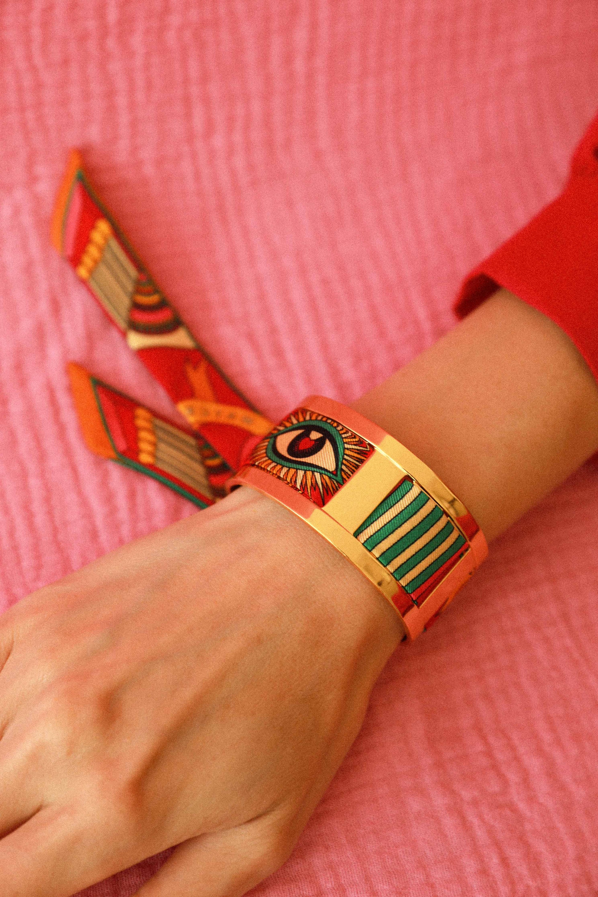 Si vous souhaitez commander d'autres bracelets en soie pour aller avec votre manchette : elle est compatible avec nos bracelets en soie de 2 cm