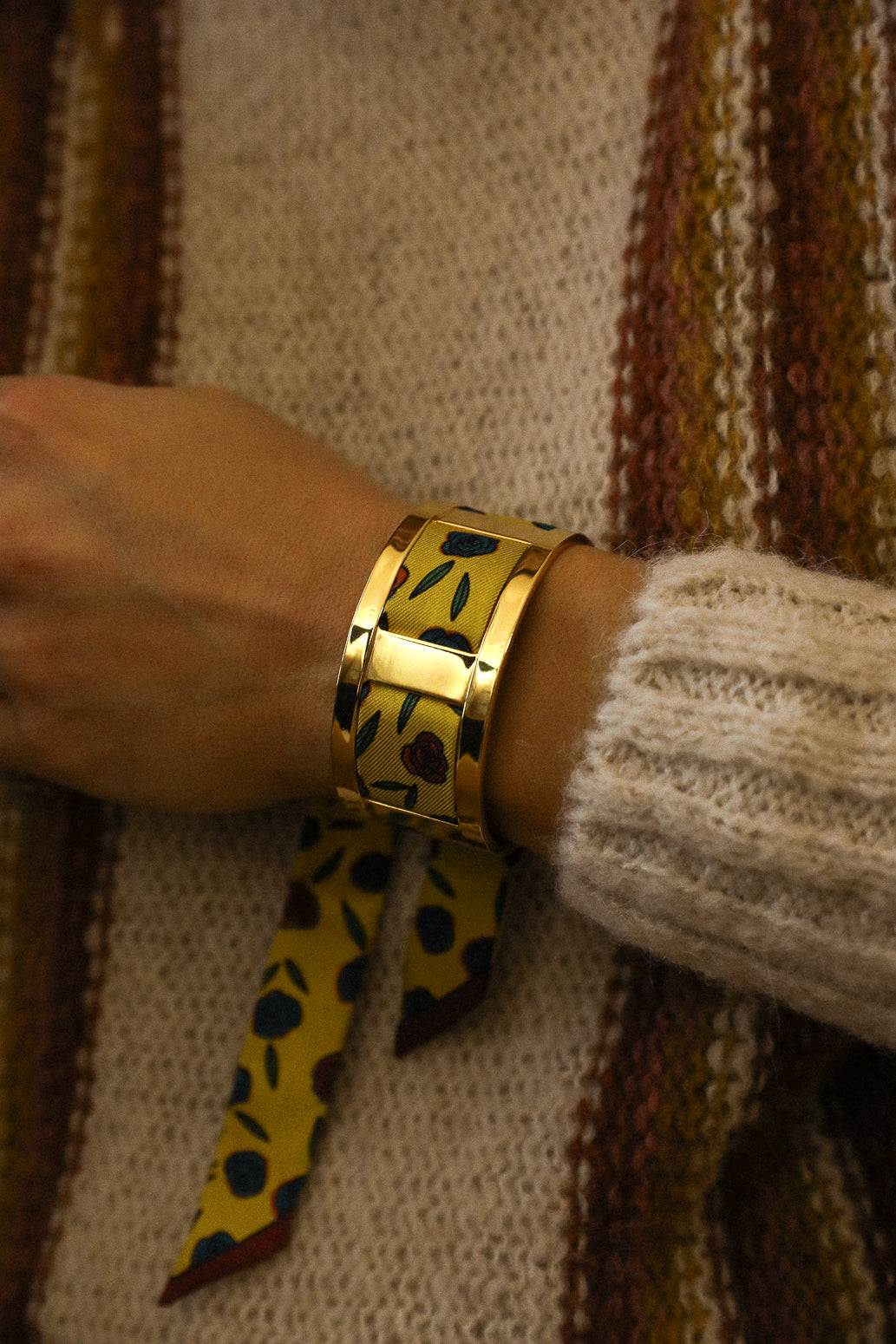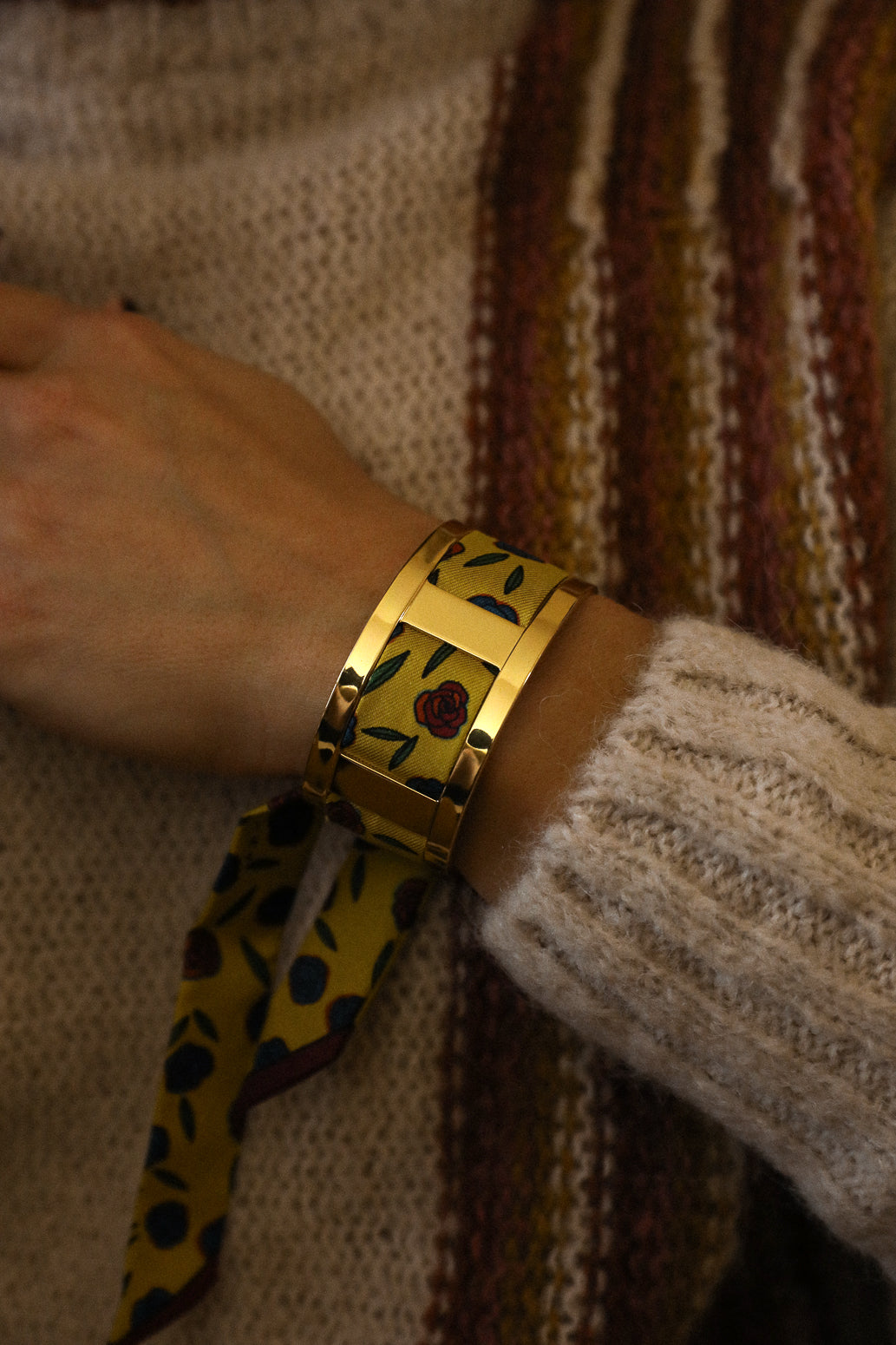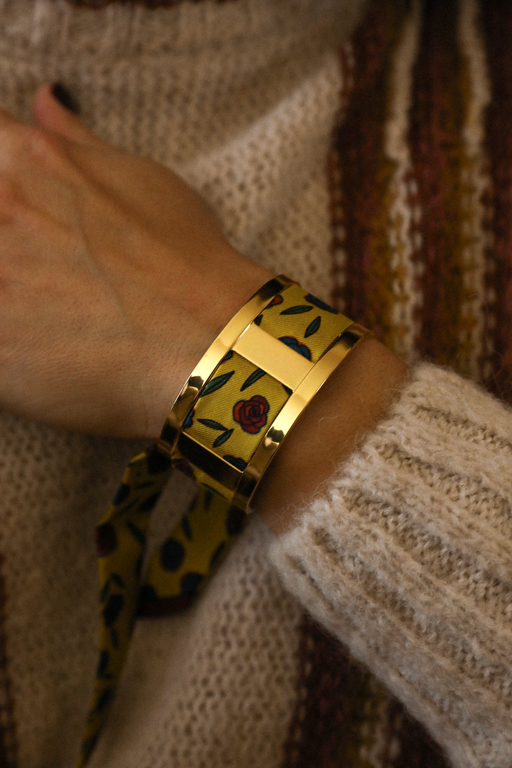 La manchette JMA est la manchette signature d'AN-NEE. La toute première à avoir été créée par la créatrice en 2017, et le départ de tout l'univers des bijoux tissés de soie de la marque, une collection de bijoux personnalisables revisitant la soie. Nous avons appelée cette manchette la manchette JMA, car c'est une manchette que vous aurez envie de porter jour après jour (J), mois après mois (M), année après année (A). Pourquoi ? Parce que d'une part, vous pouvez changer de ruban en soie au sein d'une même collection mais aussi de toutes les suivantes, et donc d'imprimé, de couleurs, d'humeur... Et d’autre part, parce que vous pouvez - aussi - la tisser différemment. Les trous ajourés de la manchette vous permettent en effet, de la couvrir totalement de soie, ou de jouer avec plein d’idées de tissages différents. Comme toutes nos créations, vous pouvez changer de ruban en soie au gré de vos envies, pour que votre manchette vous accompagne dans tous vos looks ;) Si vous souhaitez commander d'autres rubans en soie pour aller avec votre manchette JMA : elle est compatible avec nos rubans en soie de 2 cm