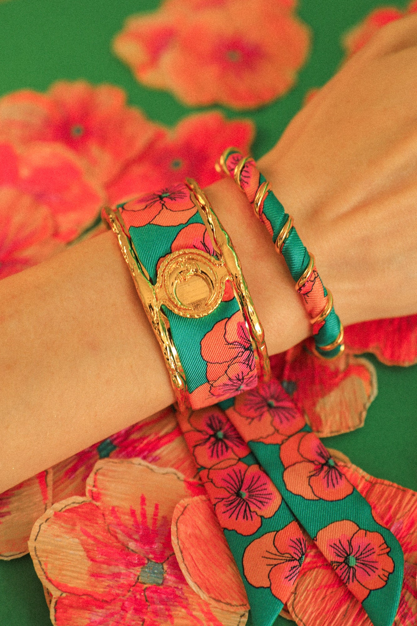 Si vous souhaitez commander d'autres bracelets en soie pour aller avec votre manchette : elle est compatible avec nos bracelets en soie de 2 cm