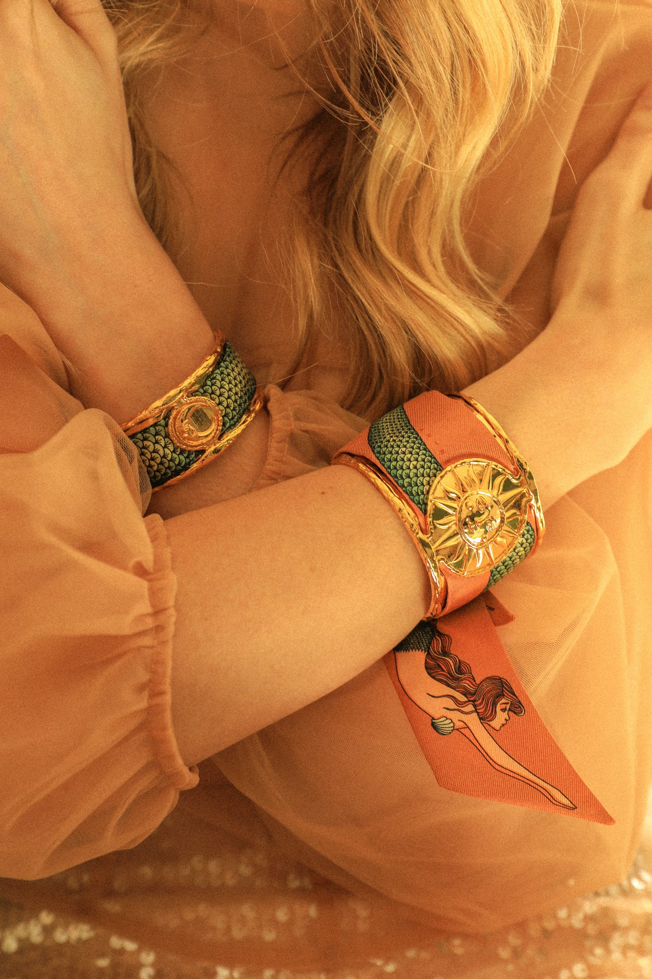 Une manchette très figurative best-seller chez AN-NEE, avec un médaillon central représentant une petite lune et aux gouttières matiérées et assymétriques.