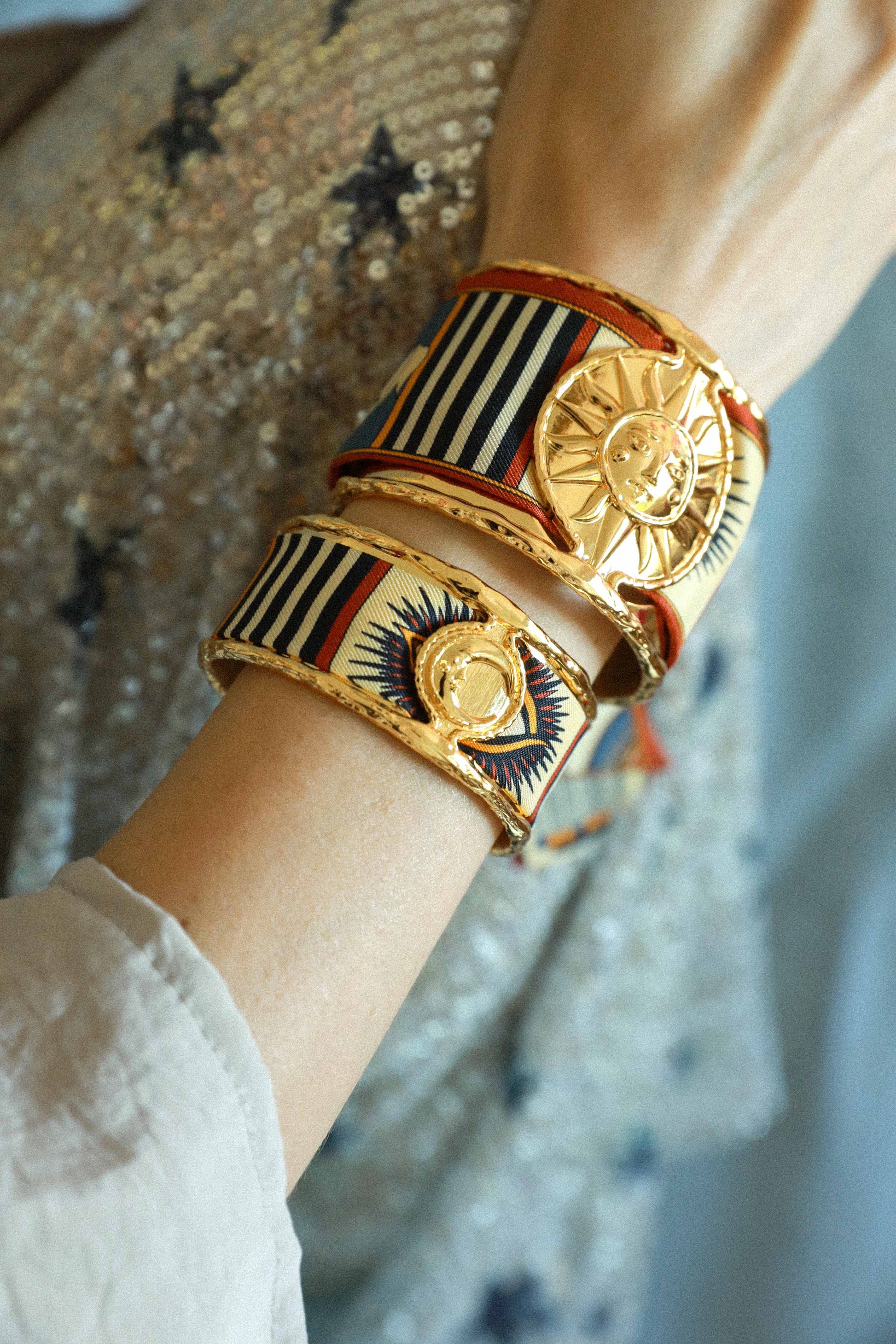 Une manchette très figurative best-seller chez AN-NEE, avec un médaillon central représentant une petite lune et aux gouttières matiérées et assymétriques.