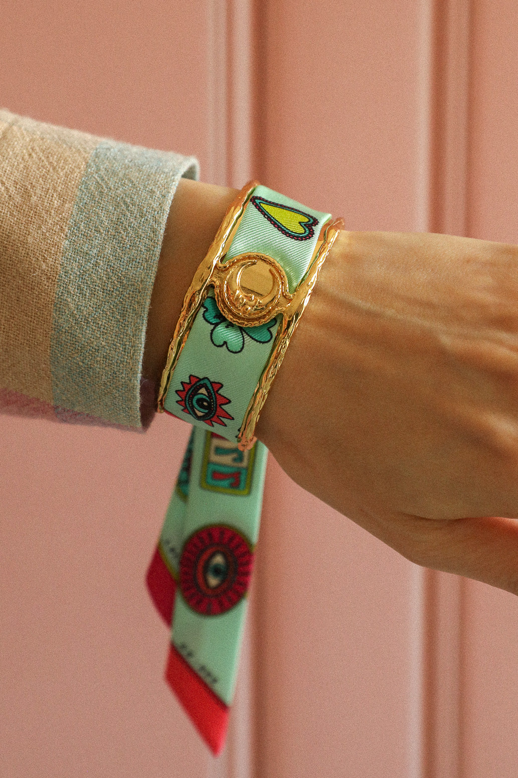 Si vous souhaitez commander d'autres rubans en soie pour aller avec votre manchette Lune : elle est compatible avec nos rubans en soie de 2 cm