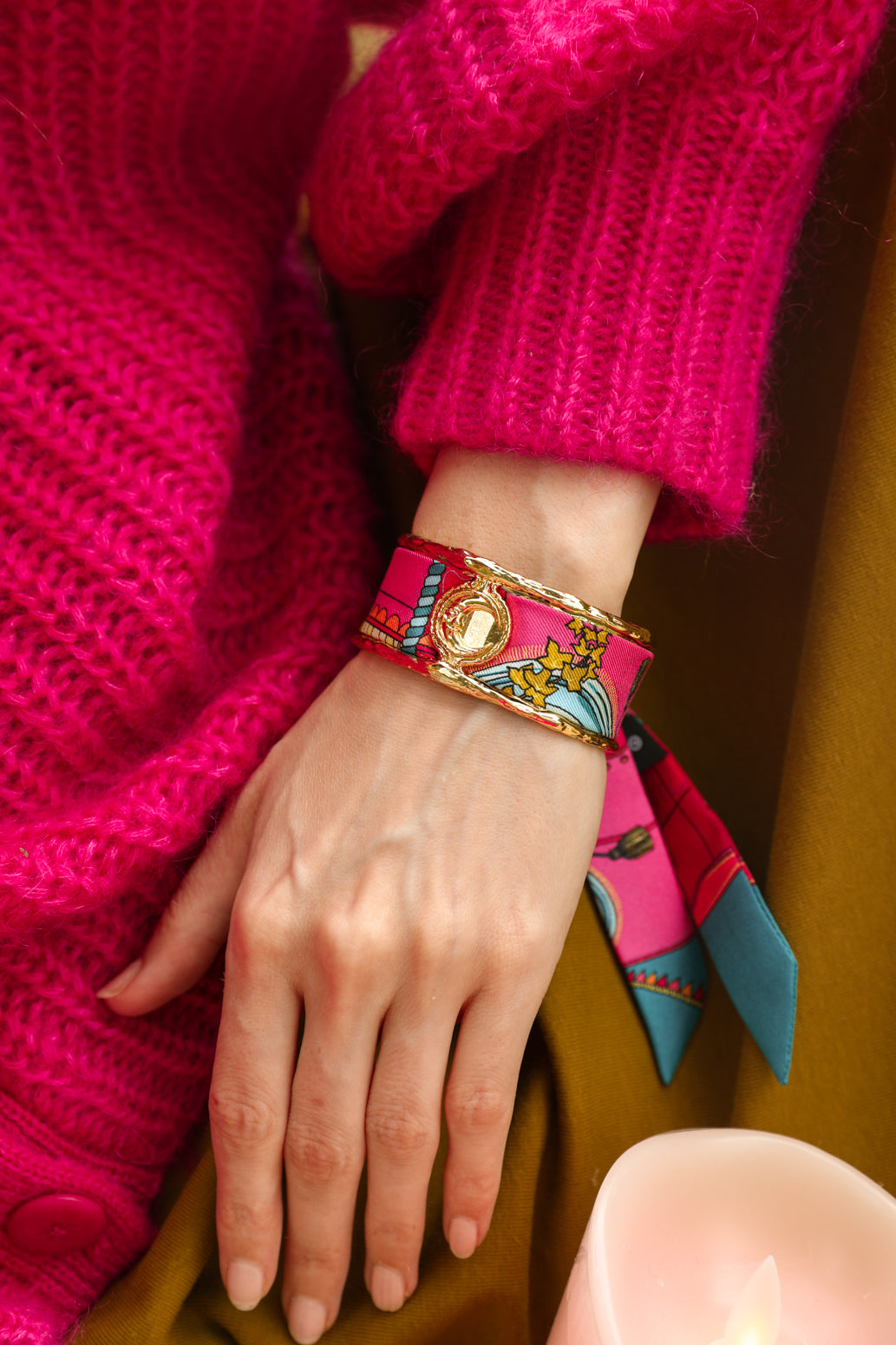 Si vous souhaitez commander d'autres bracelets en soie pour aller avec votre manchette : elle est compatible avec nos bracelets en soie de 2 cm