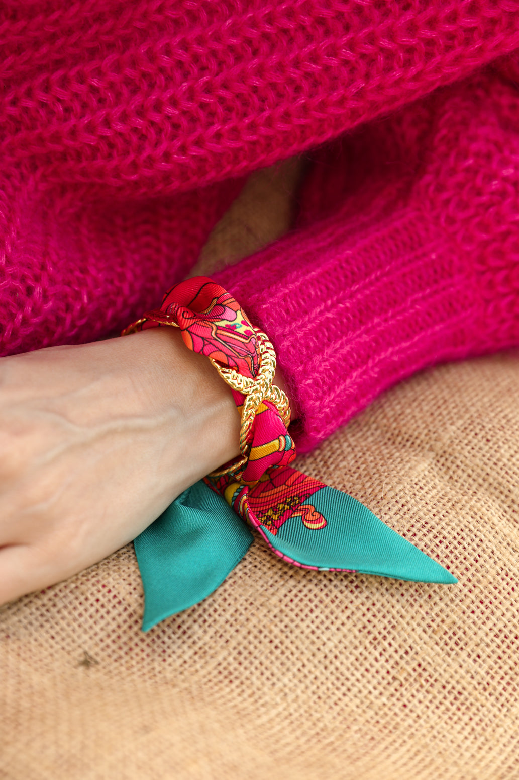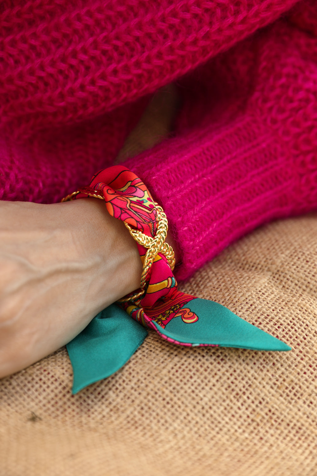 Si vous souhaitez commander d'autres rubans en soie pour aller avec votre manchette Tresse : elle est compatible avec nos rubans en soie de 4 cm.