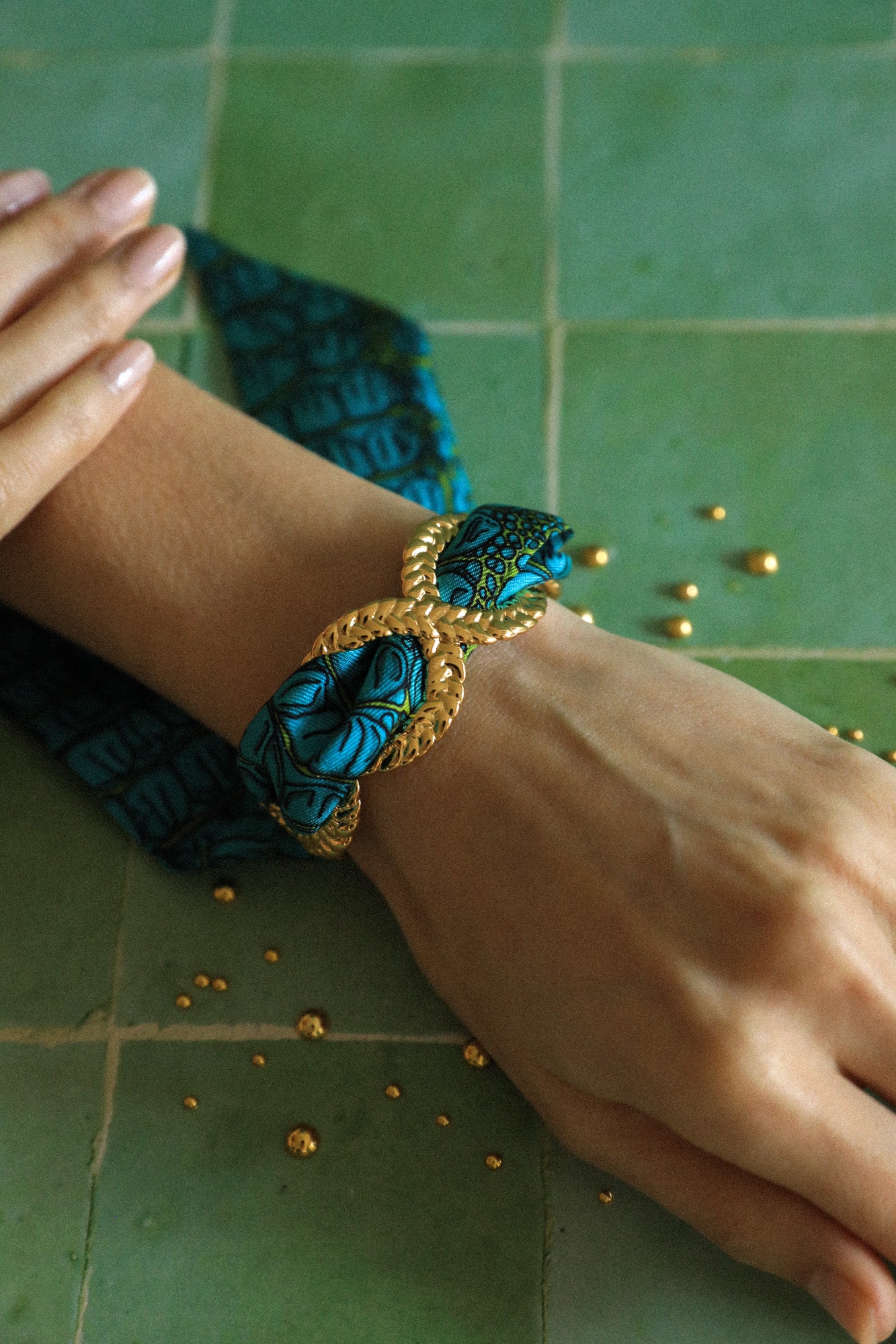 Comme toutes nos créations, vous pouvez changer de ruban en soie au gré de vos envies, en détissant ou retissant votre manchette.