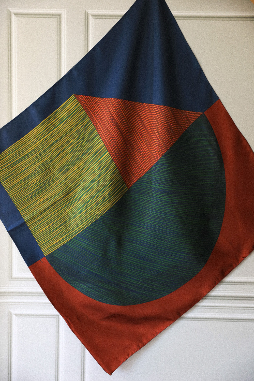 Petit carré 70 cm - Géométrie variable, marine et brique