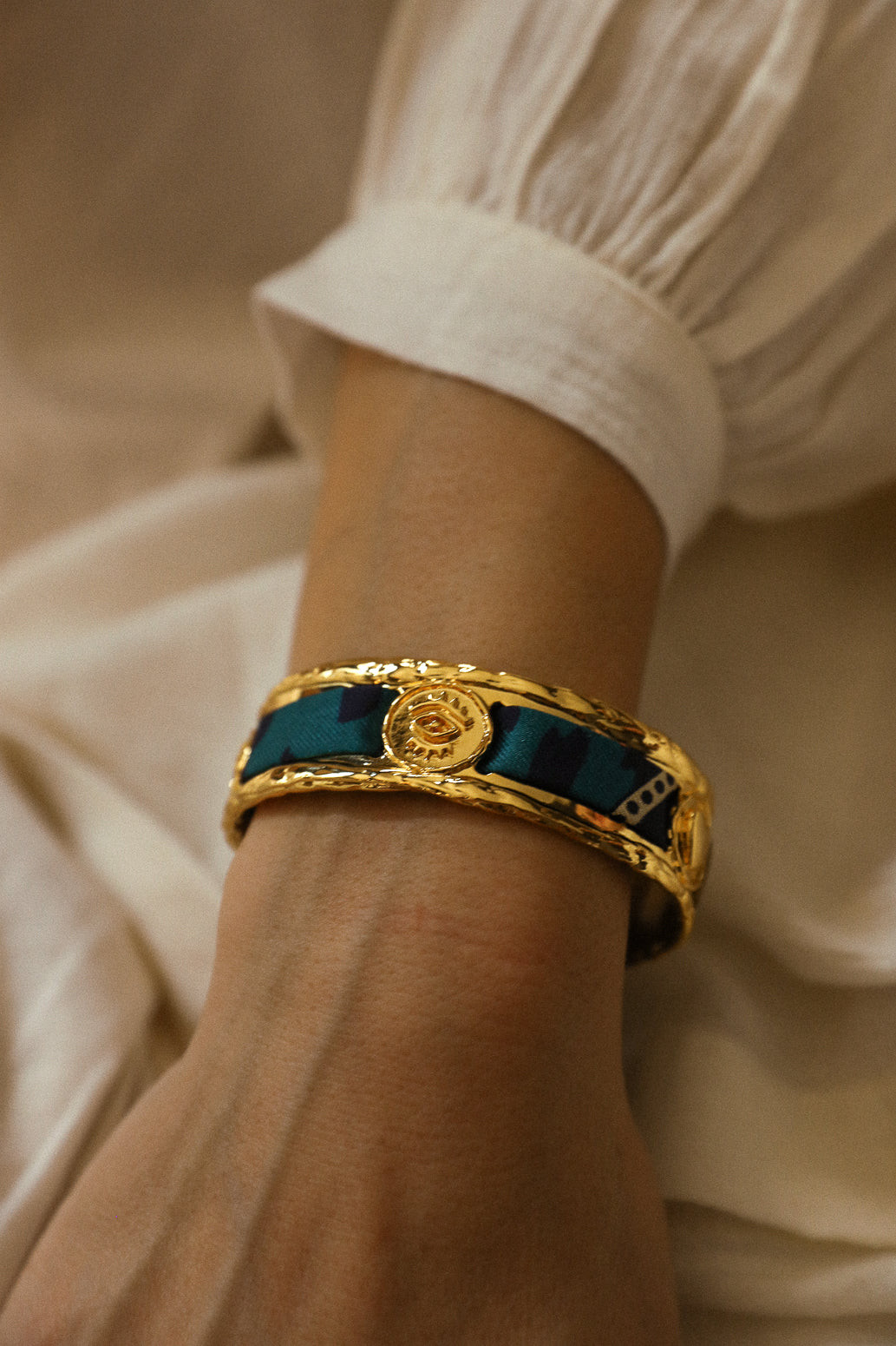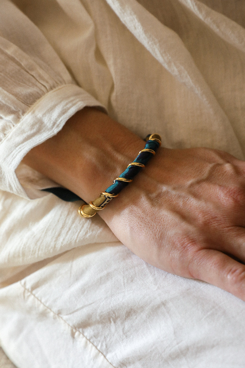 Ruban en soie de 1cm de hauteur, à porter seul au poignet, dans les cheveux, ou à tisser dans nos manchettes.