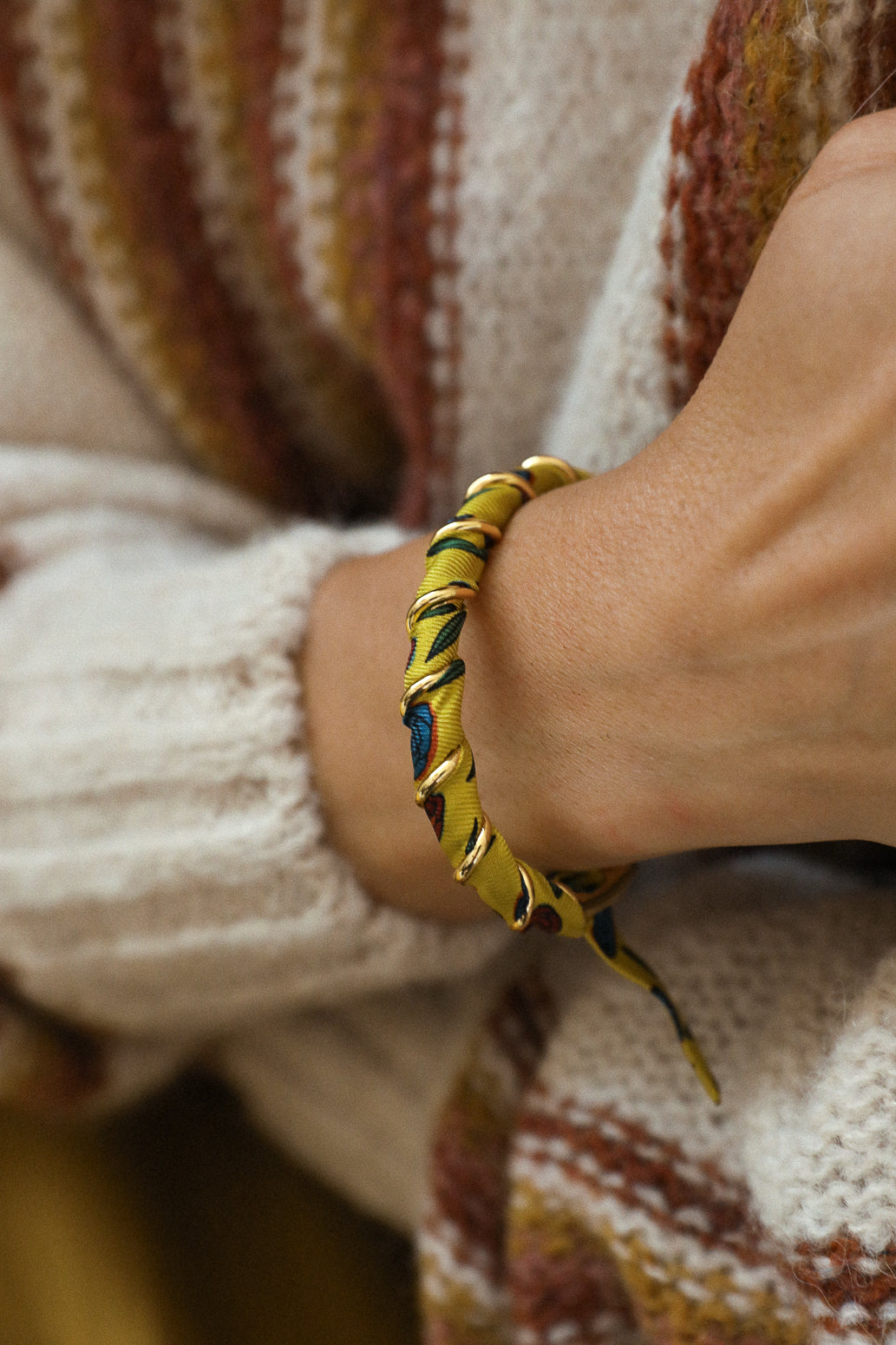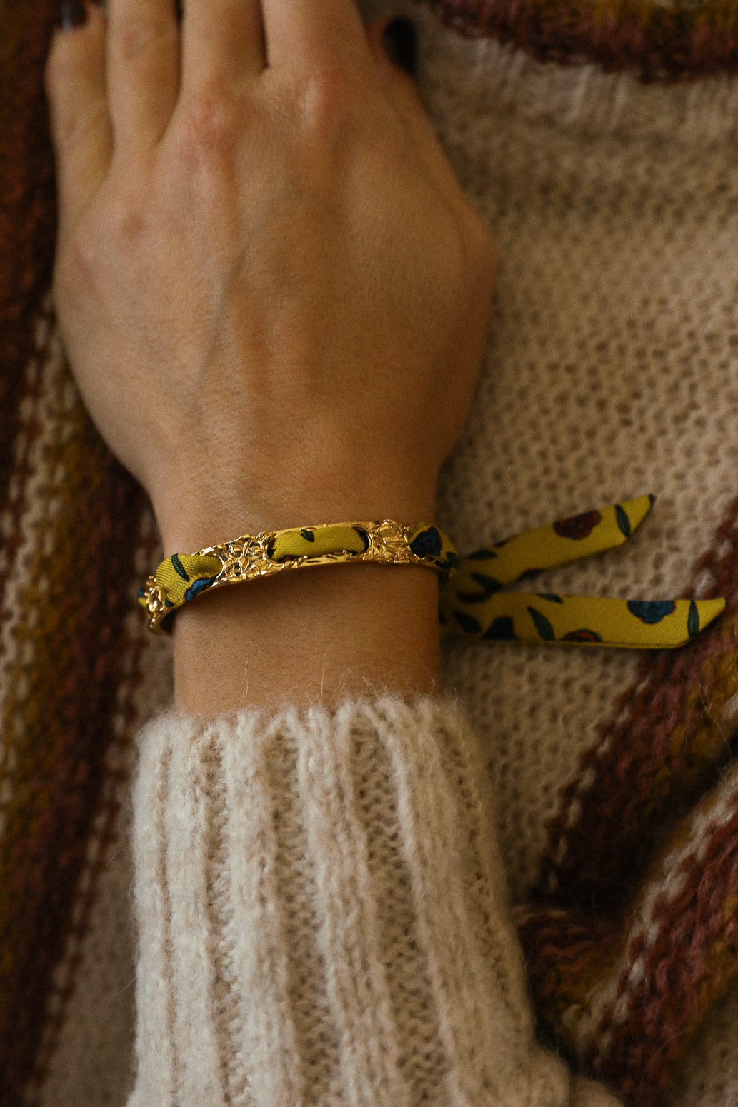 Ruban en soie de 1cm de hauteur, à porter seul au poignet, dans les cheveux, ou à tisser dans nos manchettes.