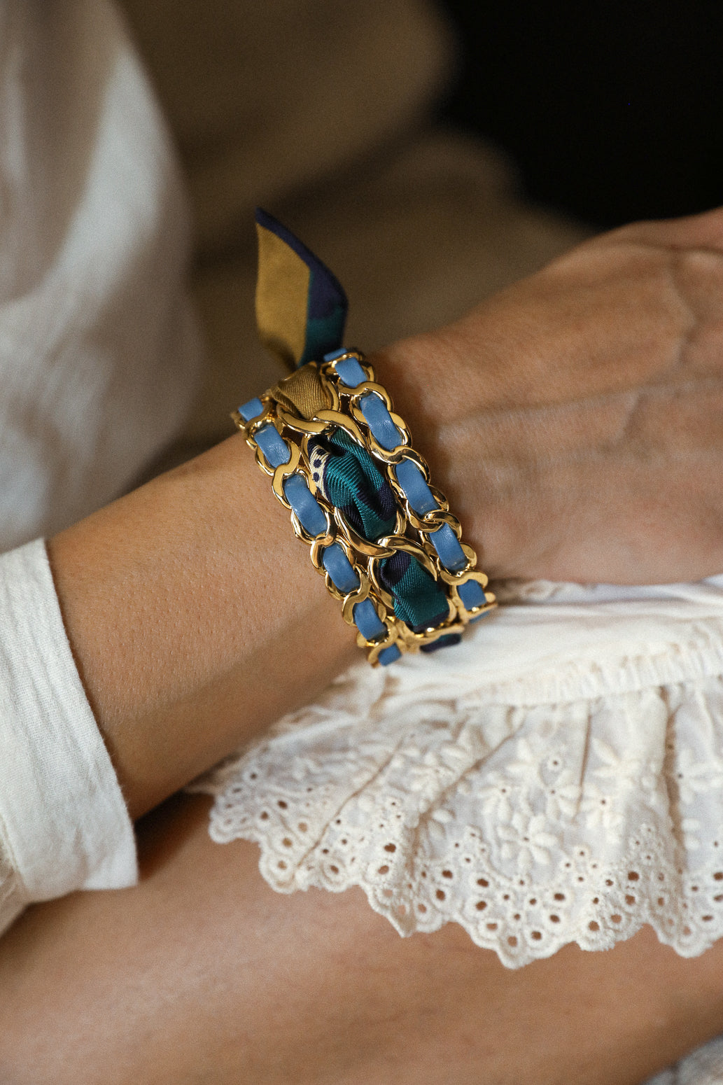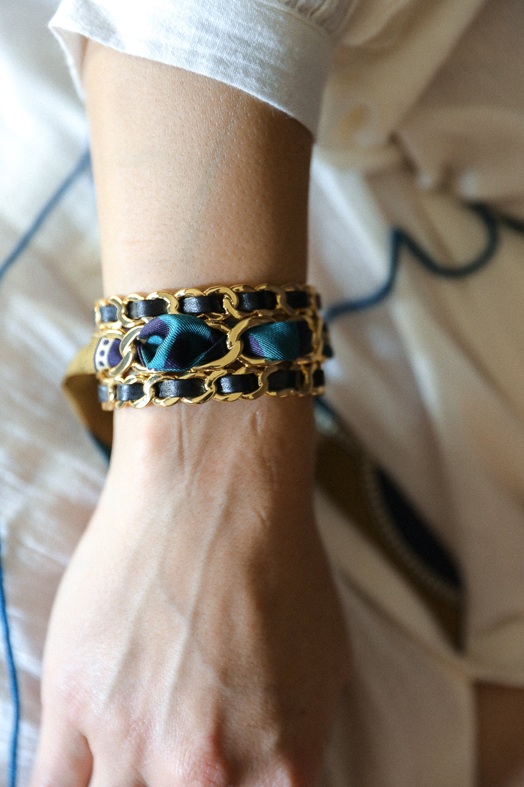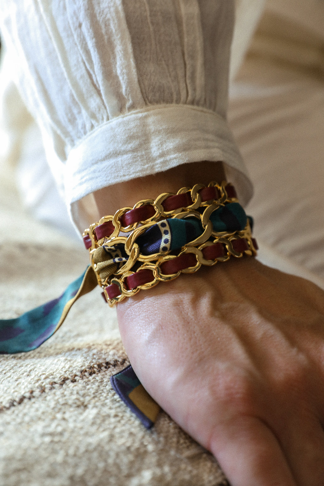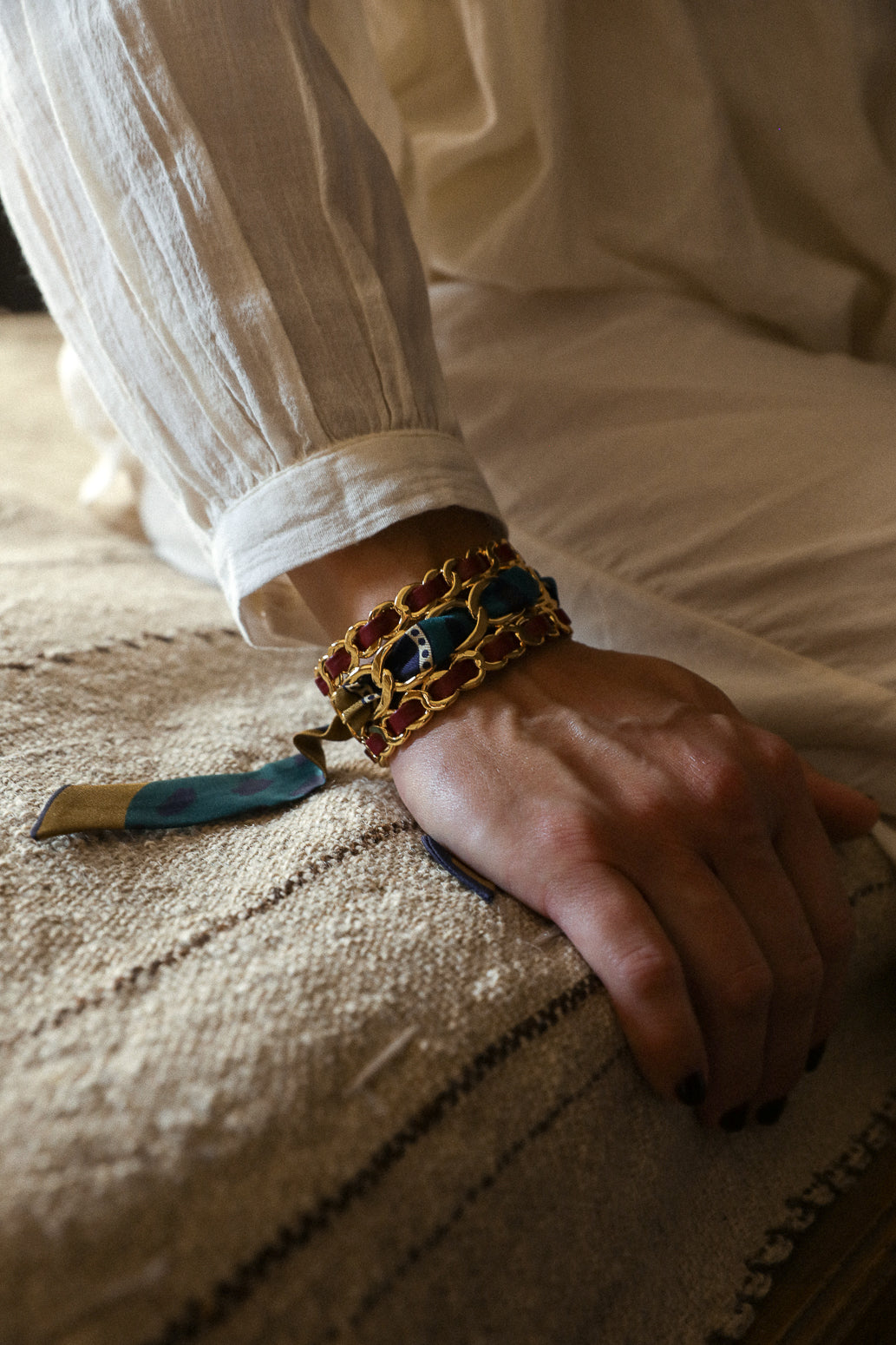 Ruban en soie de 2cm de hauteur, à porter seul au poignet, dans les cheveux, ou à tisser avec nos ornements ou dans nos manchettes.